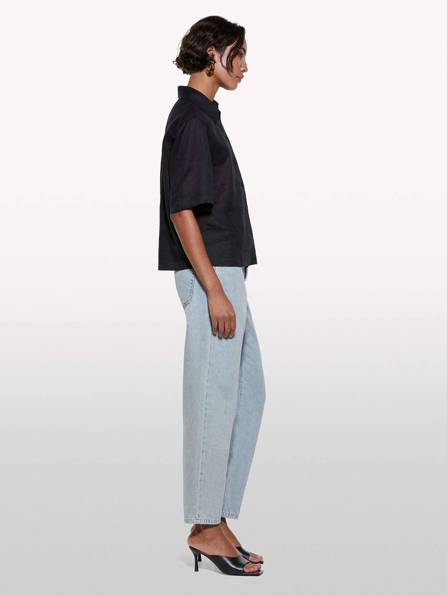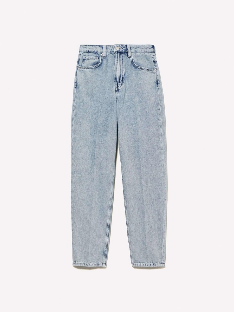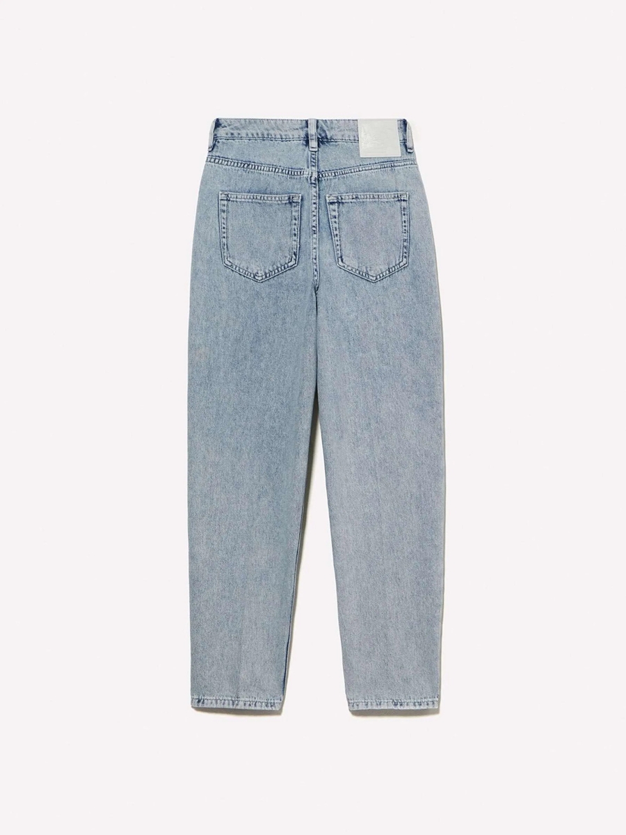 %100 Pamuk Taş Yıkama Normal Bel Mom Fit Denim Pantolon Kadın Mavi Denim Pantolon - 325P4TFHLE04I