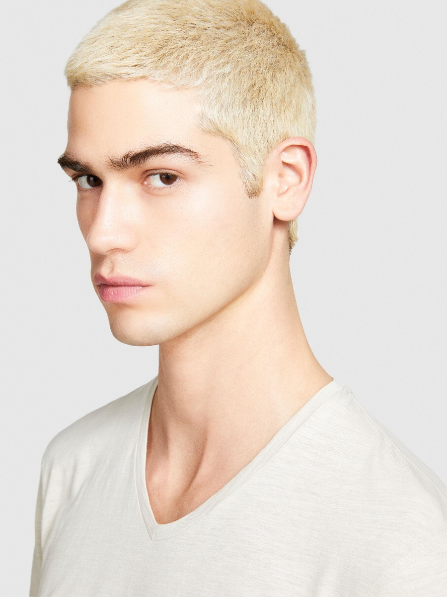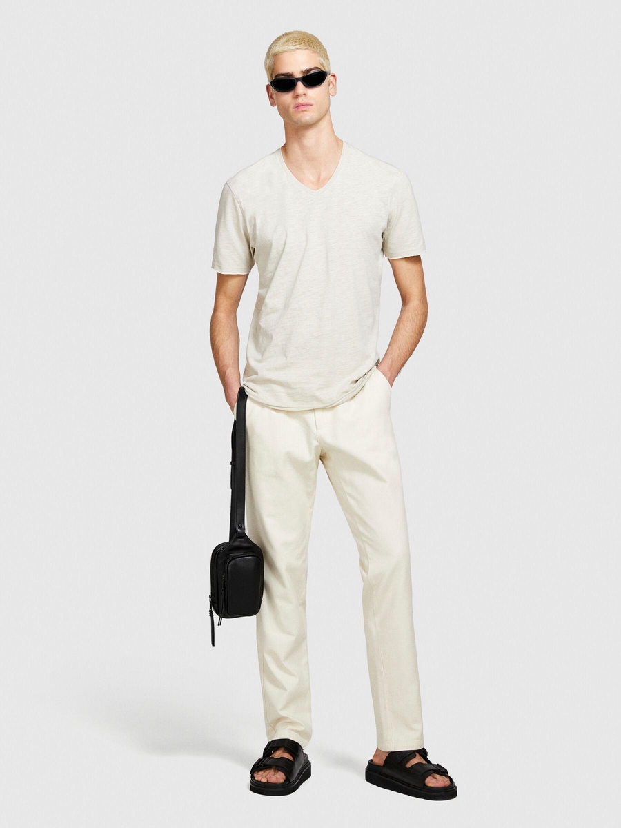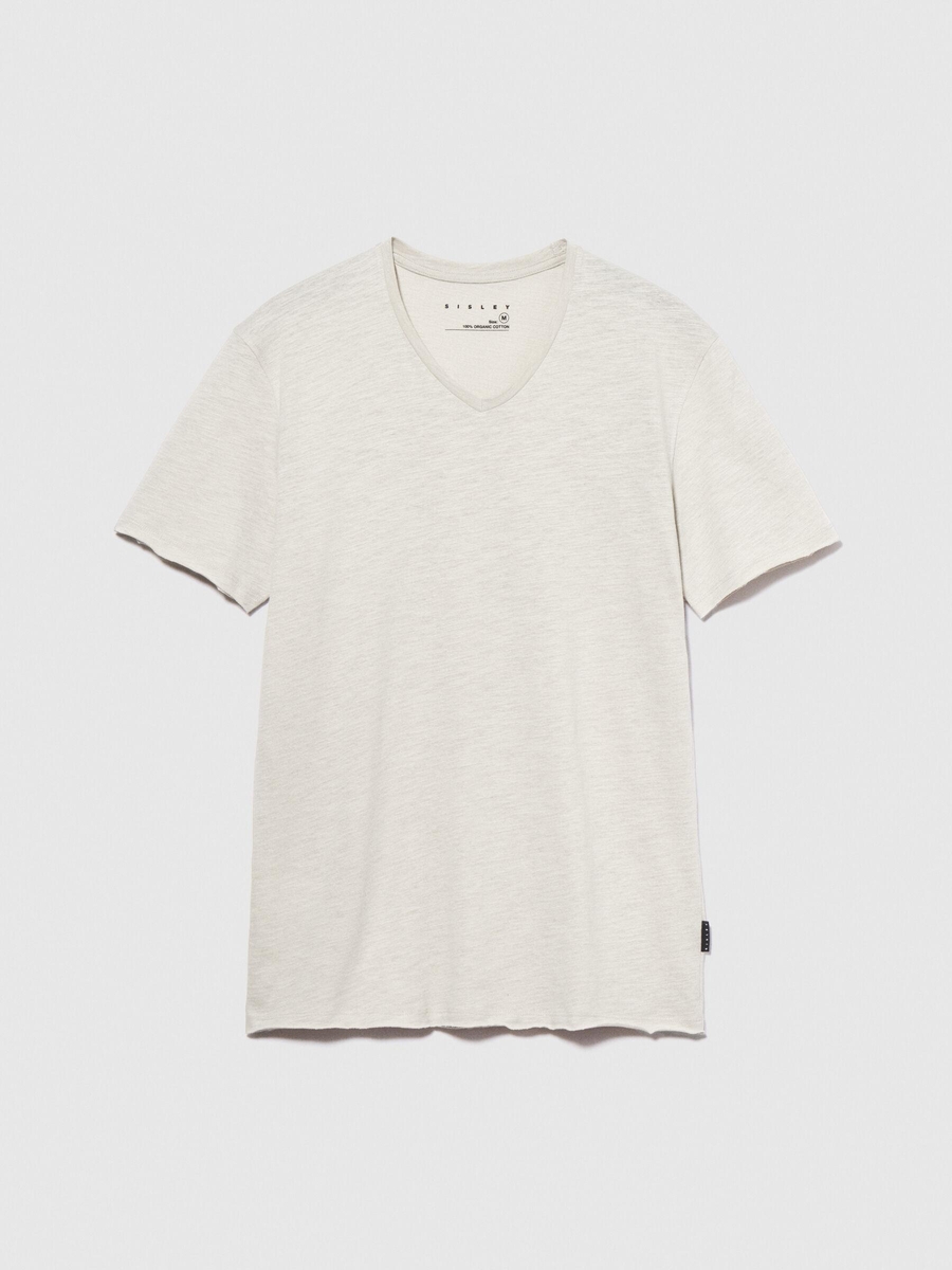 %100 Pamuk V Yaka Slim Fit T-Shirt Erkek Bej T-Shirt - 324P3WF0S4001