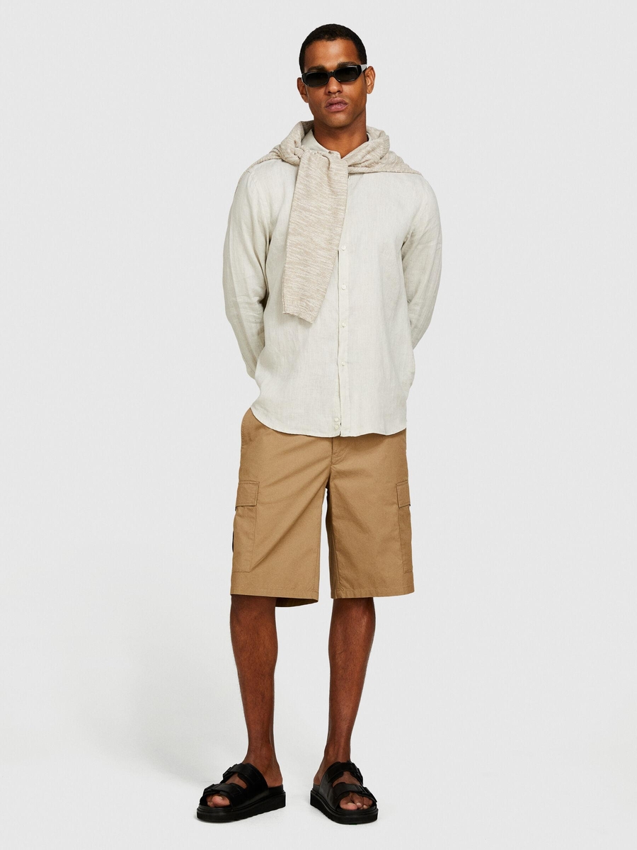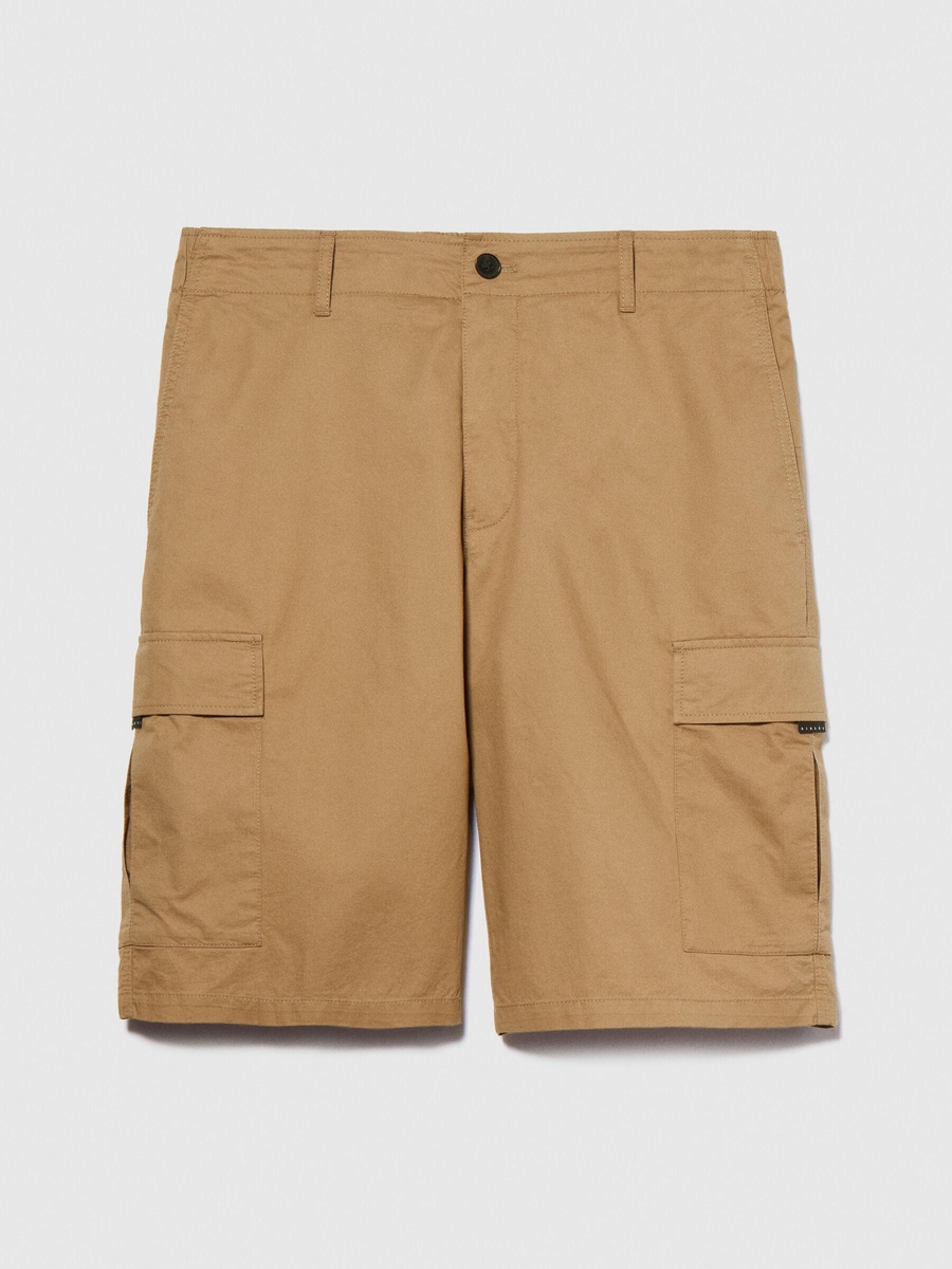 %100 Pamuk Yama Cepli Kemer Delikli Kargo Bermuda Şort Erkek Kahverengi Şort - 324P4IUKS9015