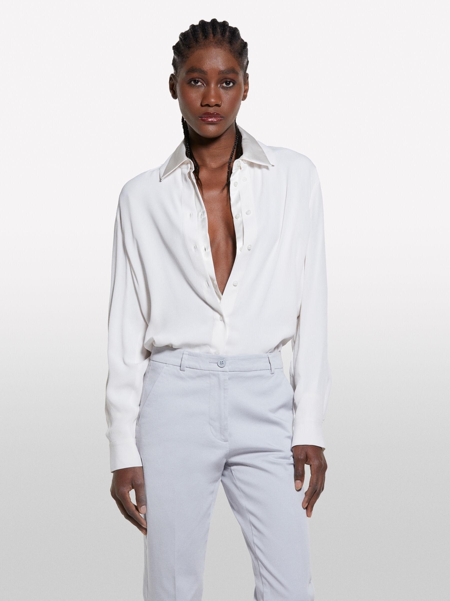 %100 Viskoz Arkası Uzun Over Fit Gömlek Kadın Bej Gömlek - 325P5IDTLQ08R