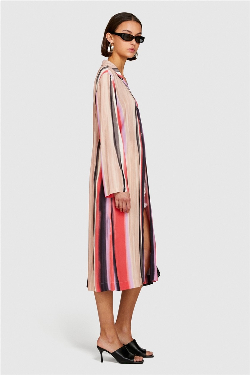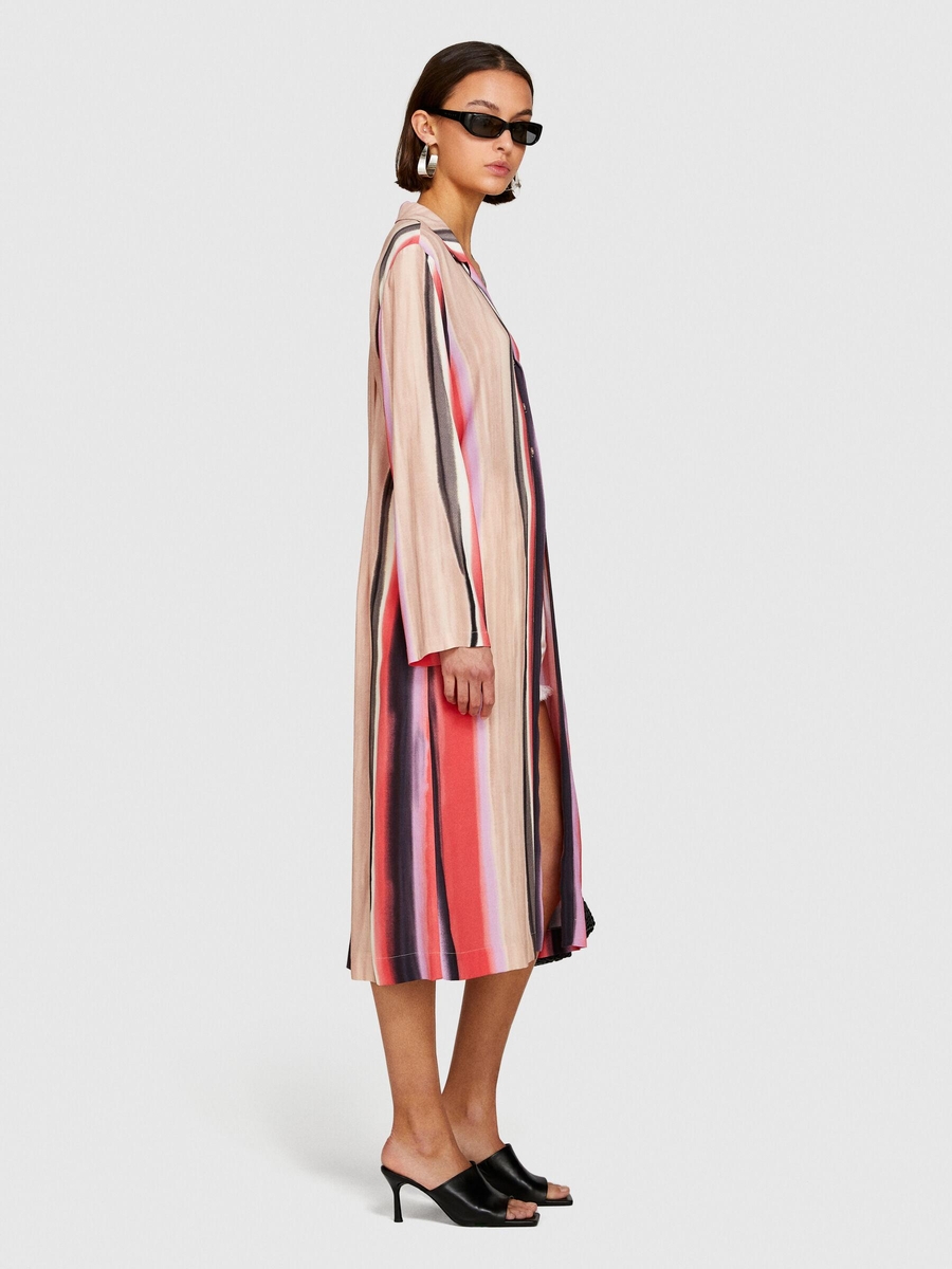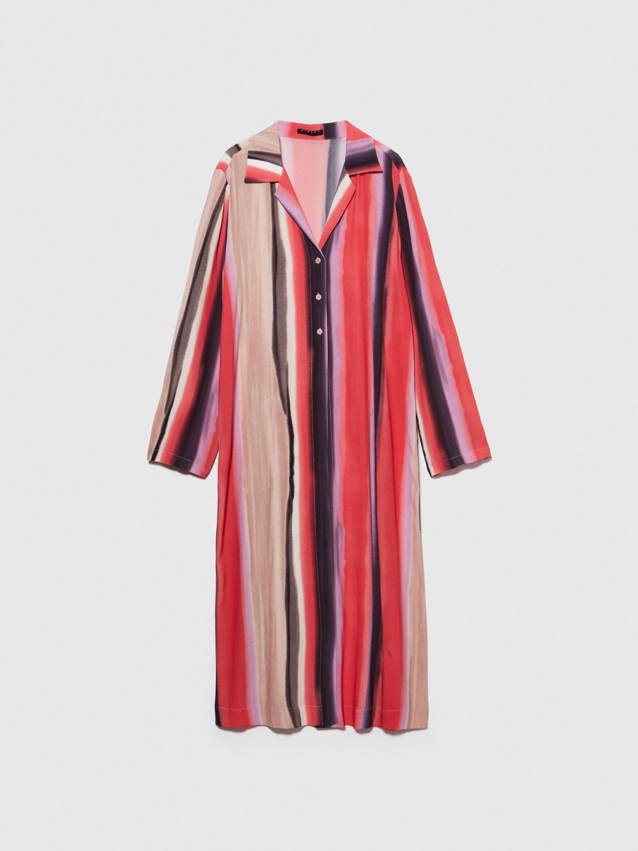 %100 Viskoz Baskılı Gömlek Yaka Uzun Kollu Elbise Kadın Yeşil Gömlek - 324P5ZDNLQ07A