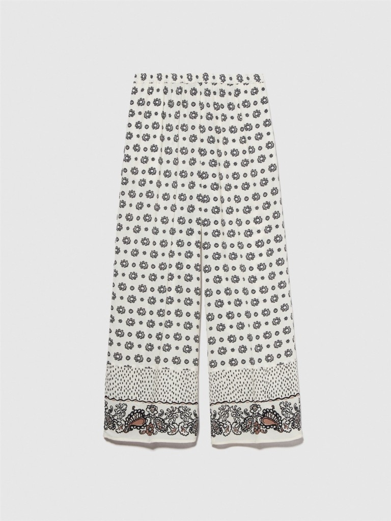 %100 Viskoz Beli Lastikli Paça Detaylı Desenli Kloş Pantolon Kadın Turuncu Pantolon - 324P4VJDLF05C