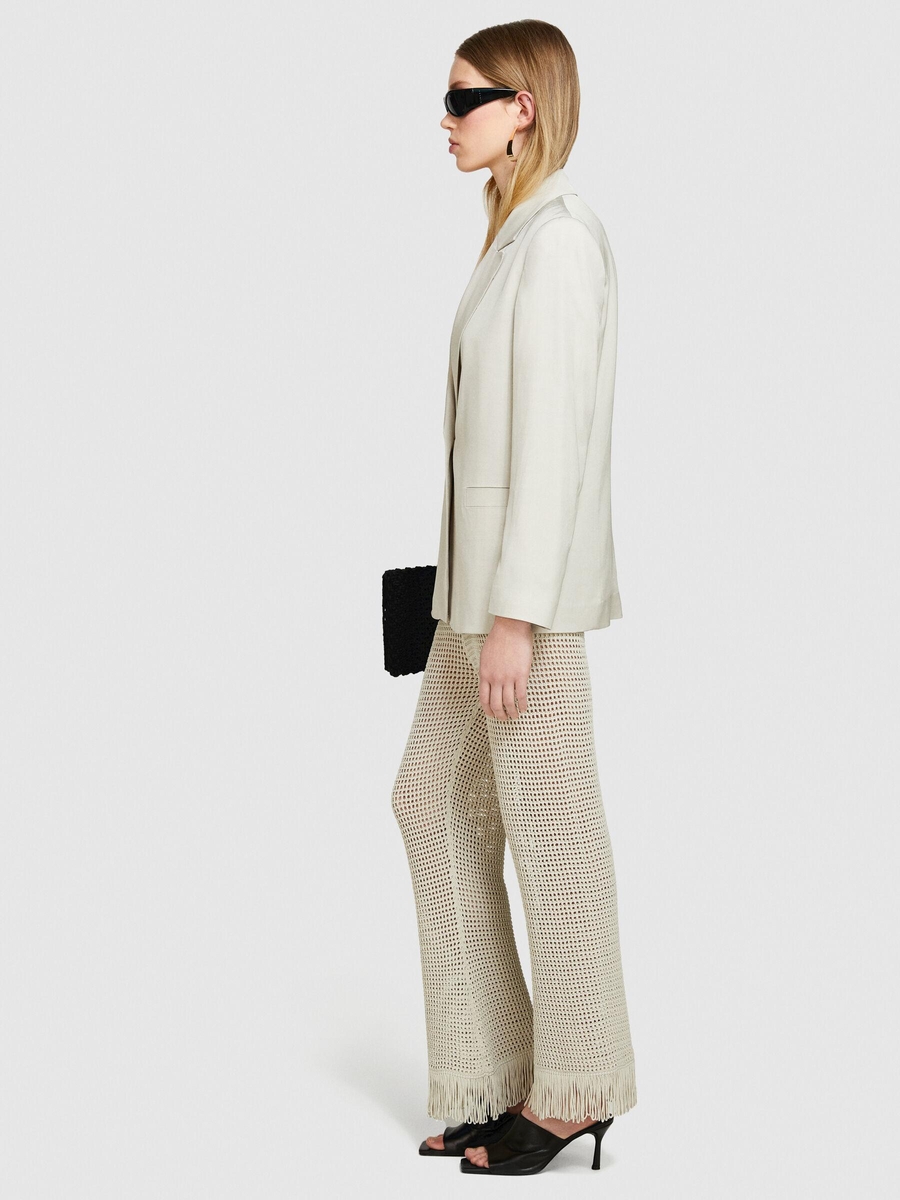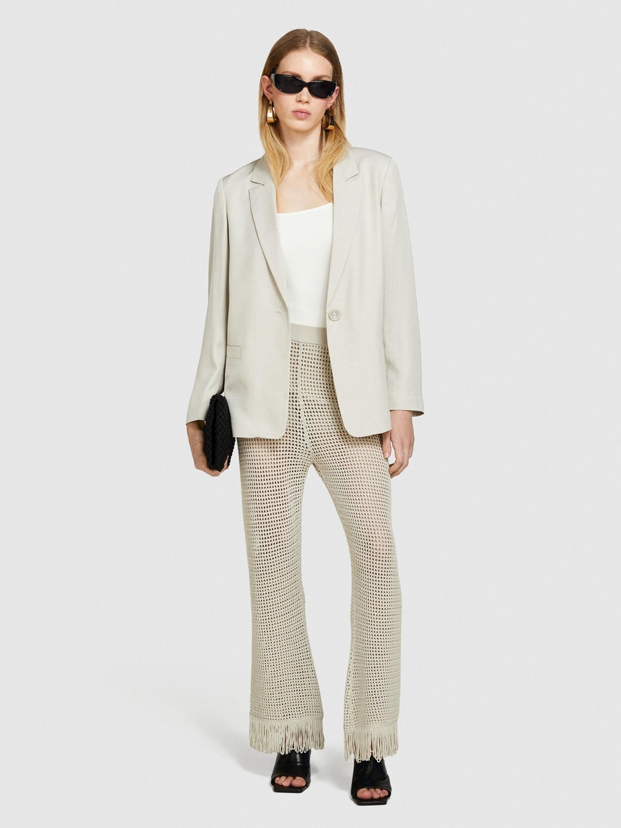 %100 Viskoz Cebi Biyeli Tek Düğmeli Saten Blazer Ceket Kadın Gri Ceket - 324P29NMLW023
