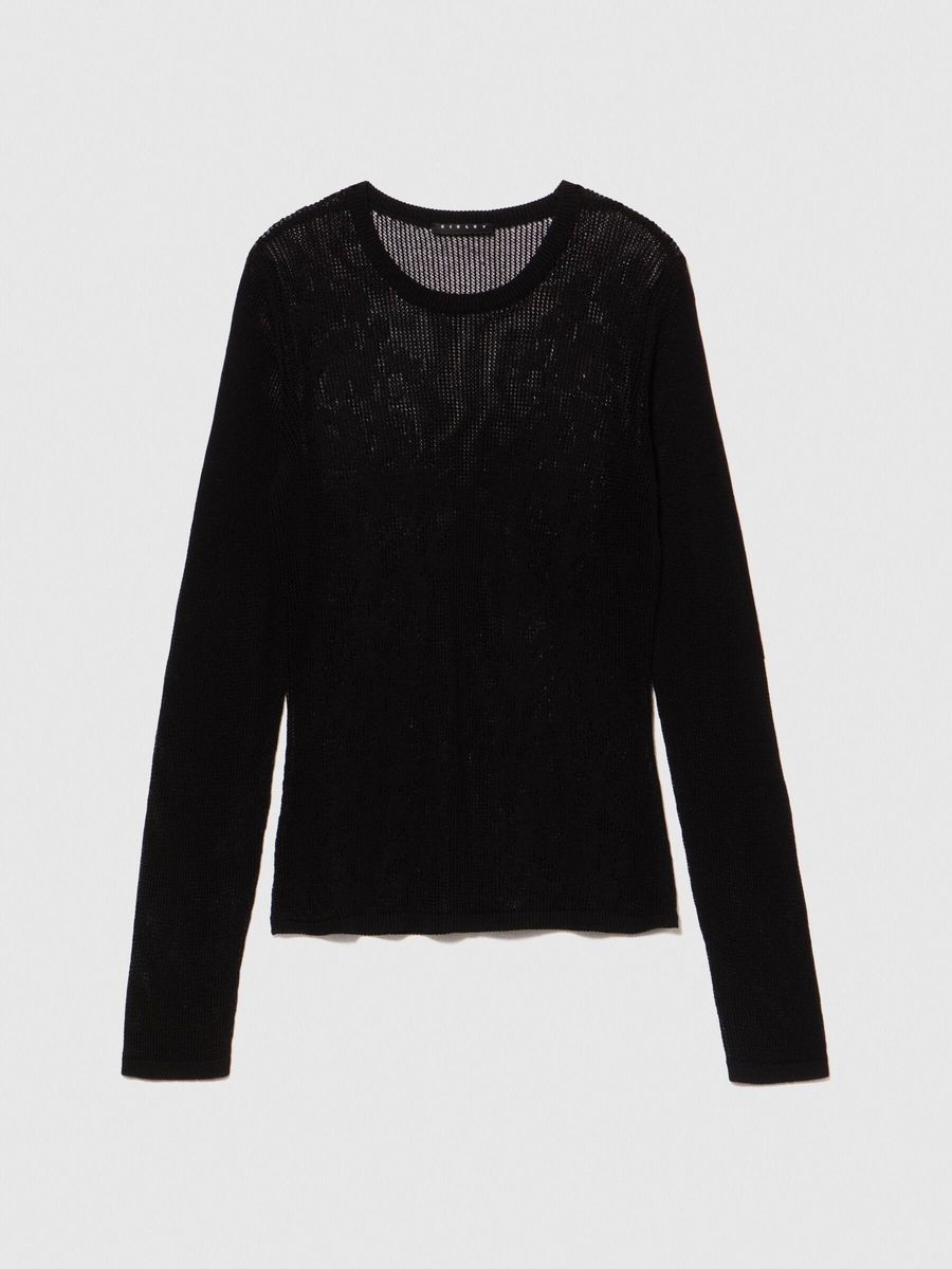%100 Viskoz Dantel Motifli Bisiklet Yaka Kazak Kadın Siyah Kazak - 324P1084M104S
