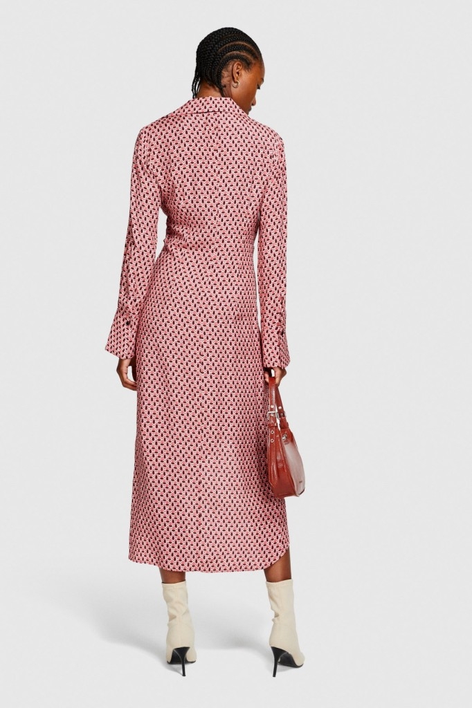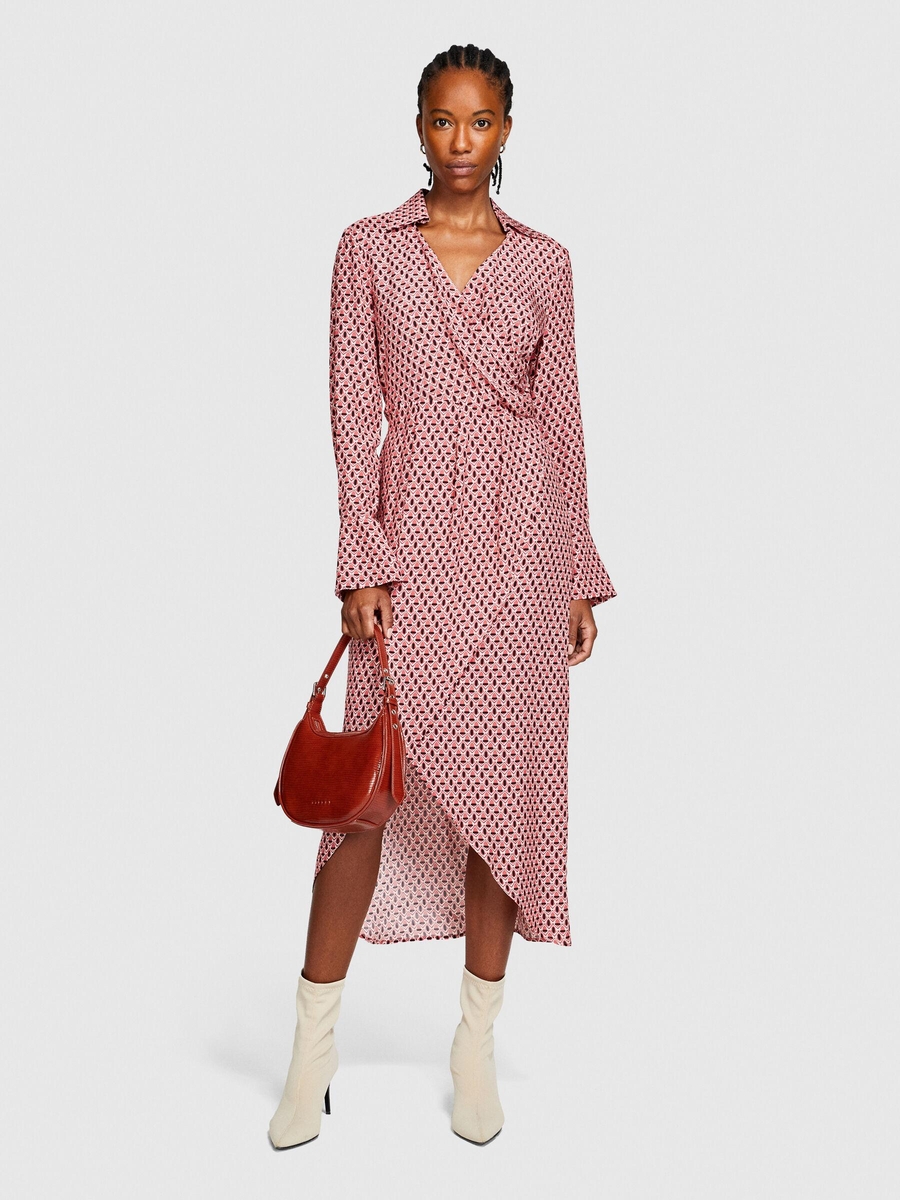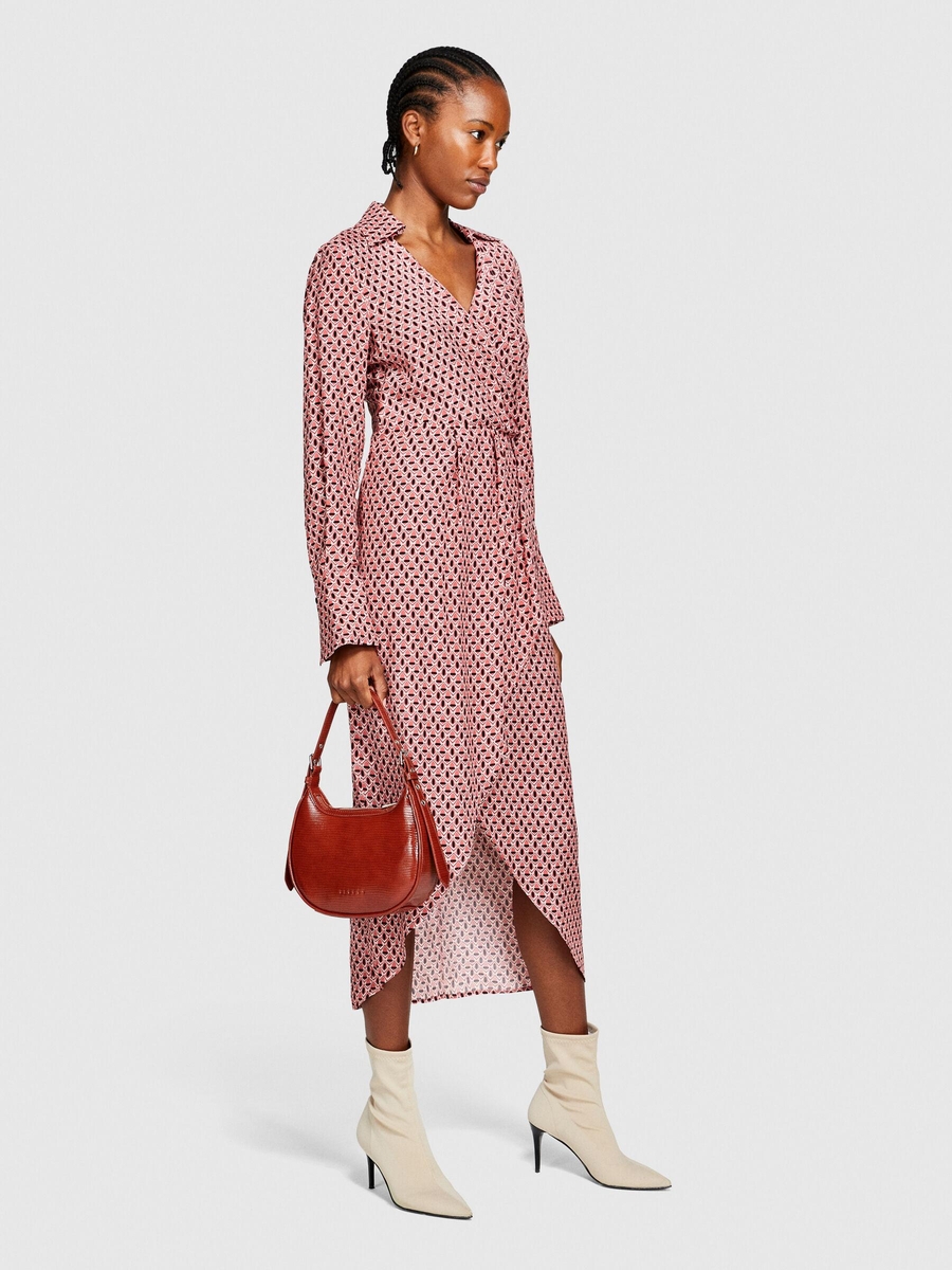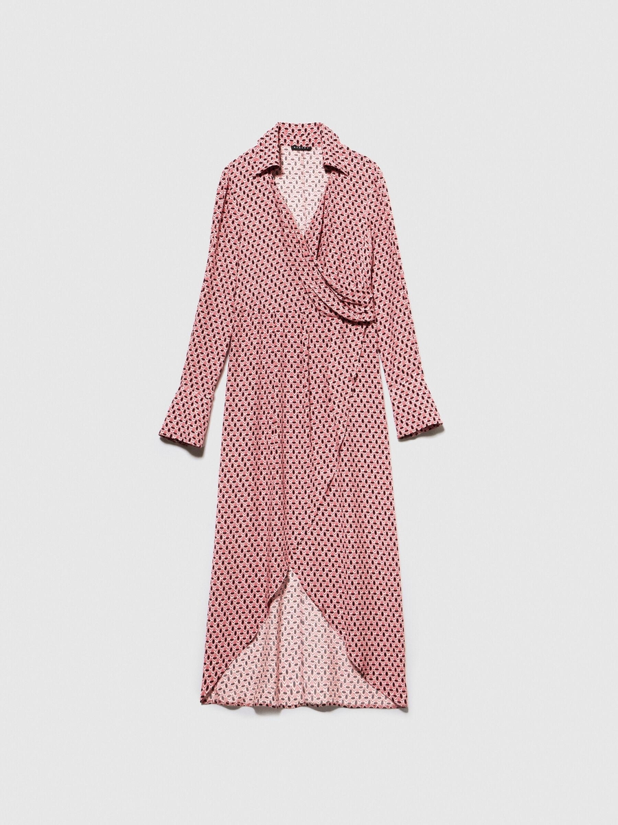 %100 Viskoz Desenli Gömlek V Yaka Anvelop Elbise Kadın Siyah Elbise - 323A4UTSLV049