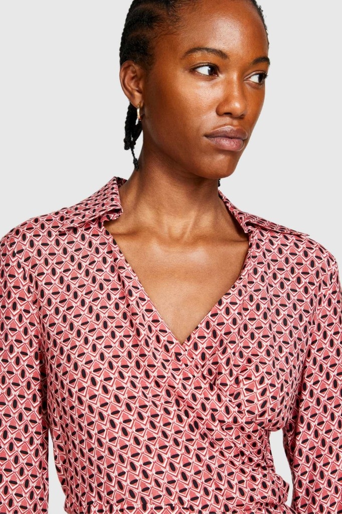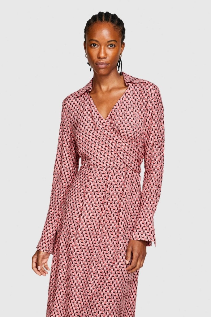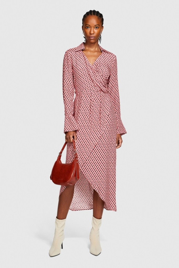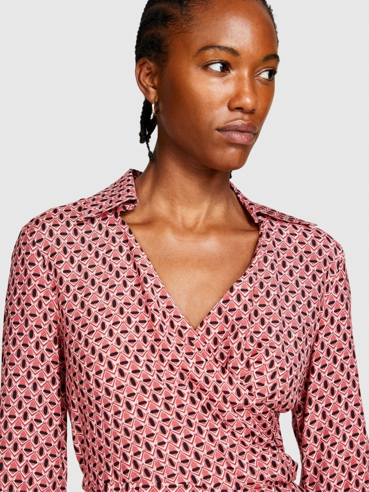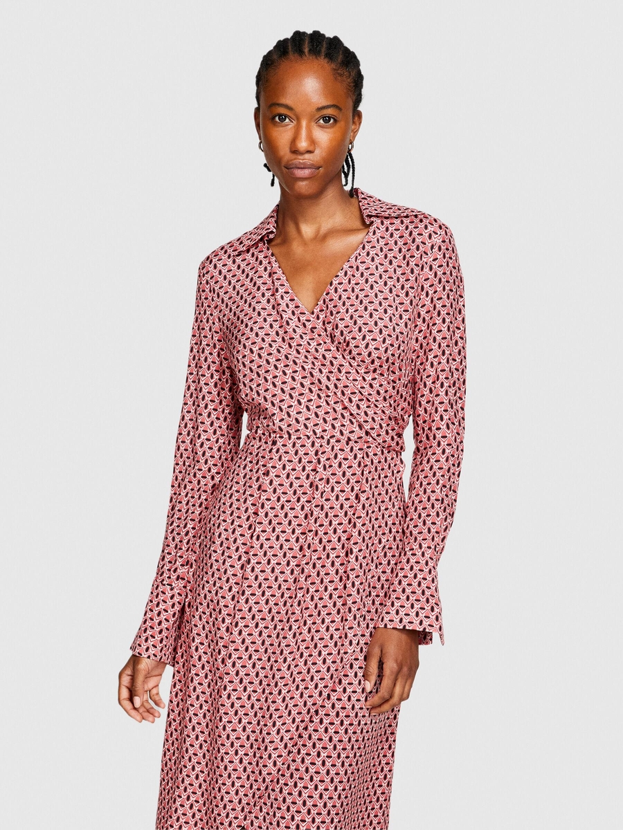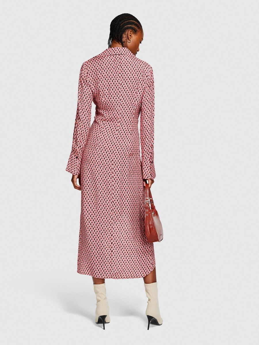 %100 Viskoz Desenli Gömlek V Yaka Anvelop Elbise Kadın Siyah Elbise - 323A4UTSLV049