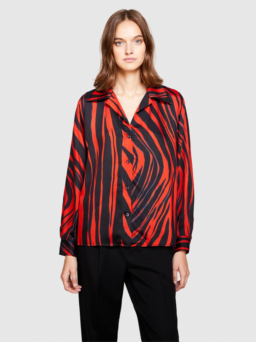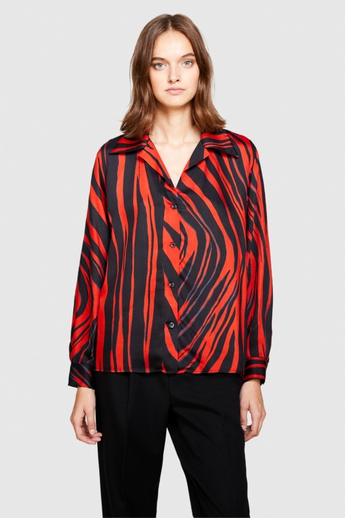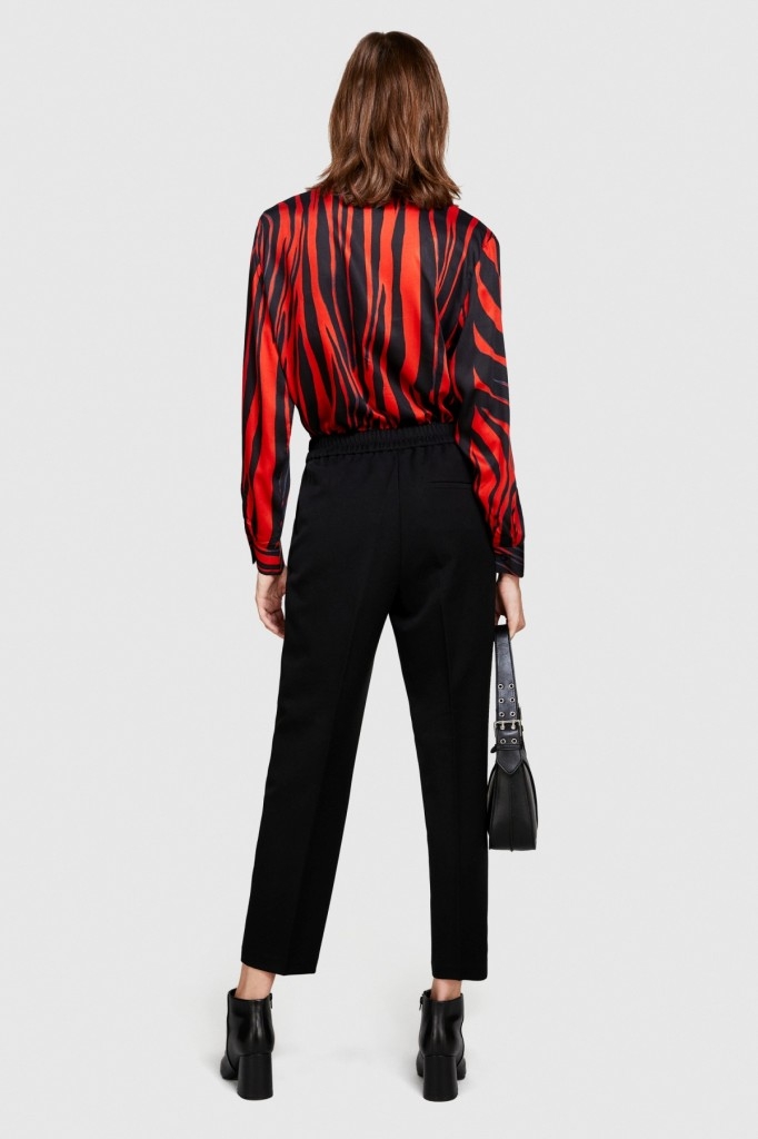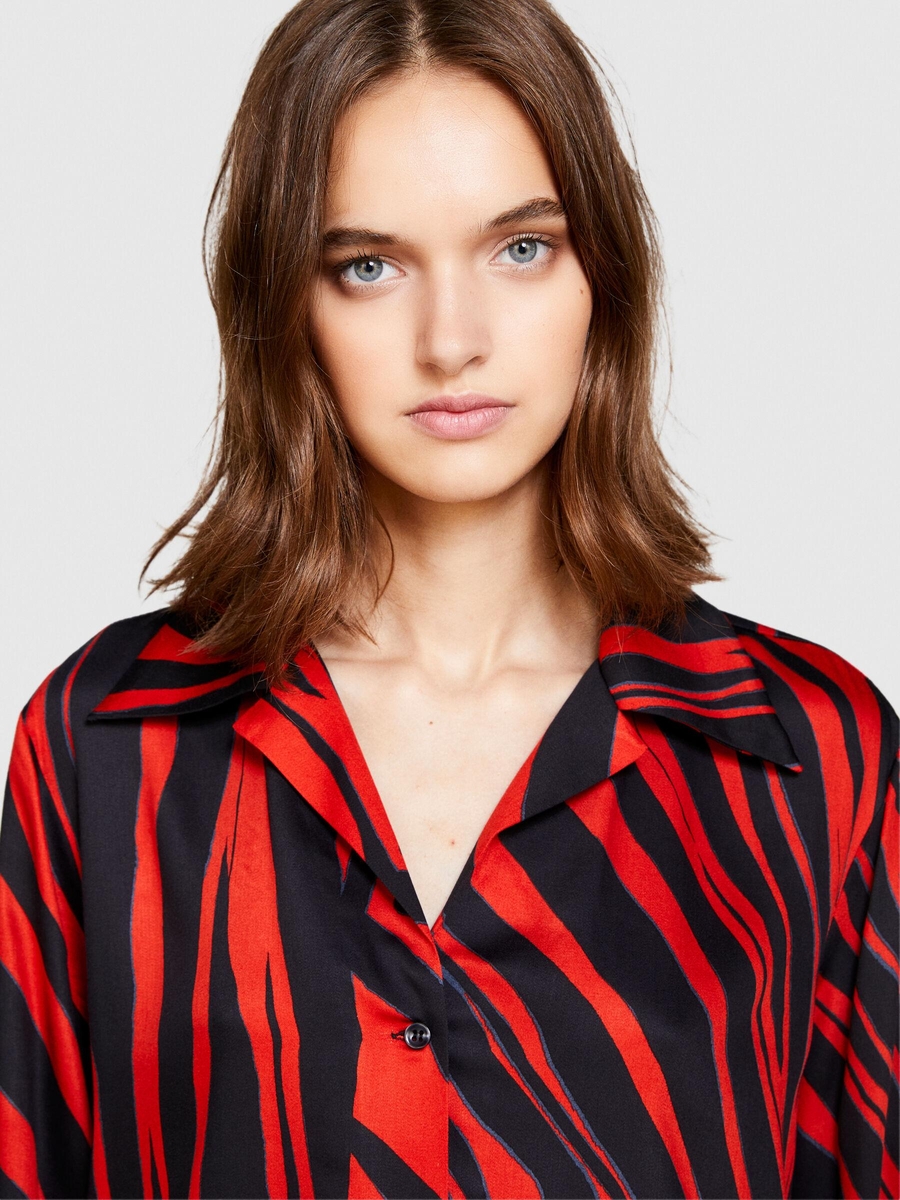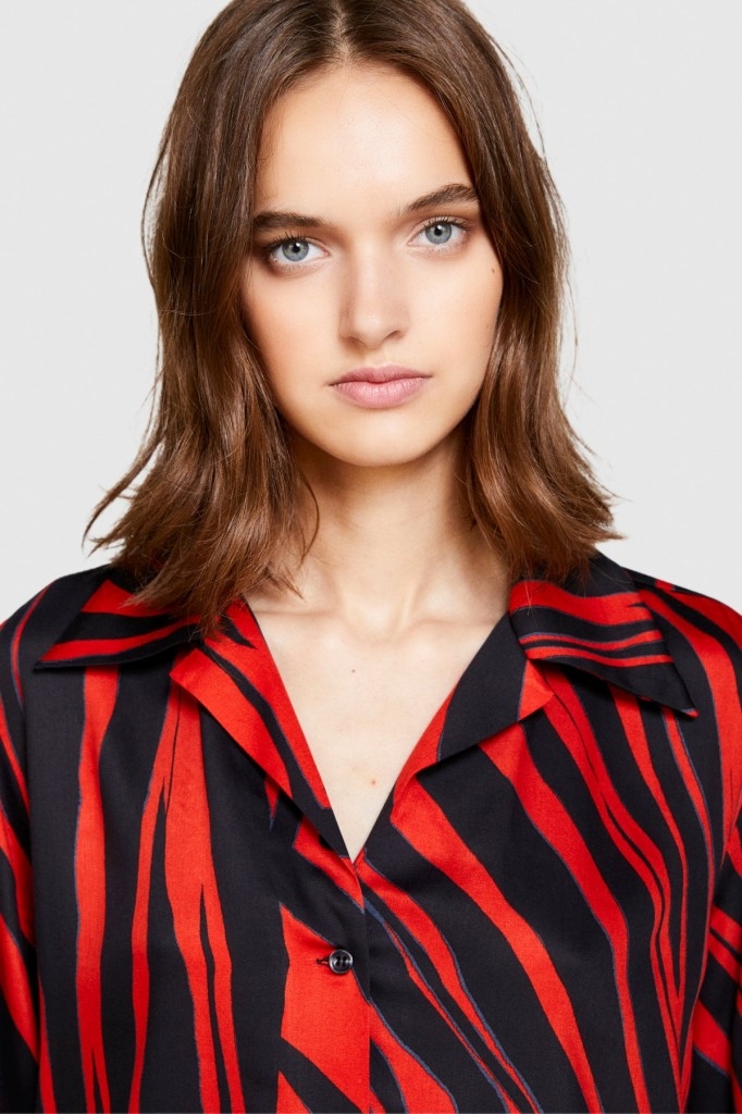 %100 Viskoz Desenli Gömlek V Yaka Saten Gömlek Kadın Siyah Gömlek - 323A53CRLQ05U