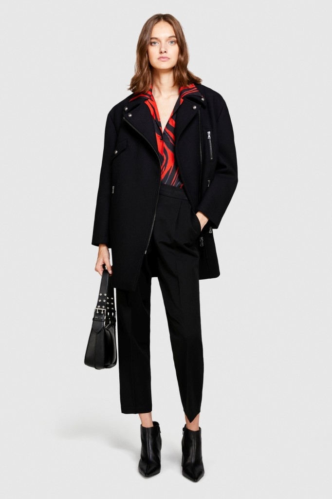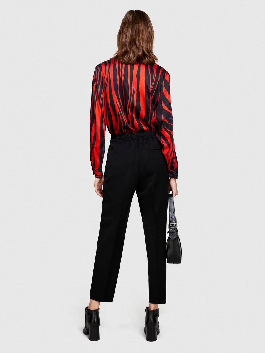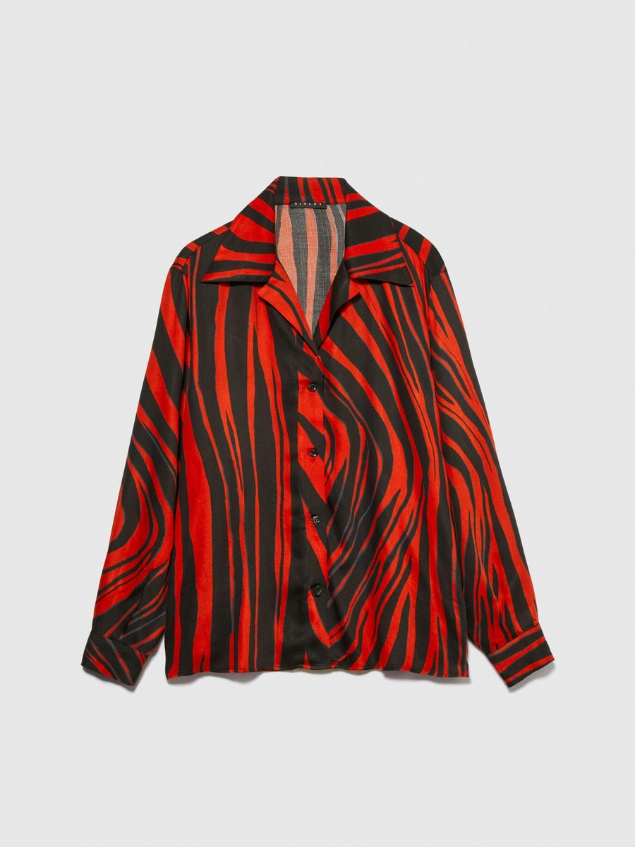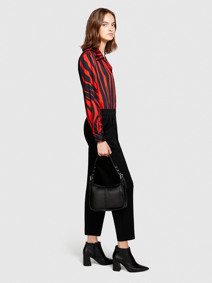 %100 Viskoz Desenli Gömlek V Yaka Saten Gömlek Kadın Siyah Gömlek - 323A53CRLQ05U