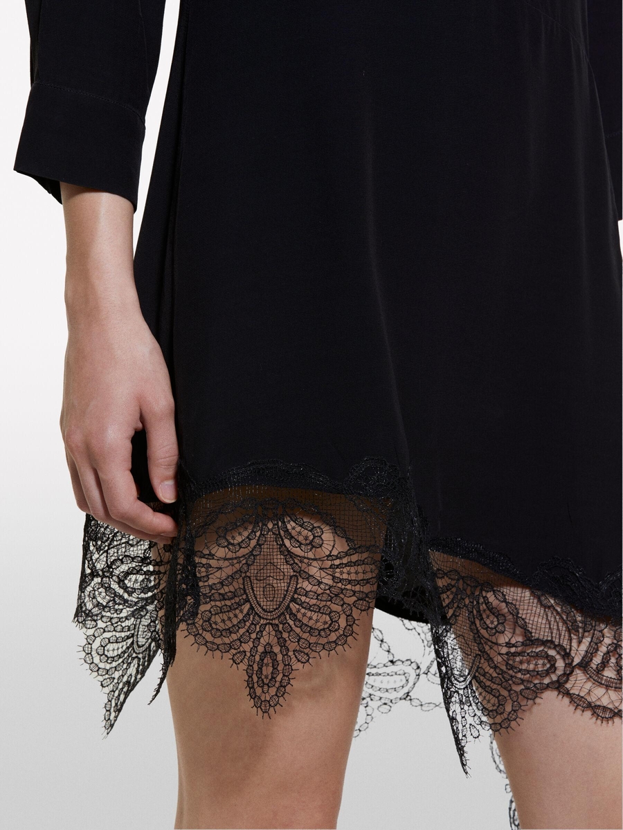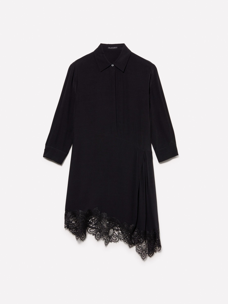 %100 Viskoz Etek Ucu Dantel Şeritli Asimetrik Gömlek Elbise Kadın Siyah Gömlek - 324A4W8ALV069