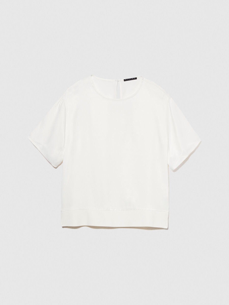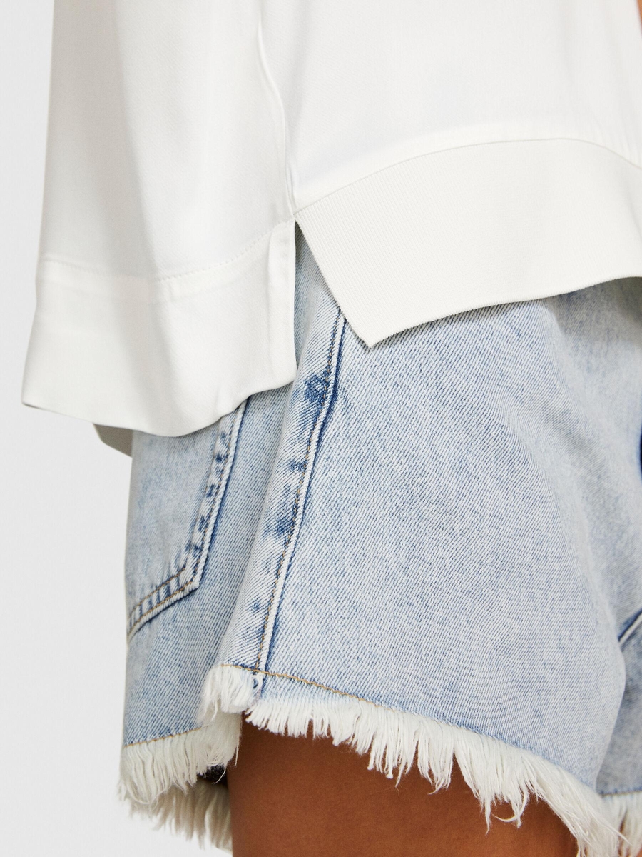 %100 Viskoz Etek Ucu Ribanalı Yırtmaçlı Geniş Yaka Bluz Kadın Beyaz Bluz - 324P52BZLQ075