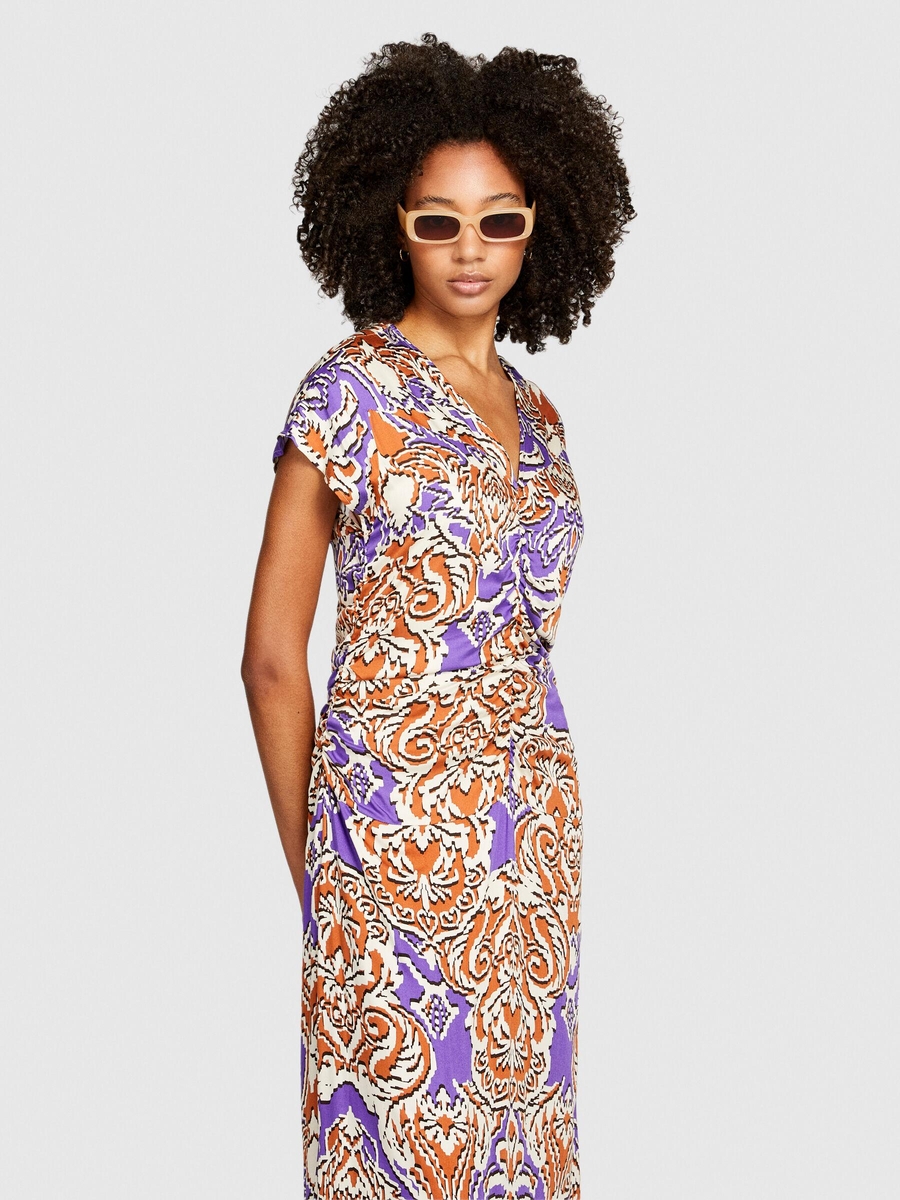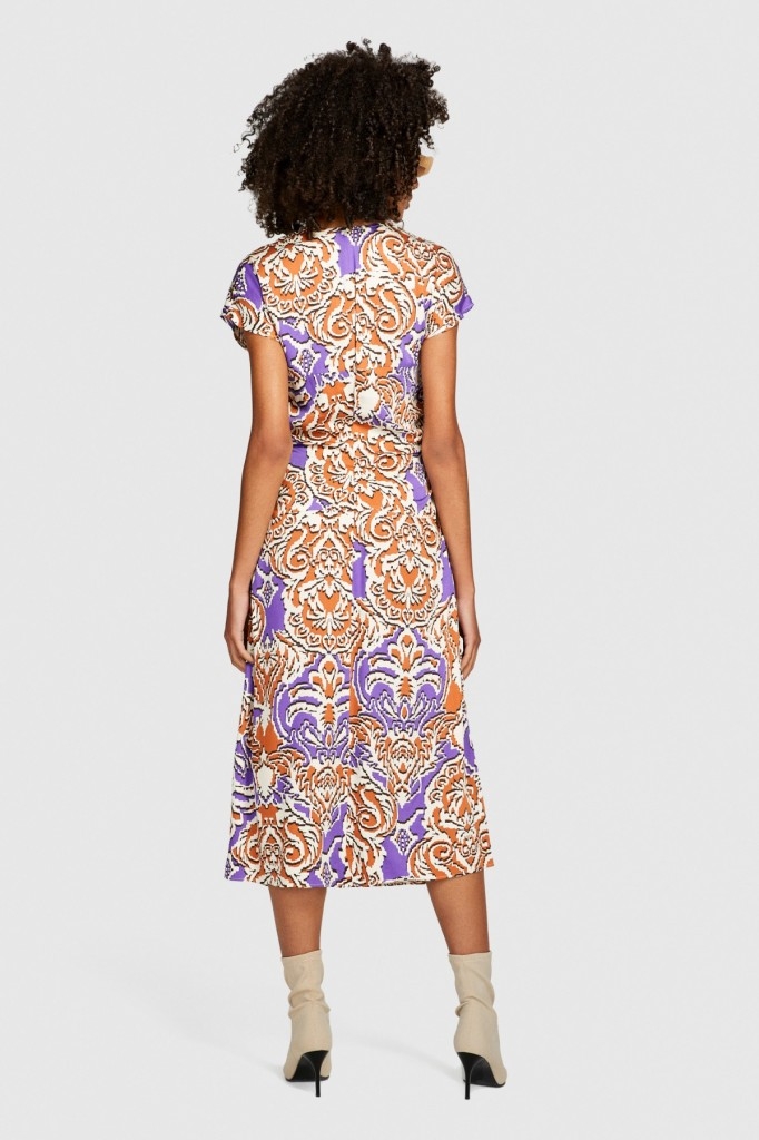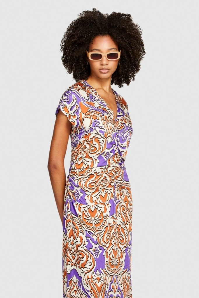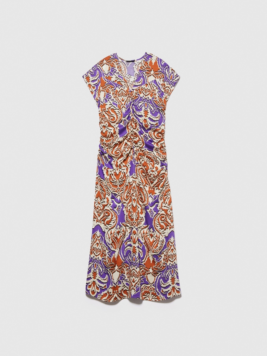 %100 Viskoz Önü Büzgülü V Yaka Kolsuz Saten Elbise Kadın Turuncu Elbise - 323A4H3NLV04D