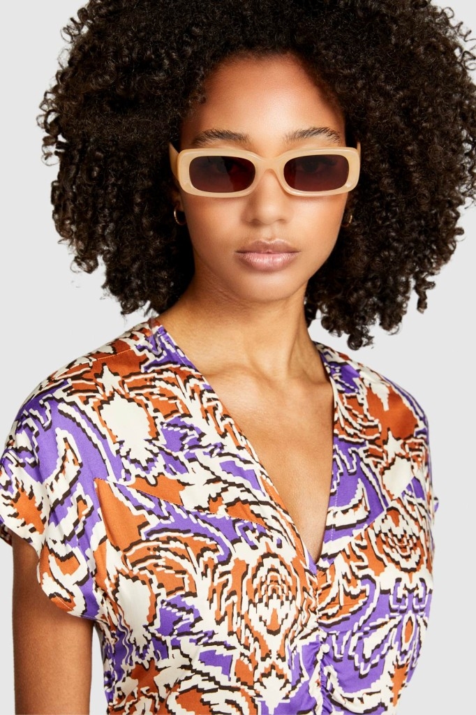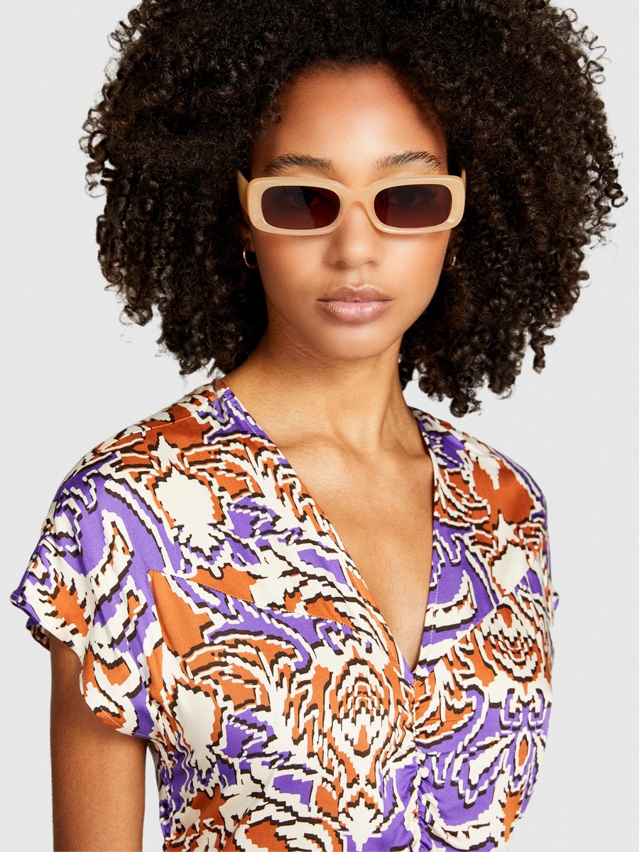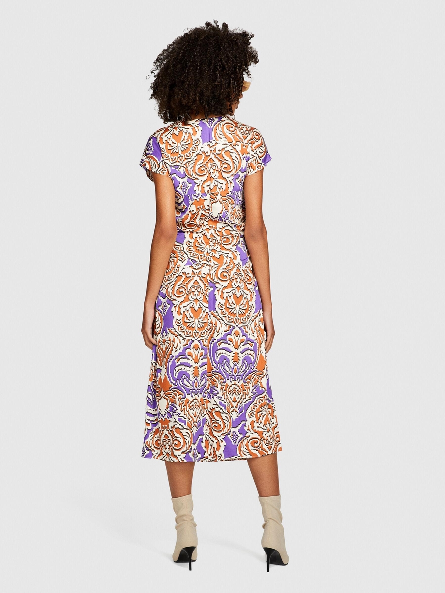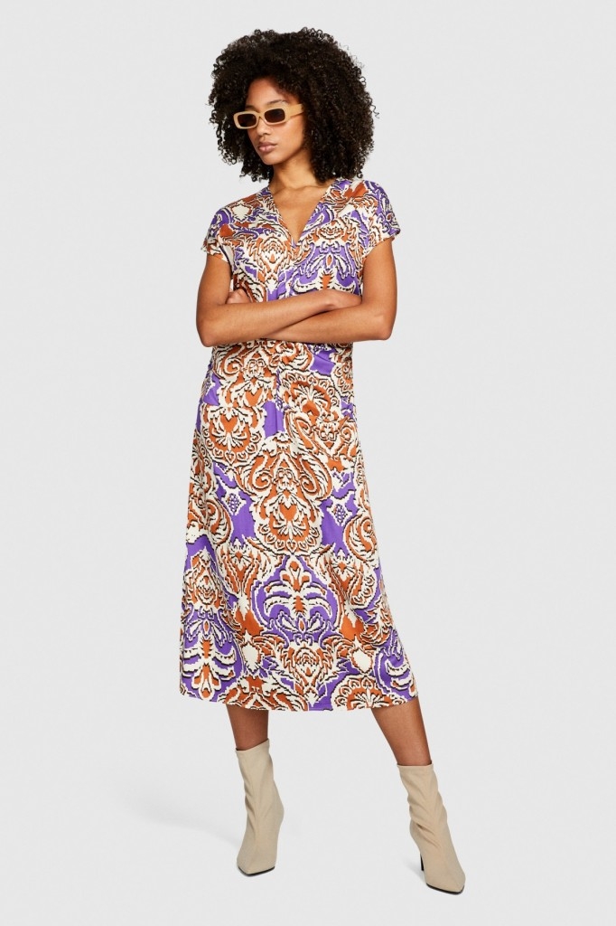 %100 Viskoz Önü Büzgülü V Yaka Kolsuz Saten Elbise Kadın Turuncu Elbise - 323A4H3NLV04D