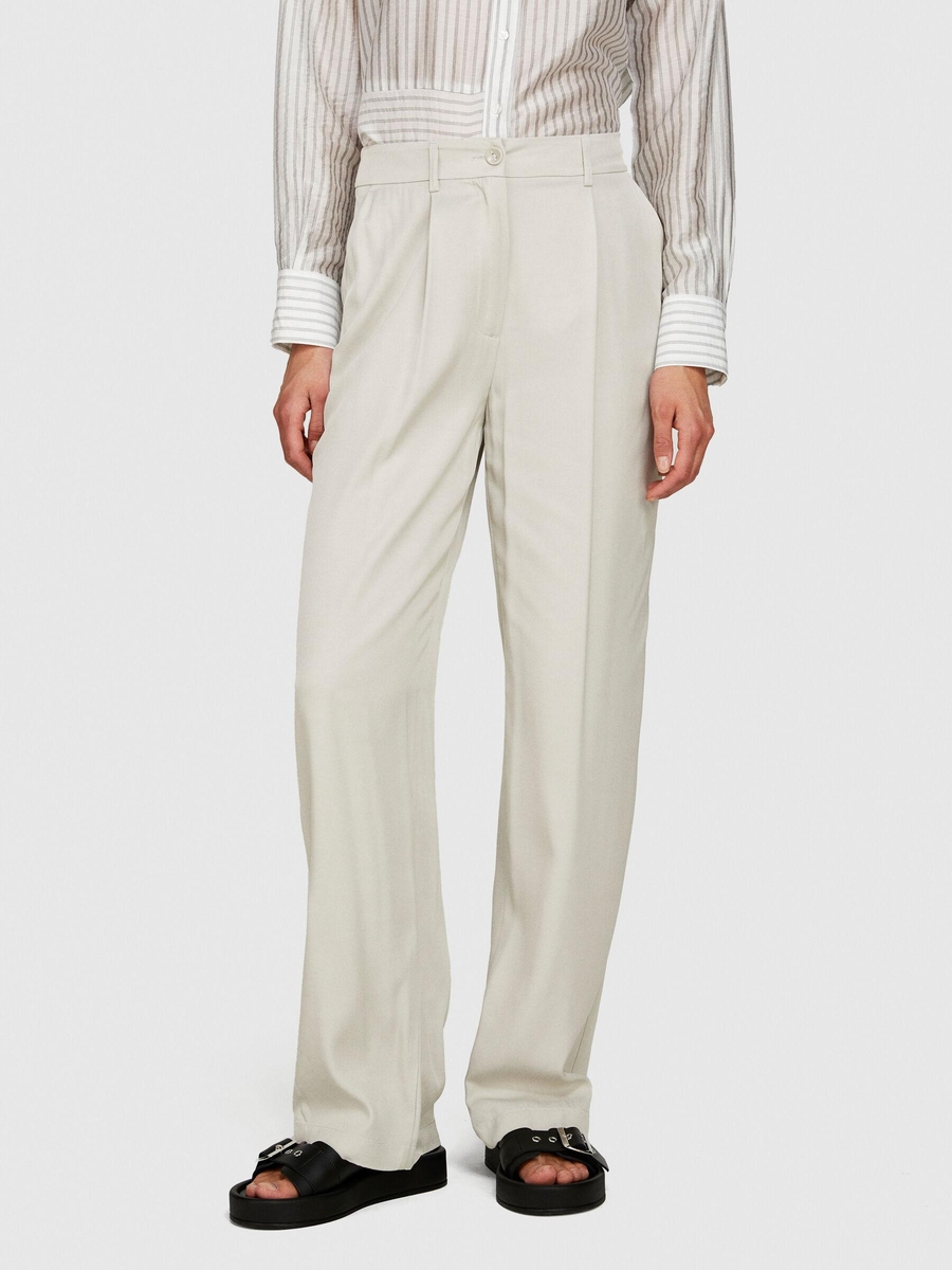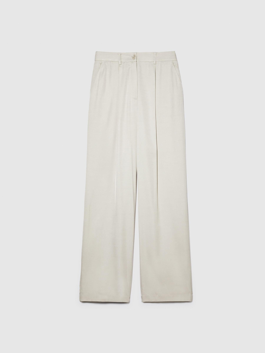%100 VİSKOZ ÖNÜ PİLELİ GENİŞ PAÇA PANTOLON Kadın Gri Pantolon - 324P49NMLF057