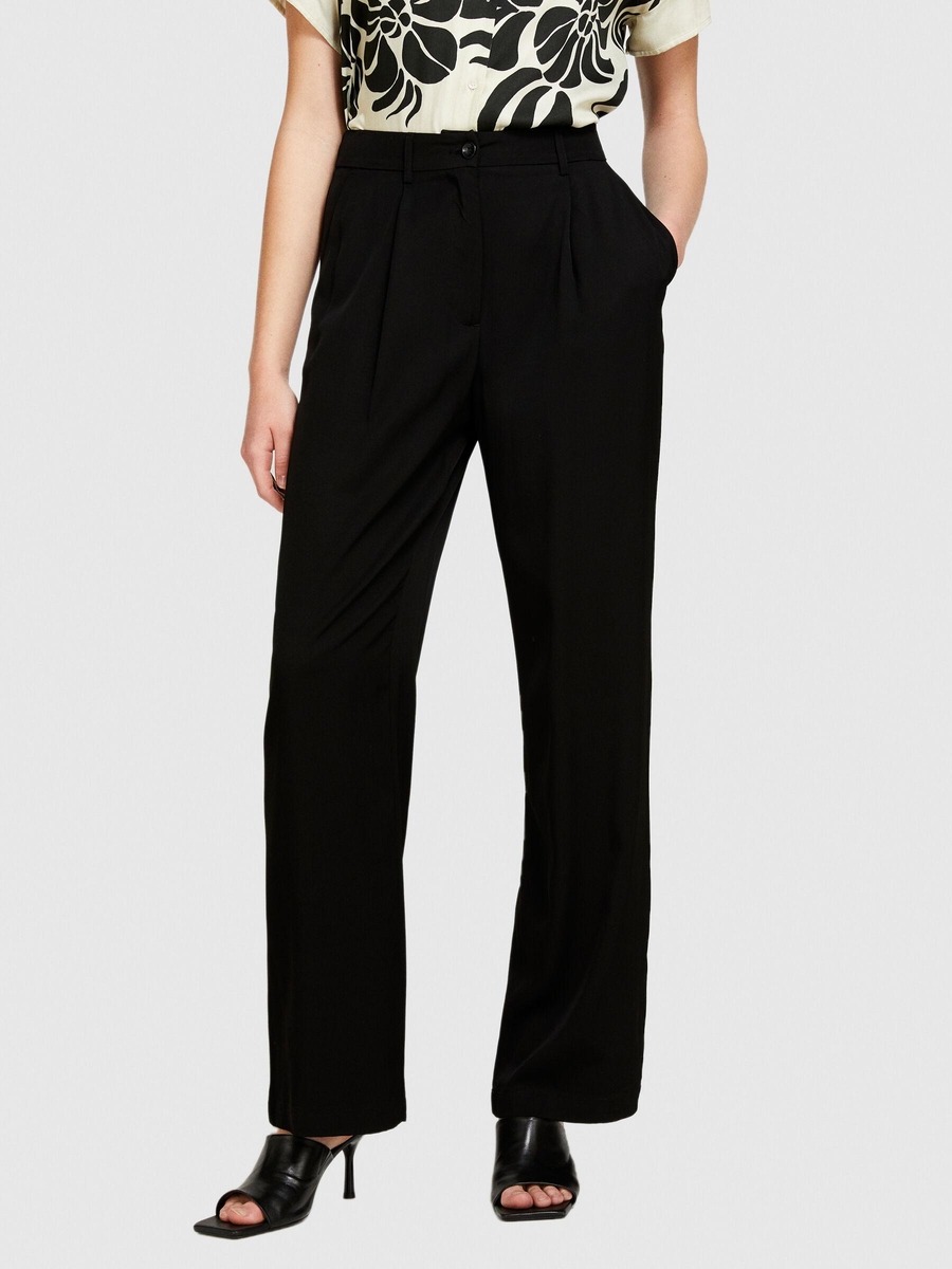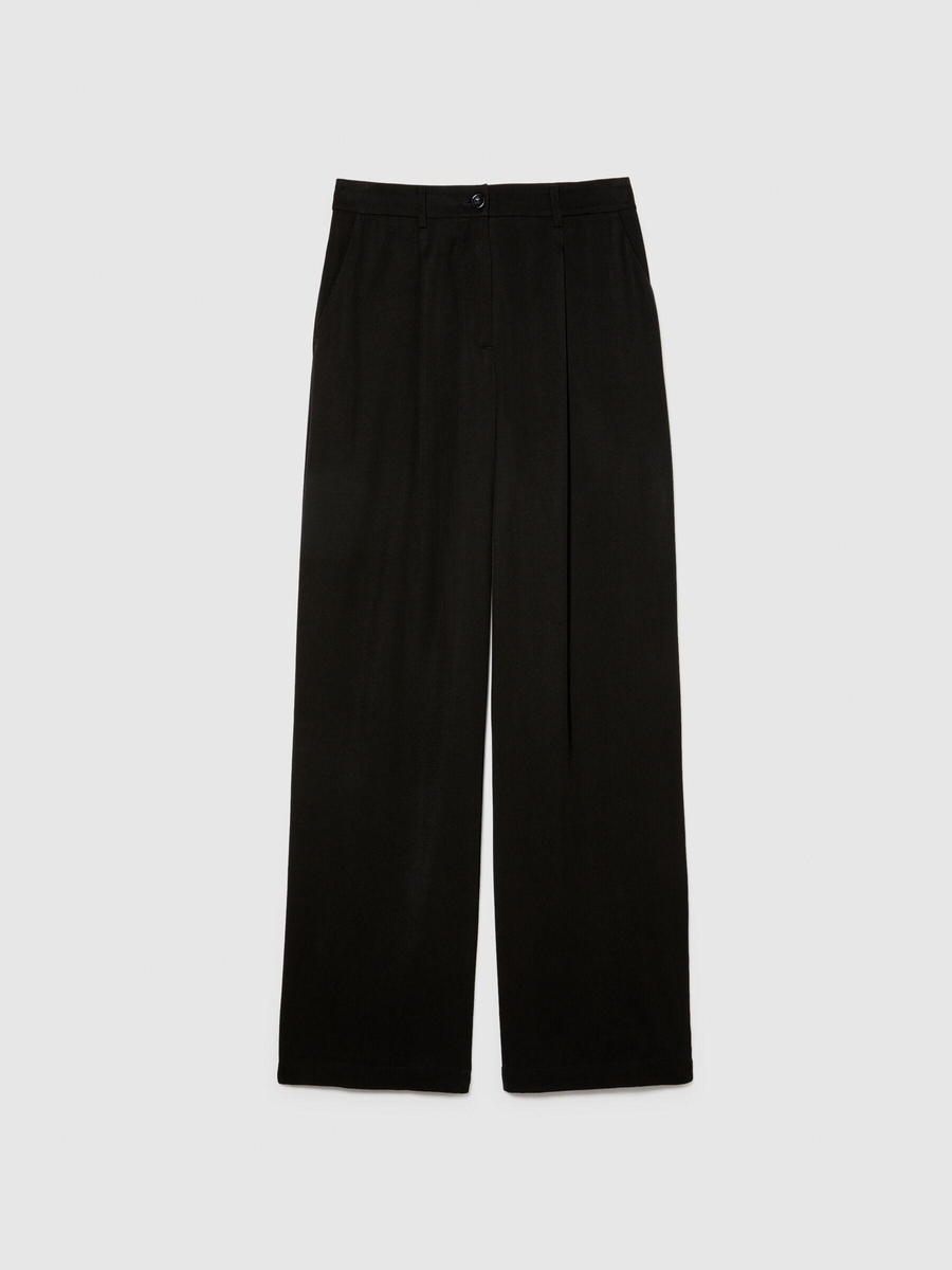 %100 VİSKOZ ÖNÜ PİLELİ GENİŞ PAÇA PANTOLON Kadın Siyah Pantolon - 324P49NMLF057