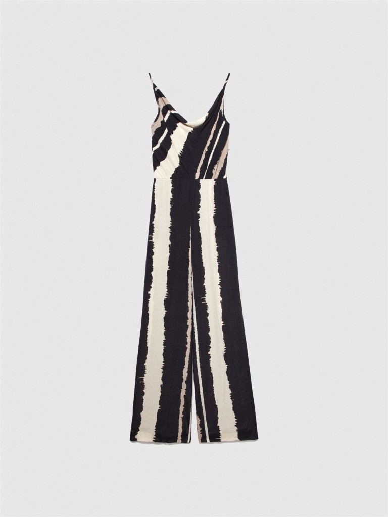 %100 Viskoz Tamamı Baskılı Asimetrik Yakalı Palazzo Tulum Kadın Turuncu Tulum - 324P4WAXLT00I