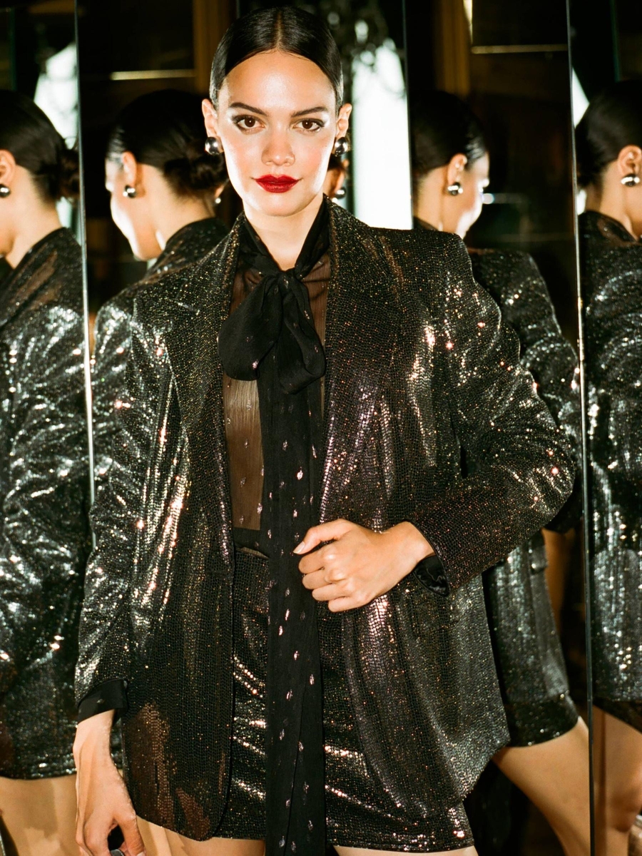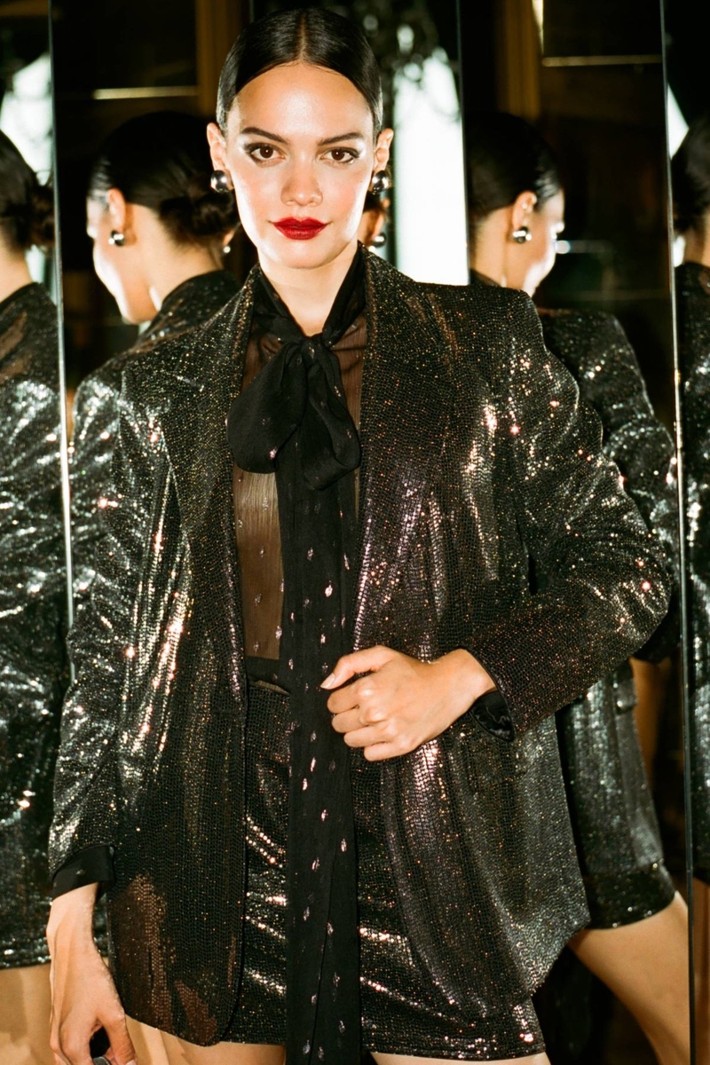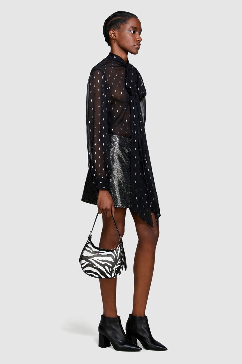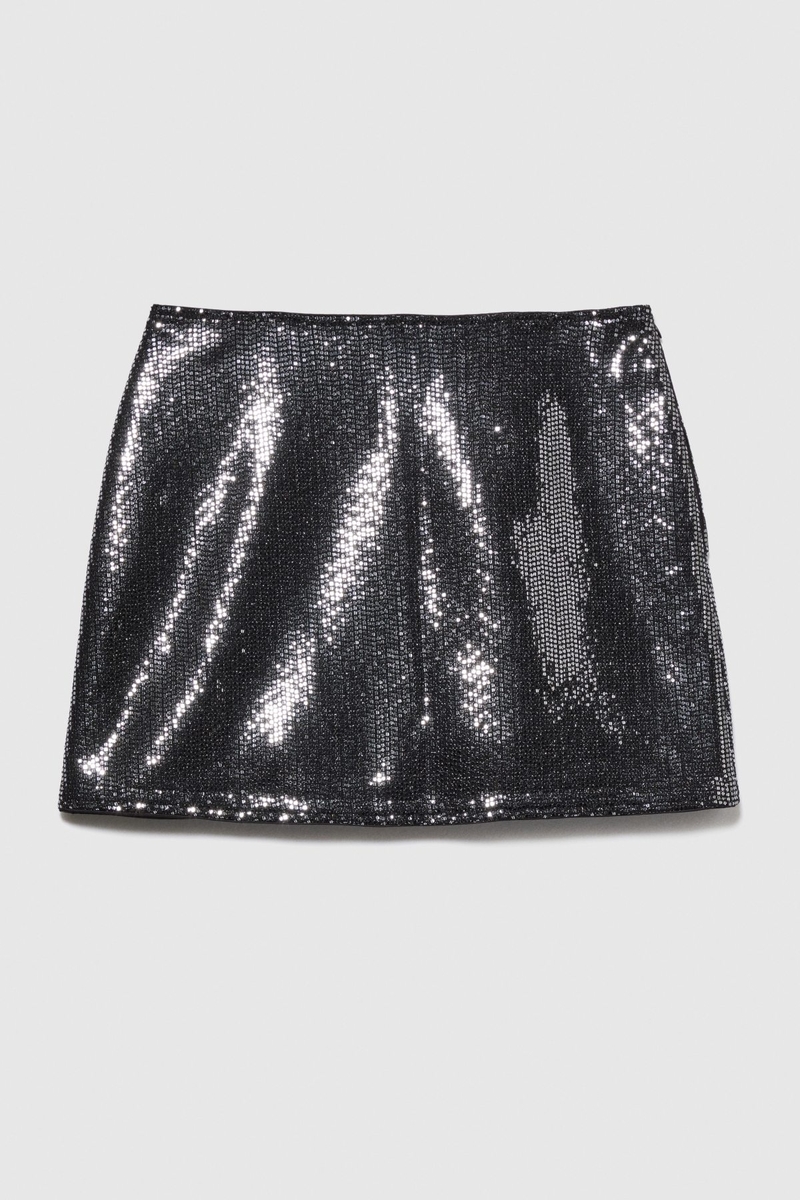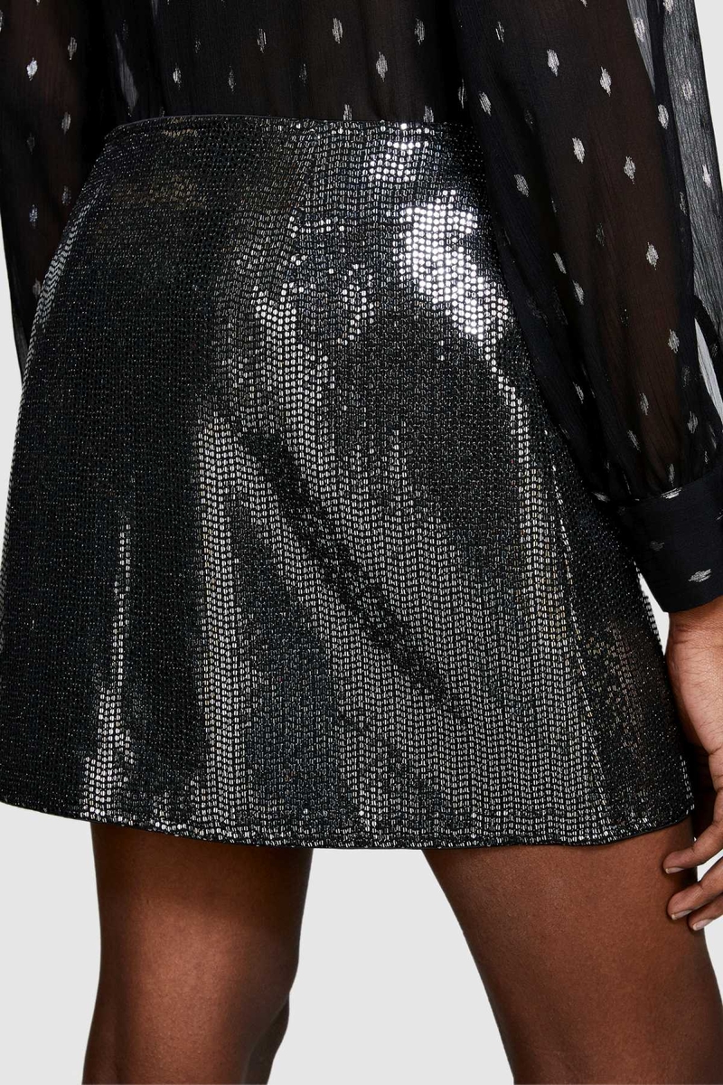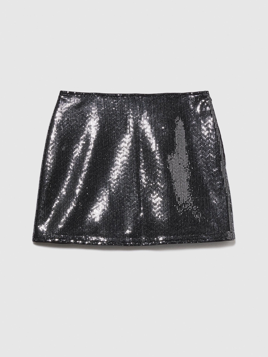 Astarlı Payetli Mini Etek Kadın Siyah T-Shirt - 323A4XJTL001Z