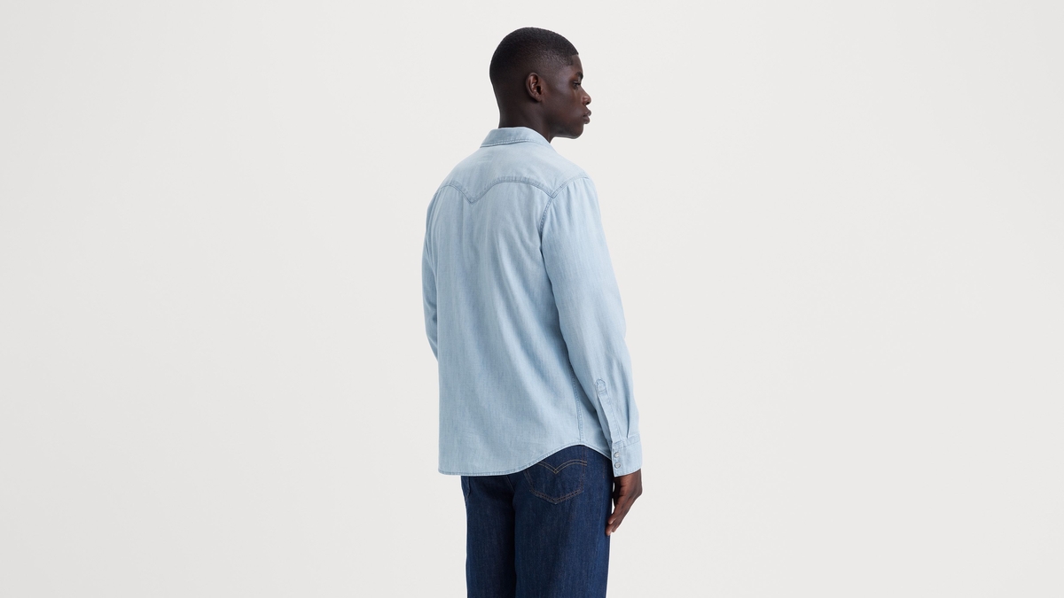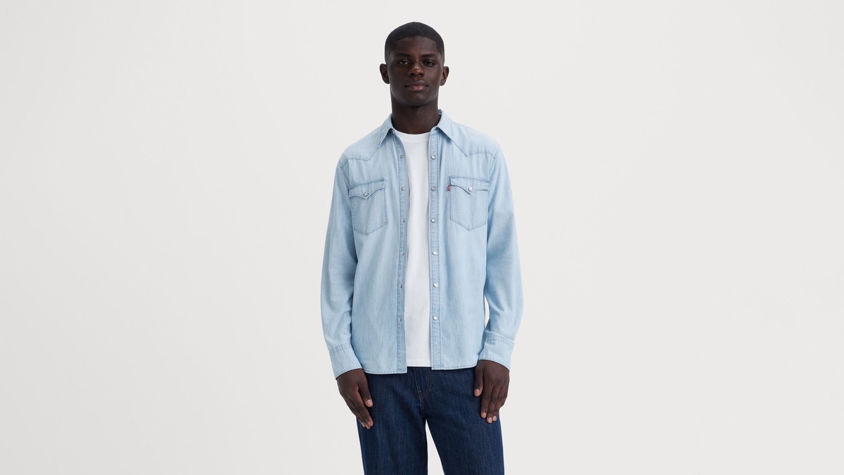 Uzun kollu denim Batı gömlek. Orijinal batı detayları. Kavisli gömlek. Göğsünde iki tane cep bulunuyor.Streç içermez