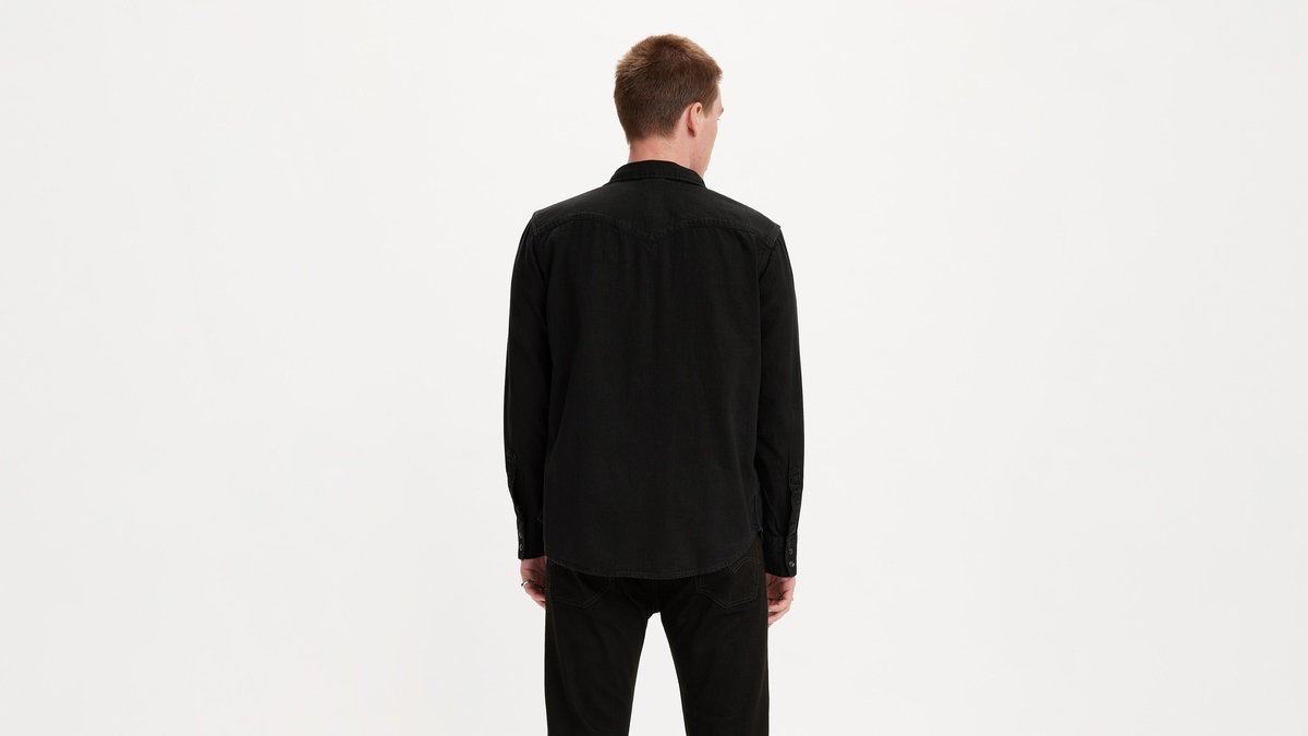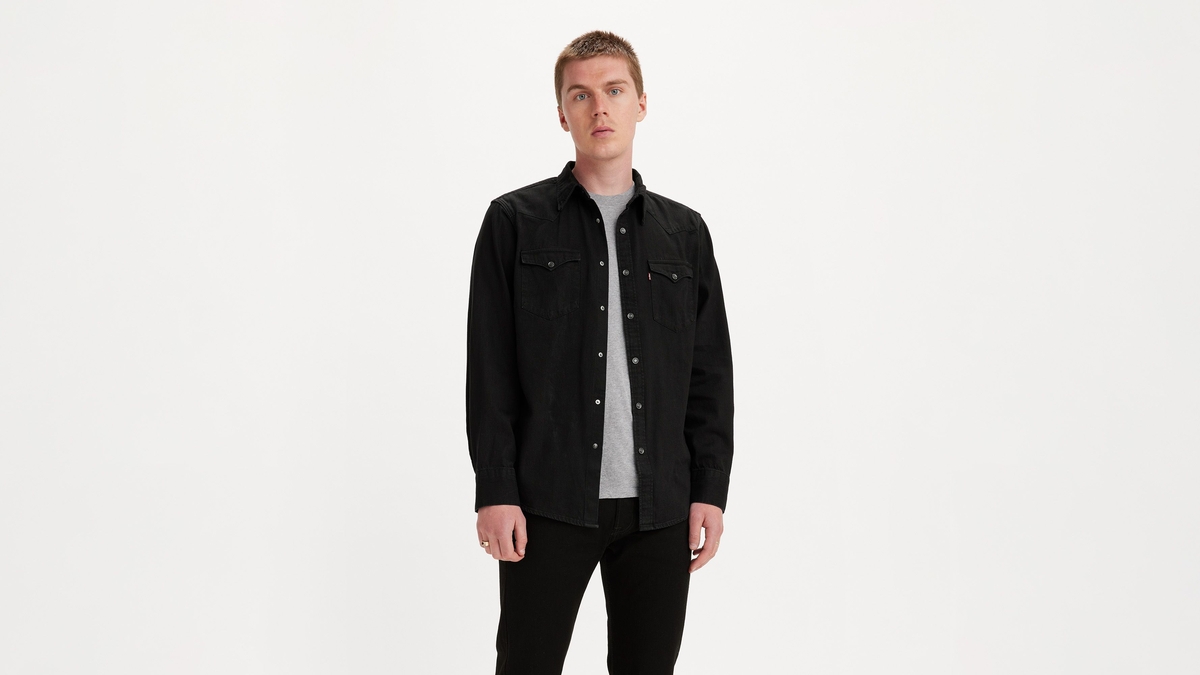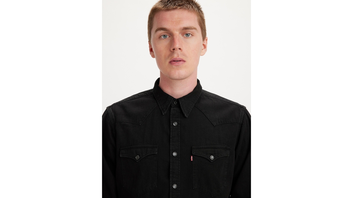Uzun kollu denim Batı gömlek. Orijinal batı detayları. Kavisli gömlek. Göğsünde iki tane cep bulunuyor.