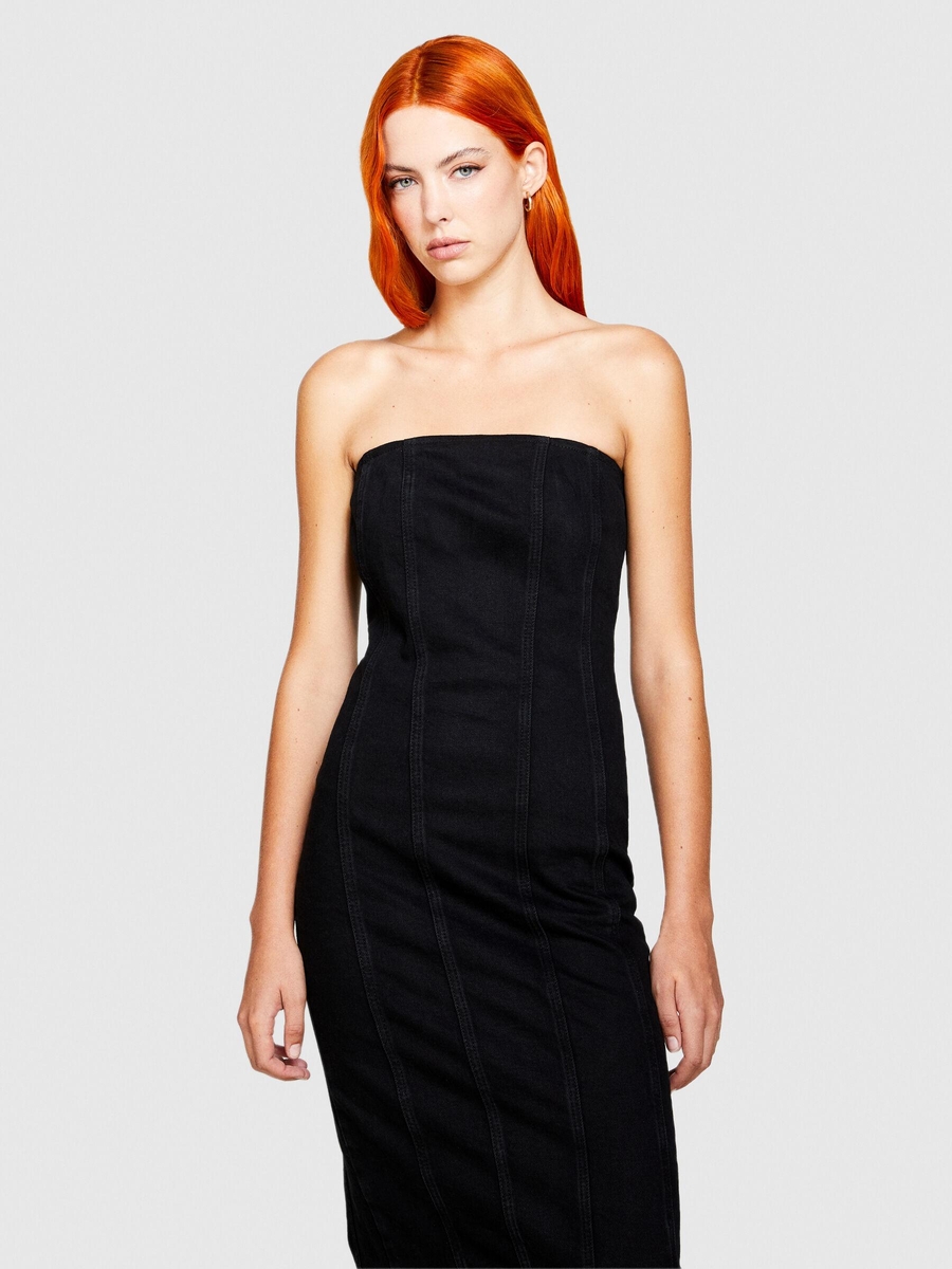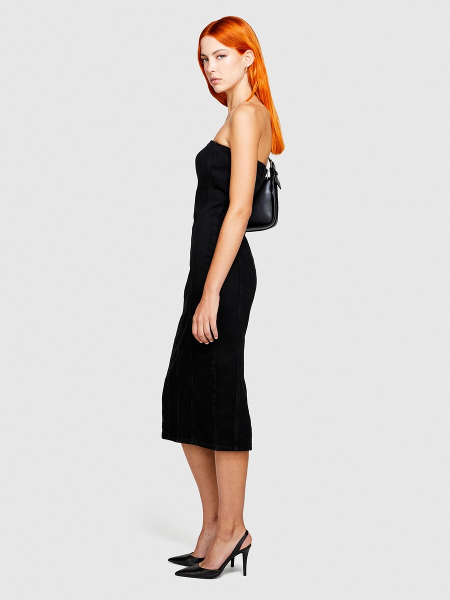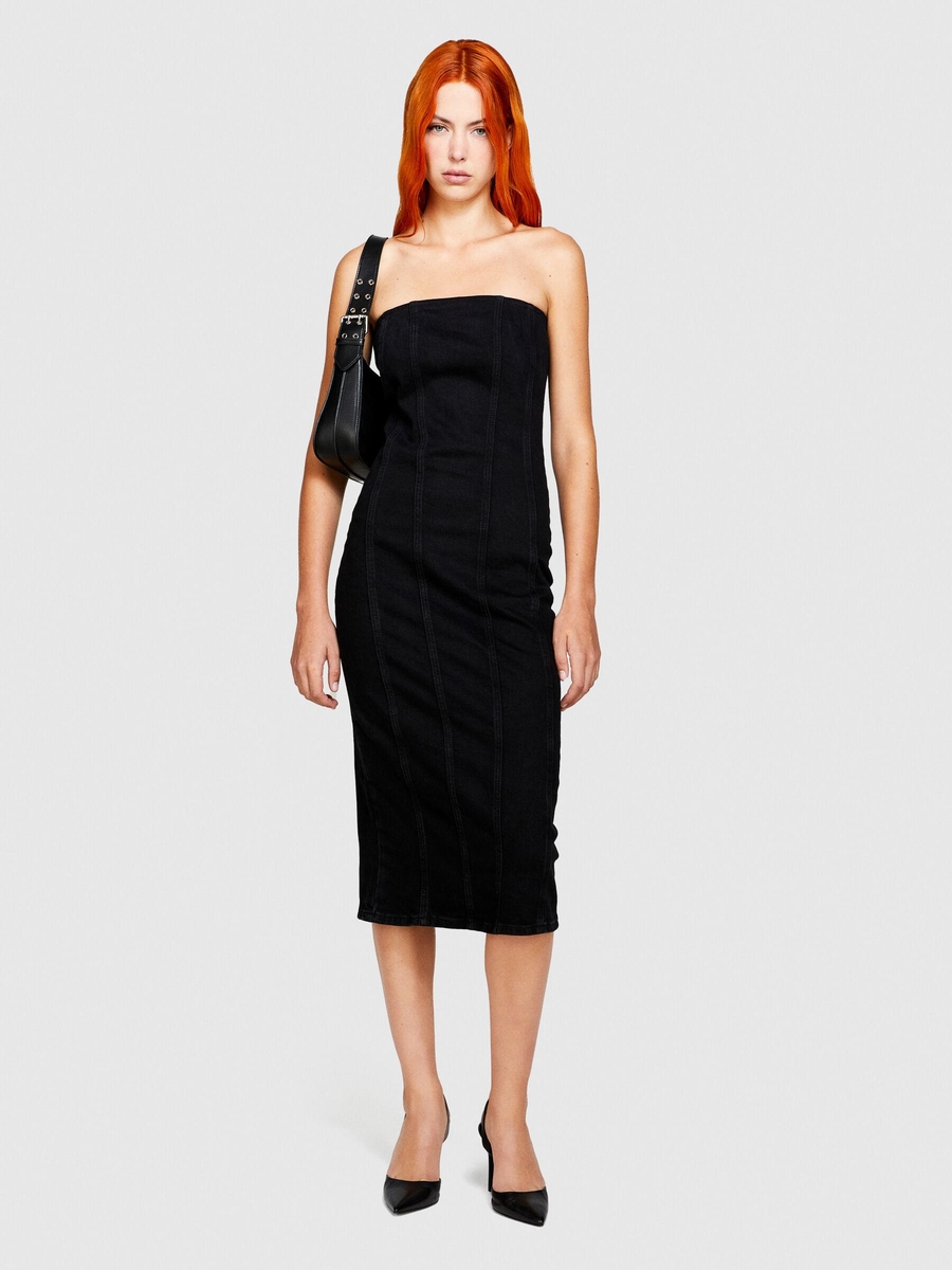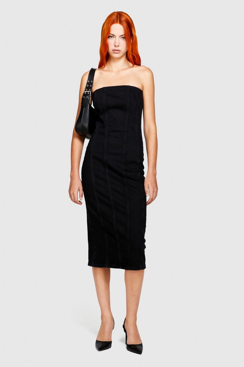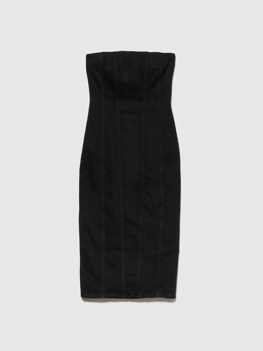 Bodycon Çizgili Denim Elbise Kadın Lacivert T-Shirt - 323A4FRTLV05B