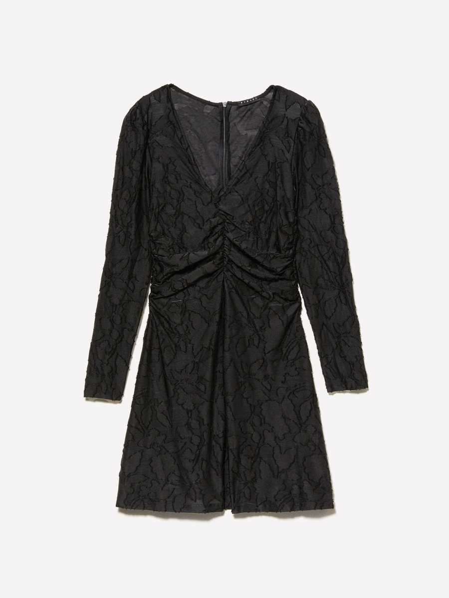 Büzgü Detaylı Uzun Kollu Derin V Yaka Mini Elbise Kadın Siyah Elbise - 324A4TY3LV06N