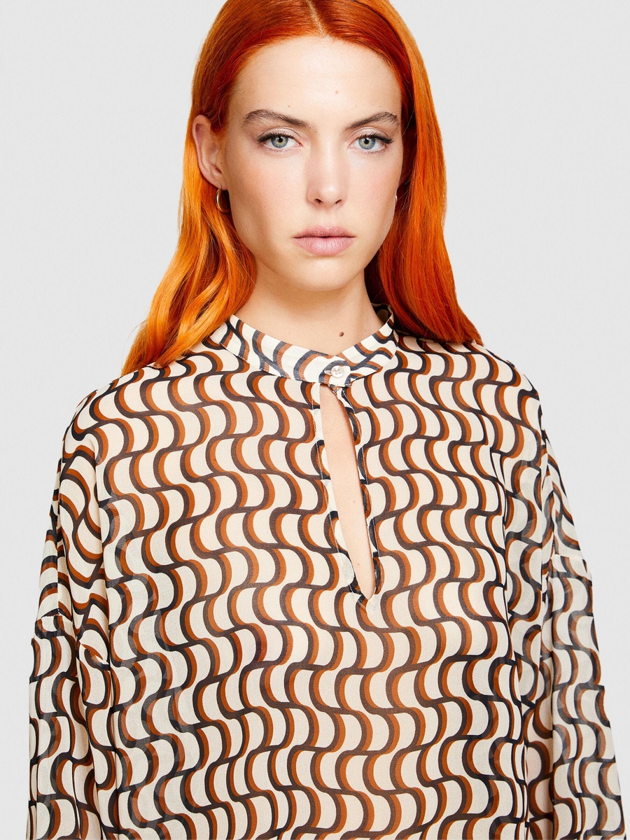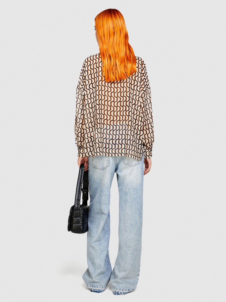 Desenli Cocoon Fit Şifon Gömlek Kadın Lacivert Gömlek - 323A5MRBLQ05V
