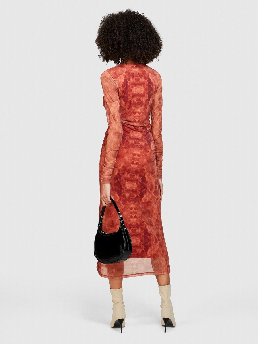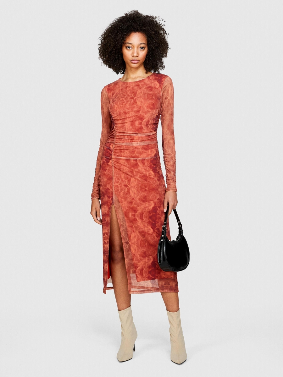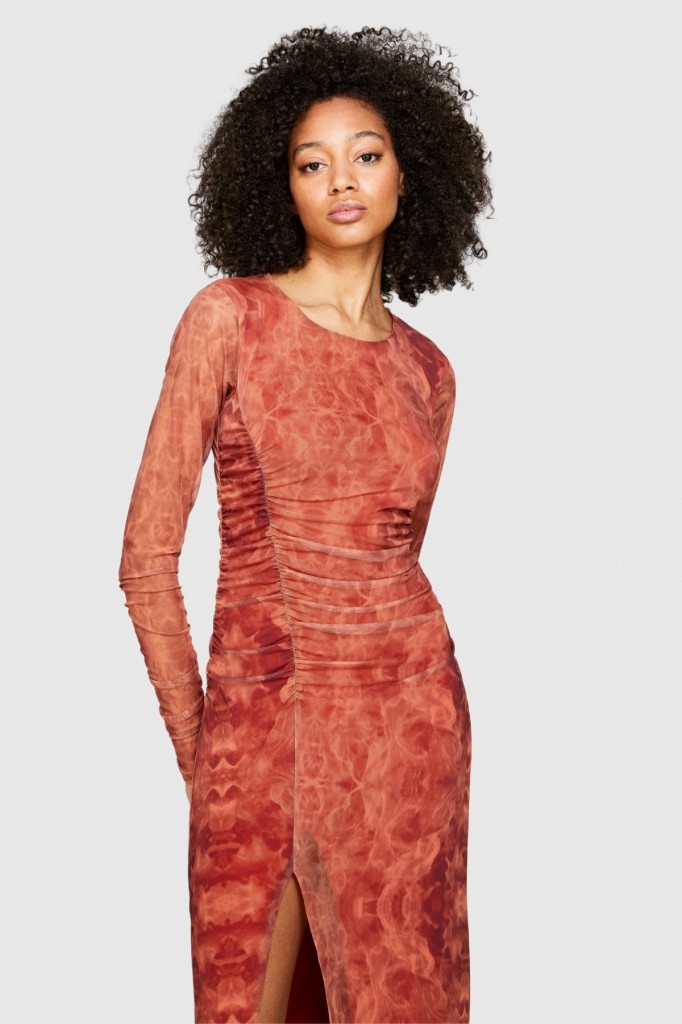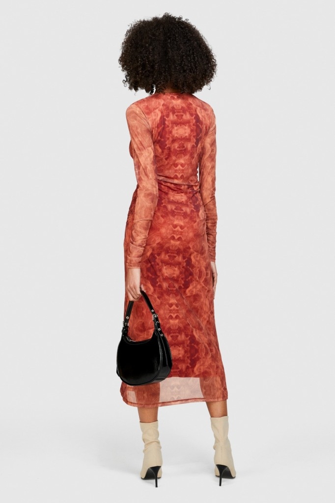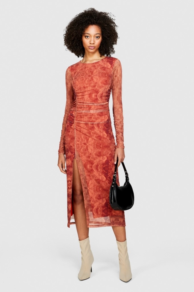 Desenli Slim Fit Tüllü Uzun Kollu Elbise Kadın Lacivert Elbise - 323A4XAFLV04E