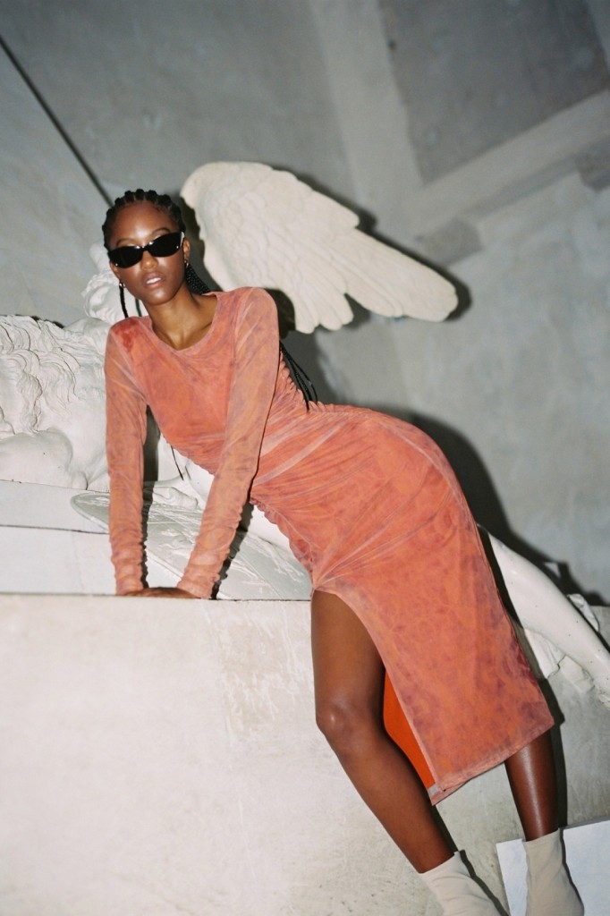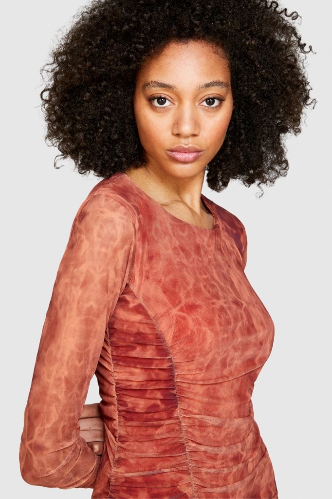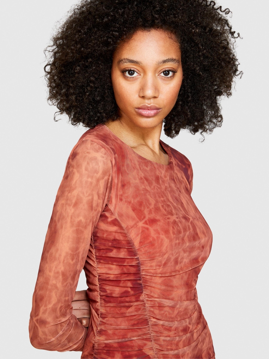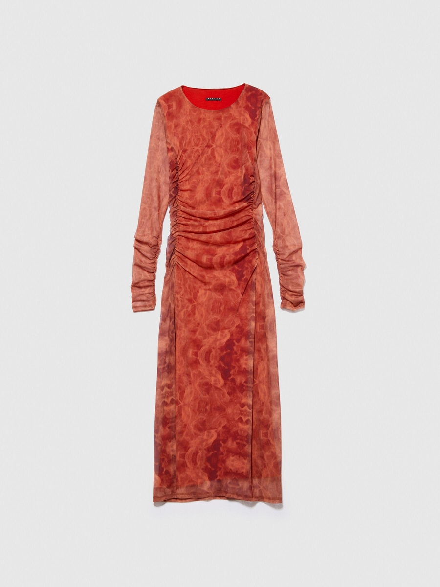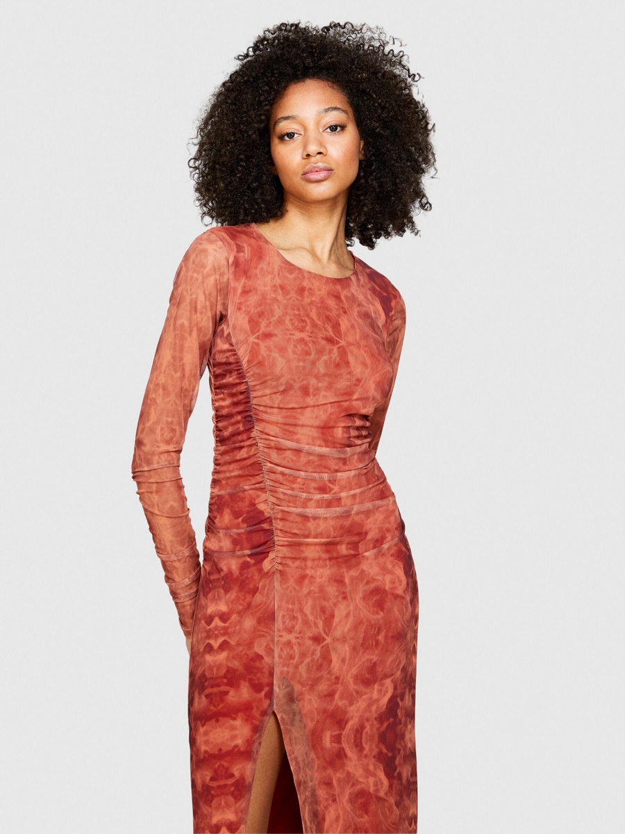 Desenli Slim Fit Tüllü Uzun Kollu Elbise Kadın Lacivert Elbise - 323A4XAFLV04E