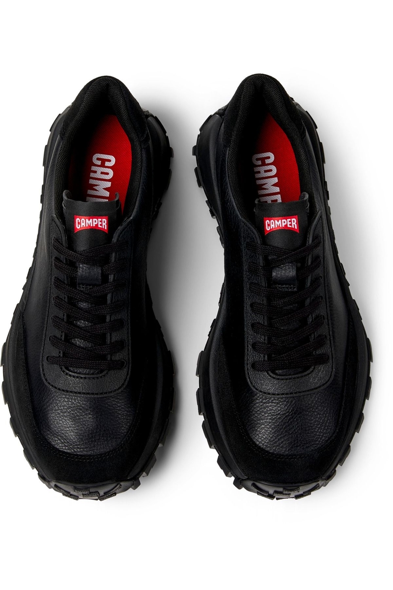 White leather and textile men's sneakers with OrthoLite® Recycled™ footbeds, EVA midsole and Vibram outsoles. Our Drift Trail fuses high-performance innovation with a vintage aesthetic.
