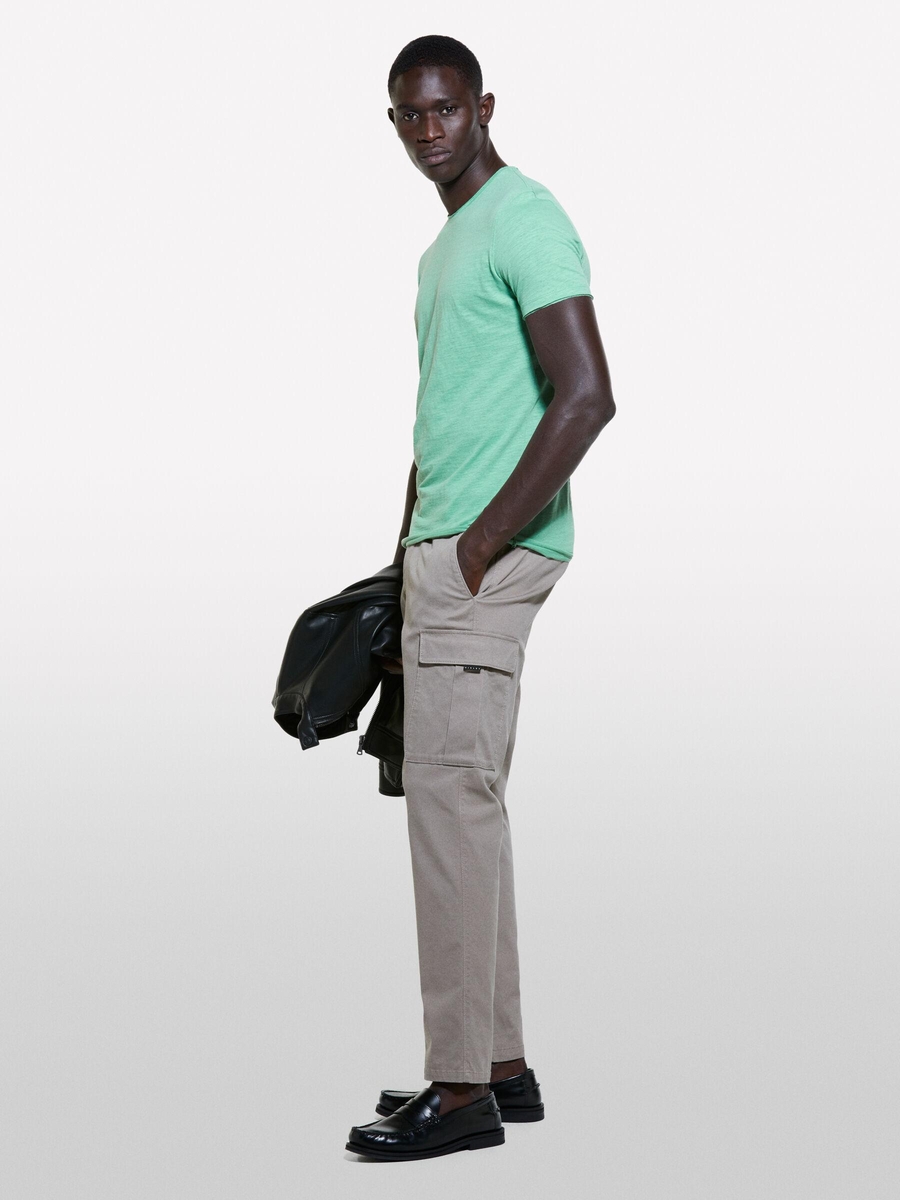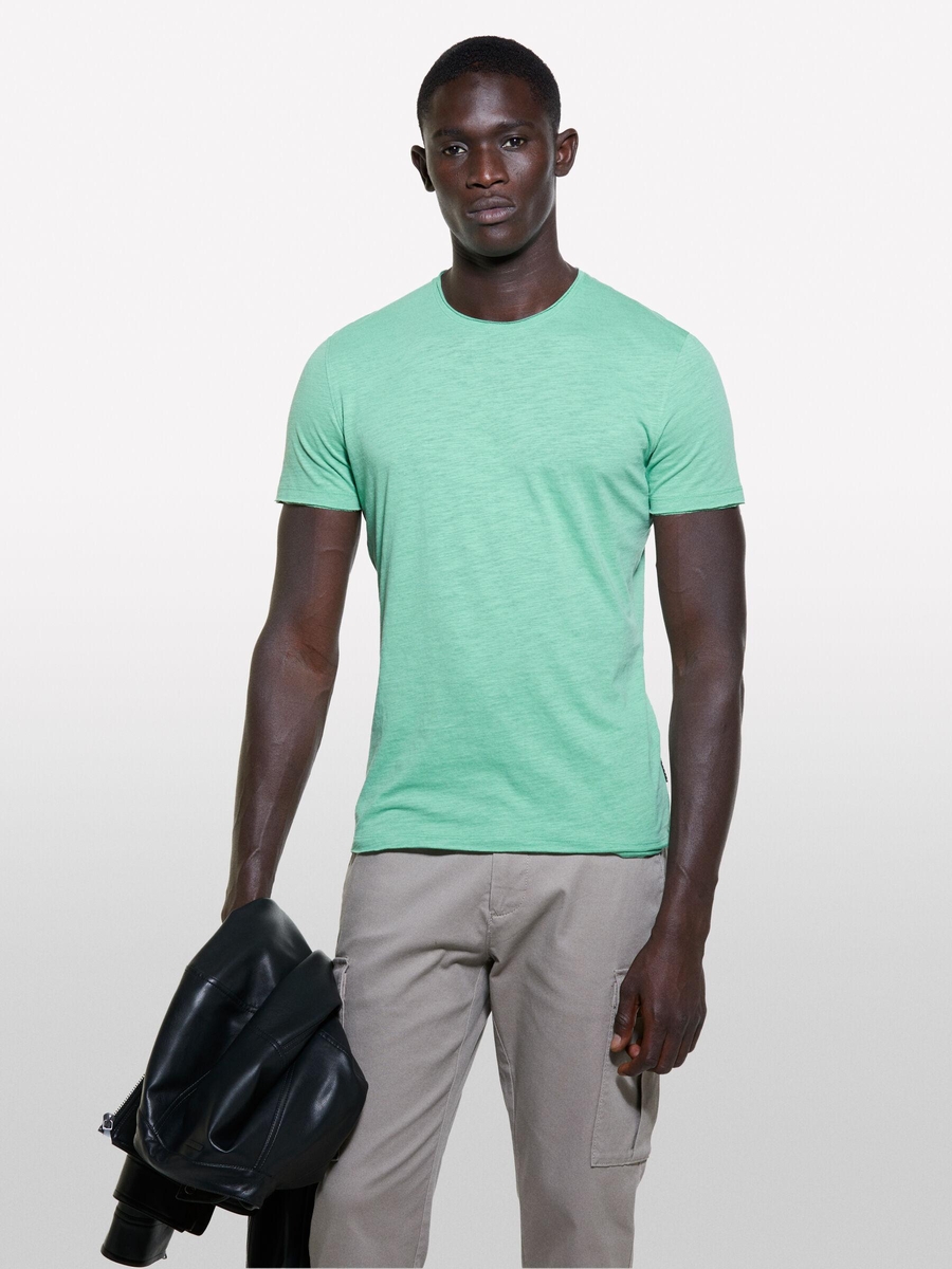 Erk_%100 Pamuk Bisiklet Yaka Slim Fit Slub T-Shirt Erkek Soluk Yeşil T-Shirt - 324A3WF0S101K