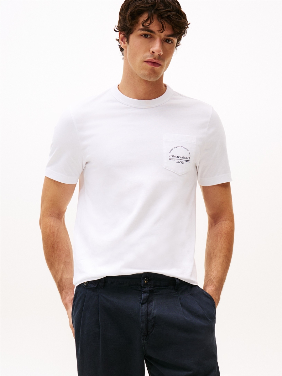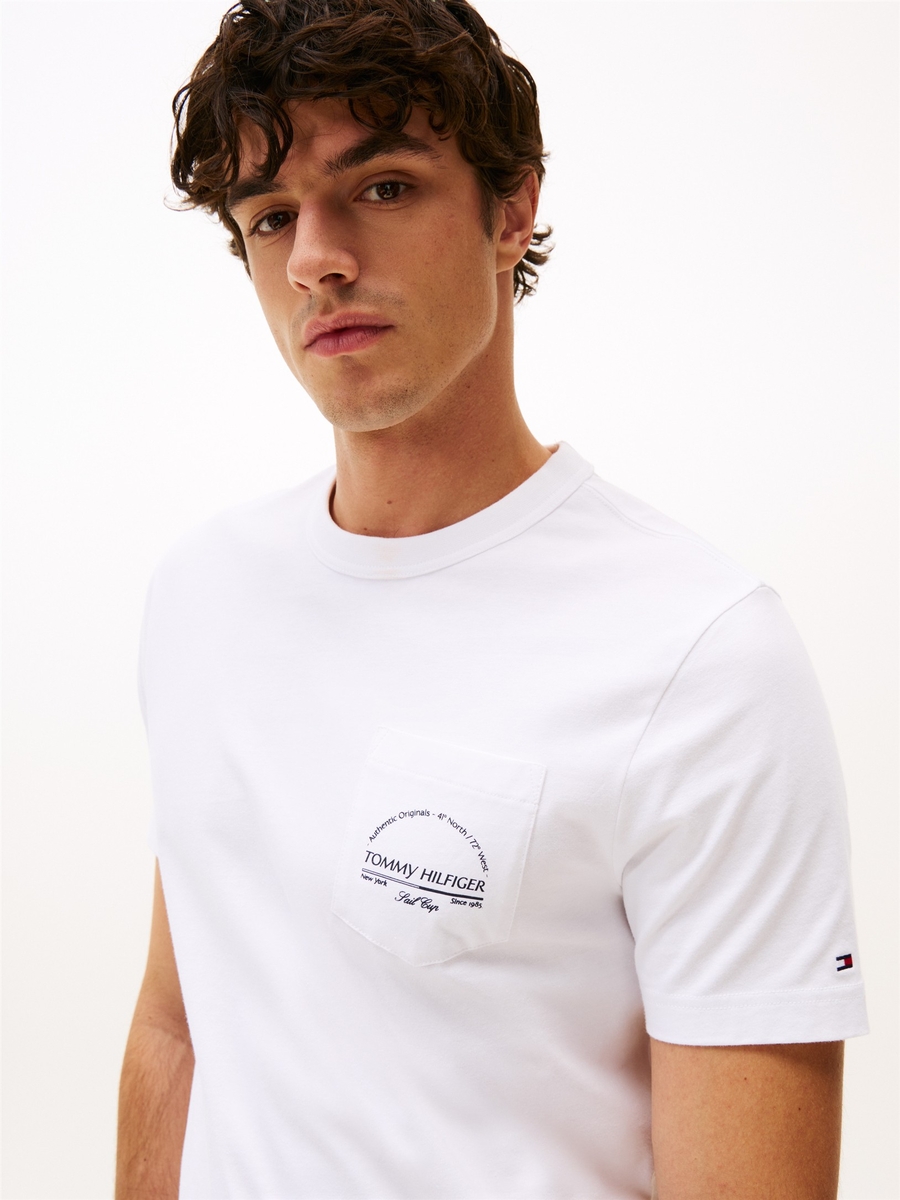 HILFIGER ARCH POCKET TEE Erkek Beyaz T-Shirt - MW0MW38623