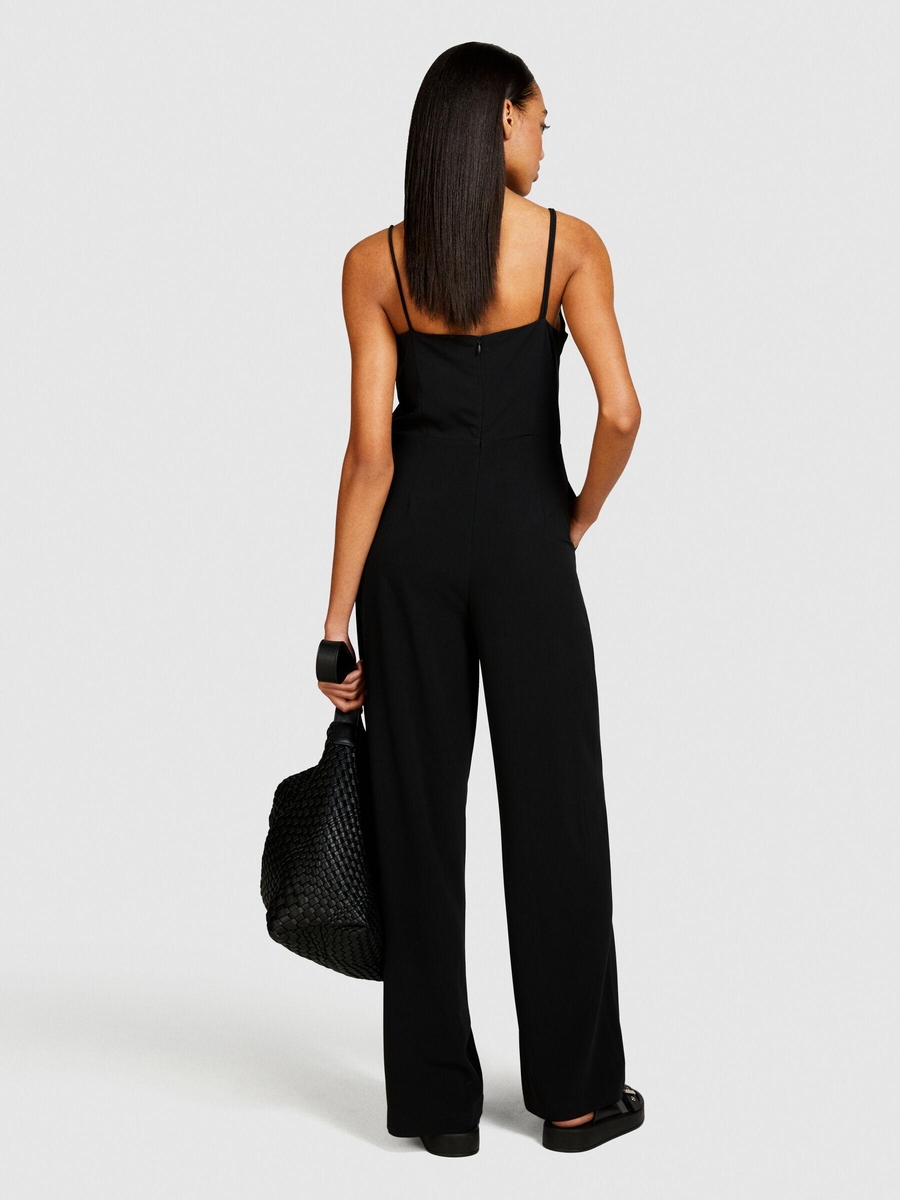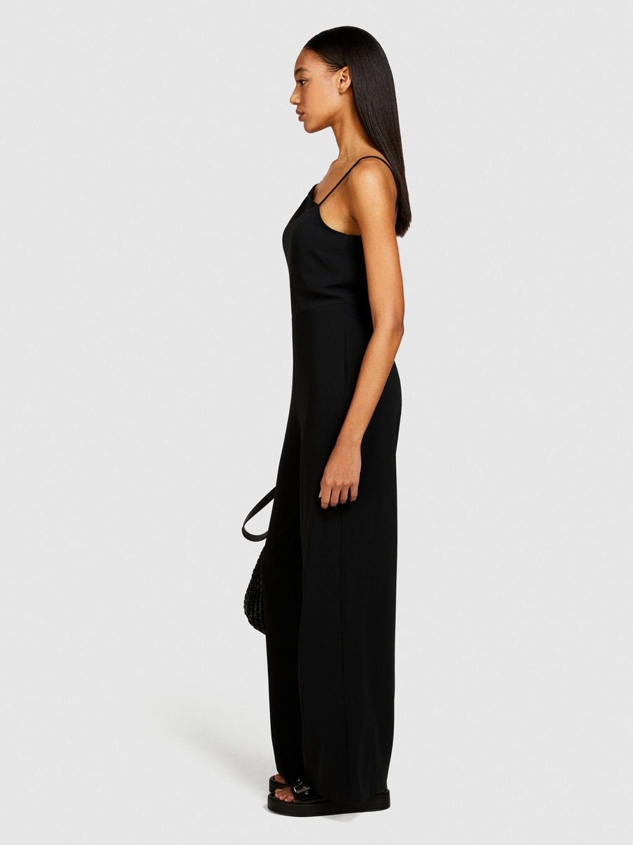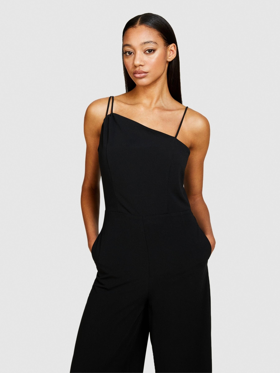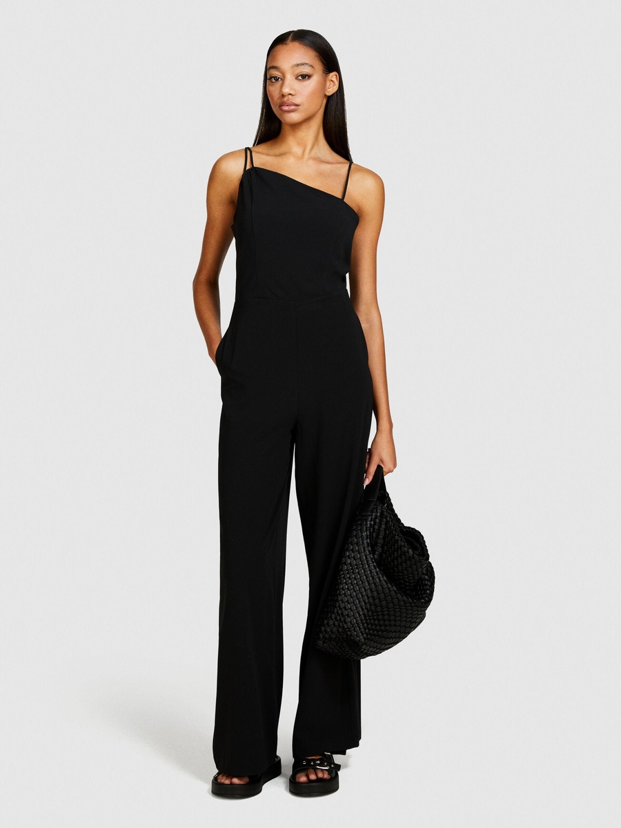 İnce Askılı Önü Asimetrik Detaylı Palazzo Tulum Kadın Siyah Tulum - 324P41AYLT00G
