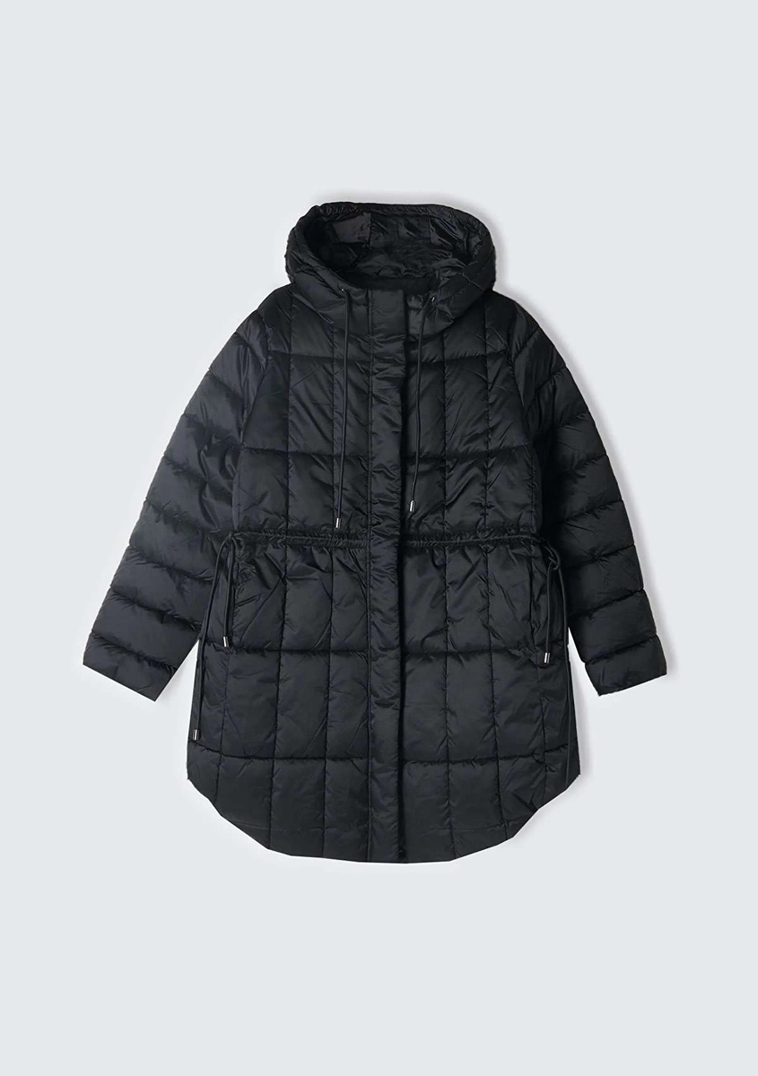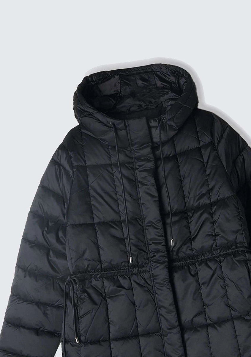 Kapüşonlu Beli Büzgülü Gizli Fermuar Kapamalı Mont Kadın Siyah Mont - 324A2E3XLN052