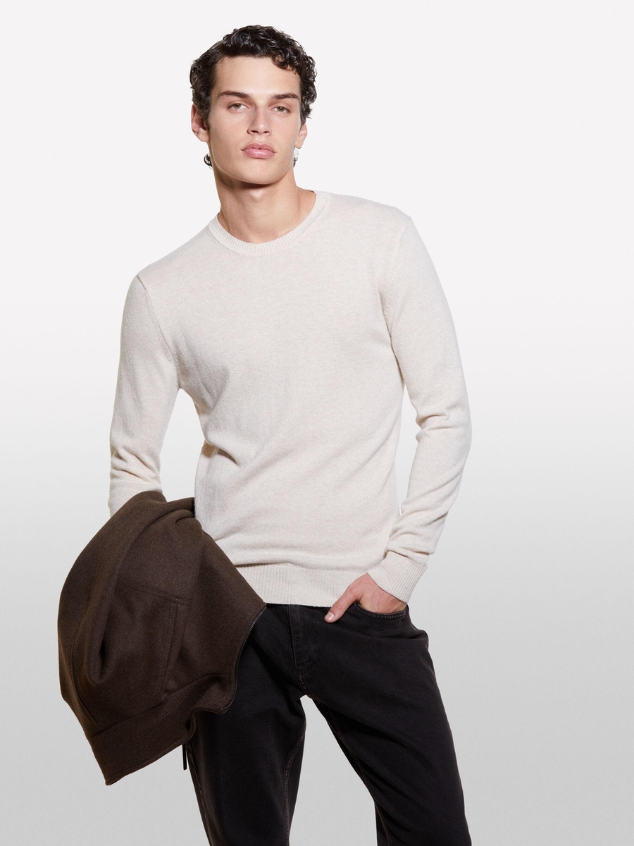 Kaşmir Karışımlı Bisiklet Yaka Kazak Erkek Krem Kazak - 324A102HS1B17