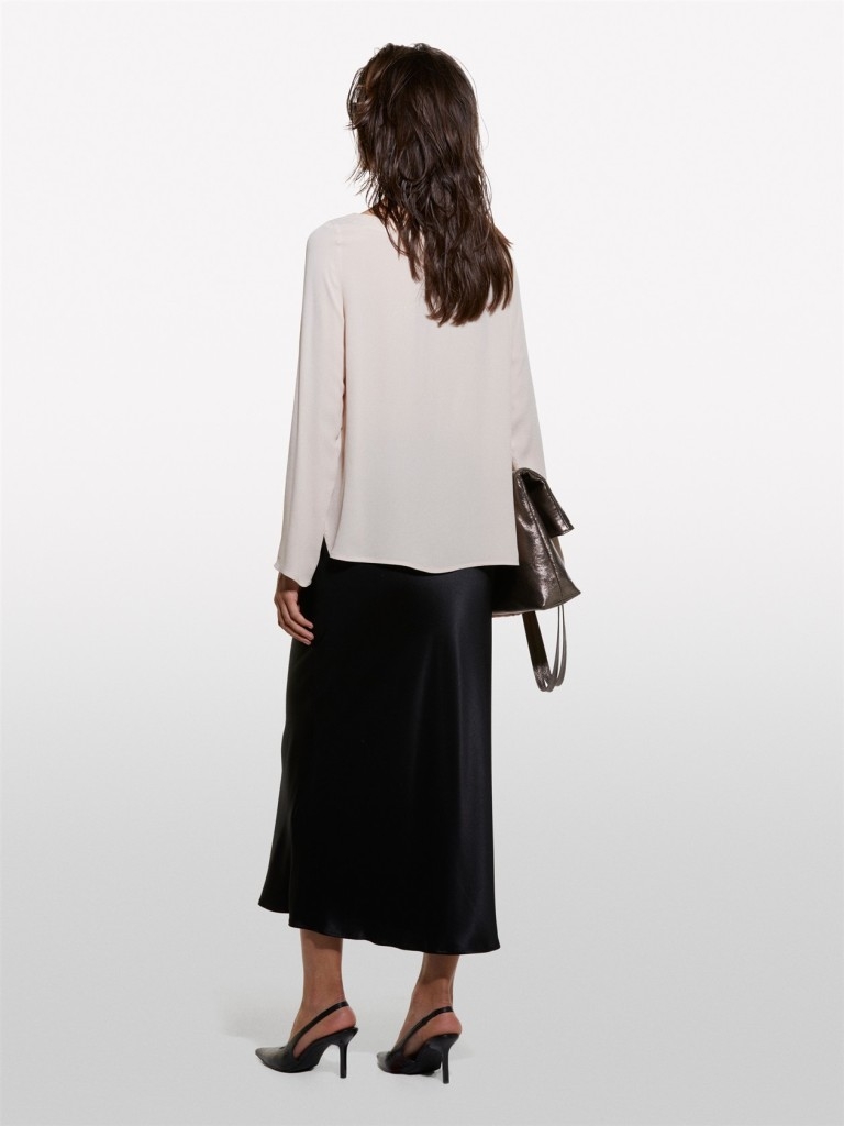 Kdn_%100 Viskoz Rahat Kesim Yanları Yırtmaçlı Kayık Yaka Bluz Kadın Pudra Bluz - 324A5ZMZLQ07S