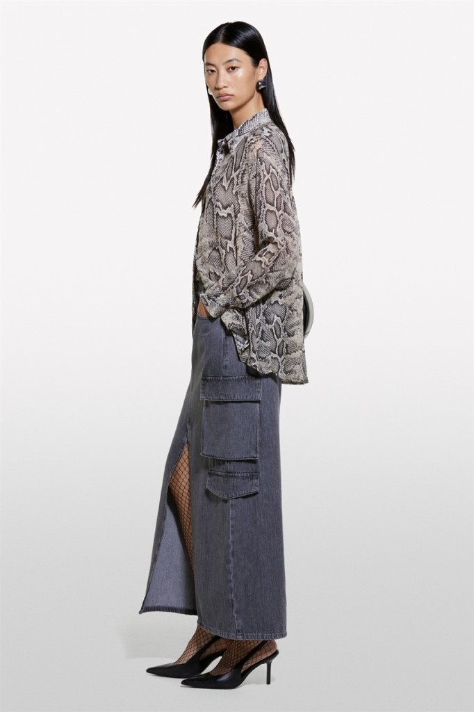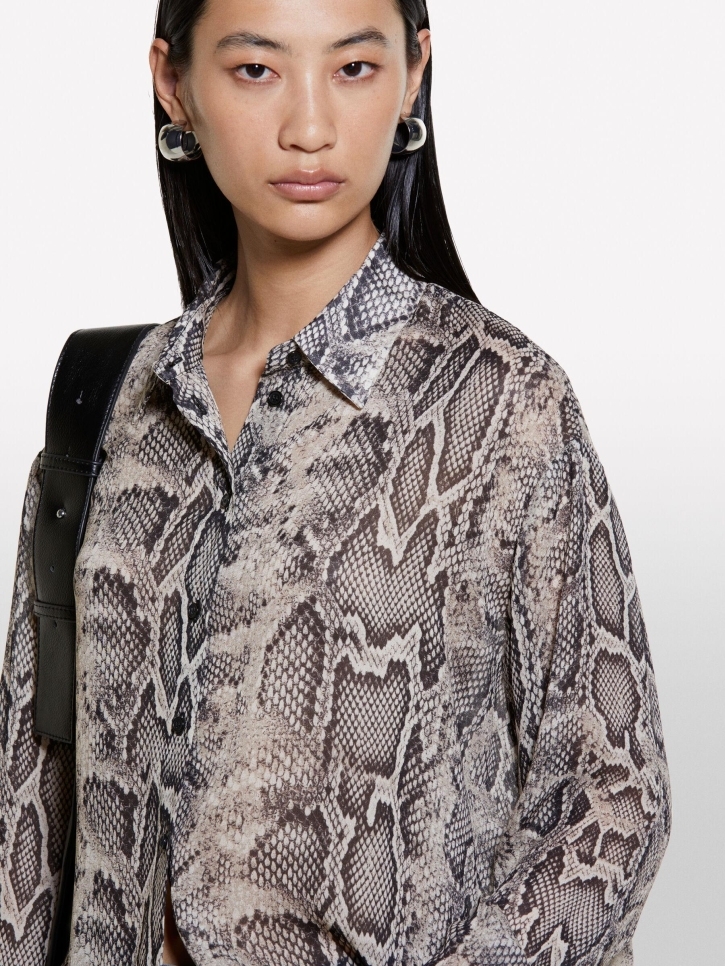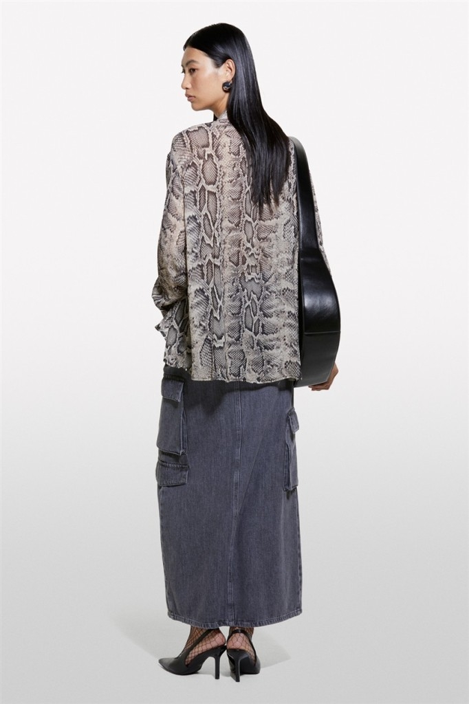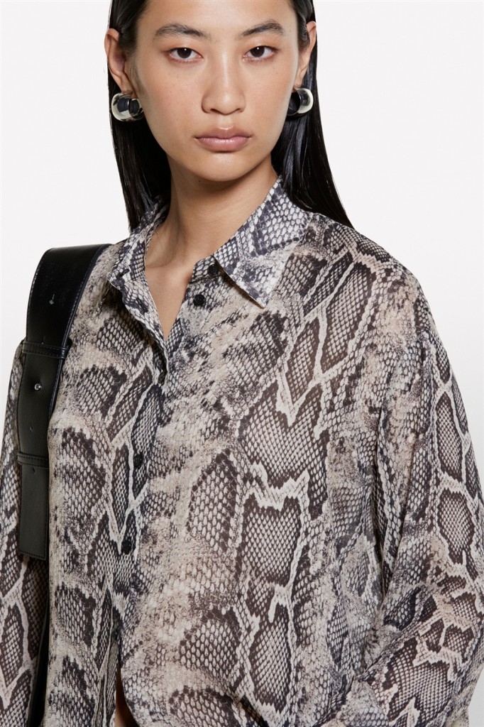 Kdn_%100 Viskoz Tamamı Desenli Rahat Kesim Uzun Kollu Gömlek Kadın Gri Desenli Gömlek - 324A5YBMLQ07F