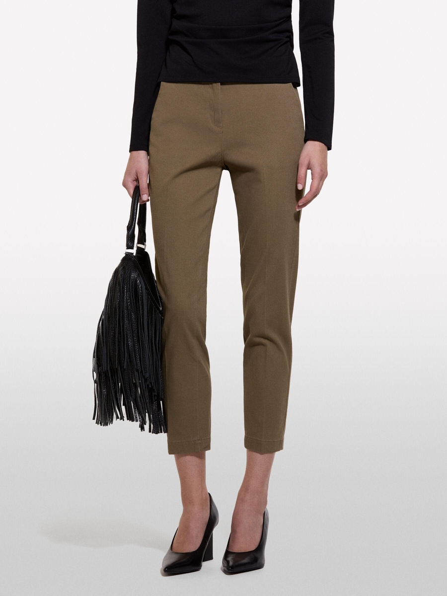 Kdn_Koton Karışımlı Esnek Chino Pantolon Kadın Haki Pantolon - 324A48M855BK7
