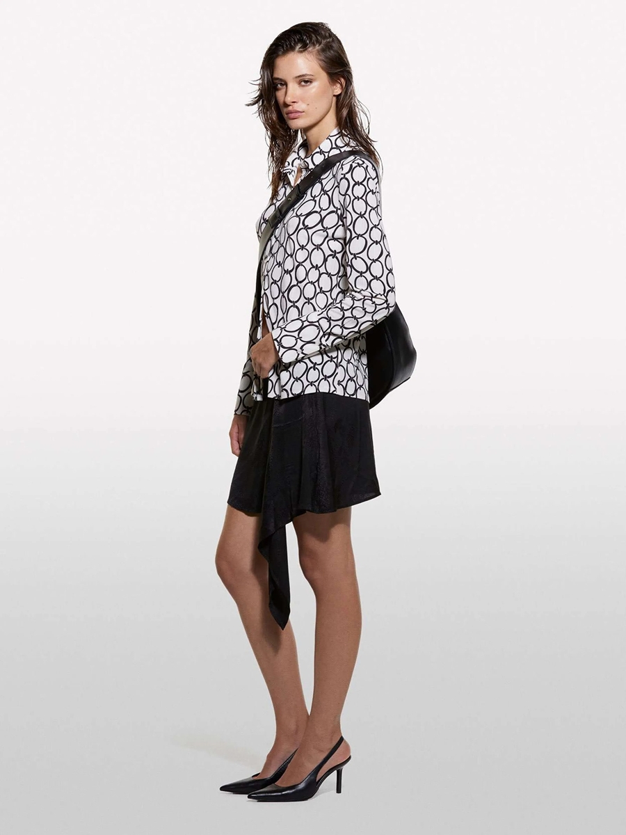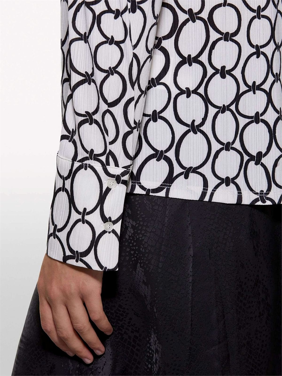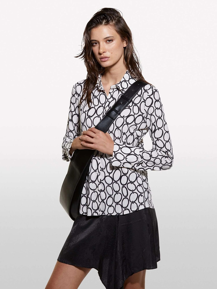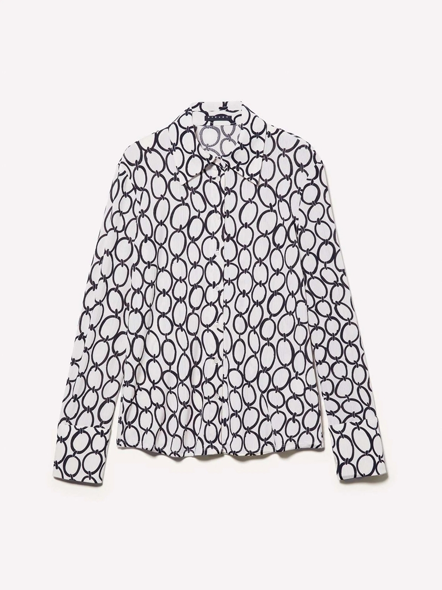 Kdn_Tamamı Baskılı Dar Kesim Uzun Kollu Gömlek Kadın Kırık Beyaz Mix Gömlek - 324A52D3LQ07H