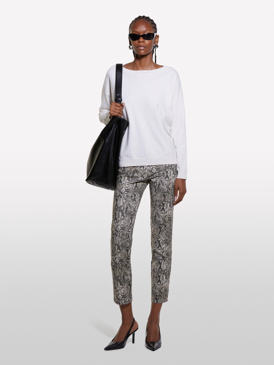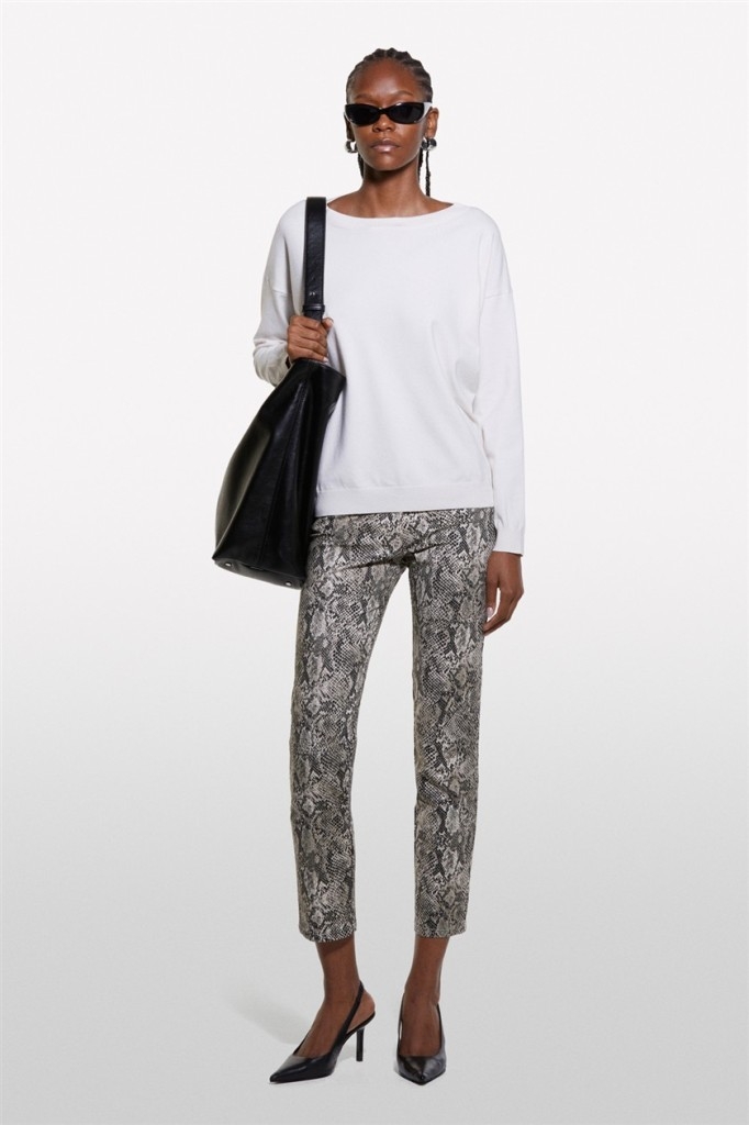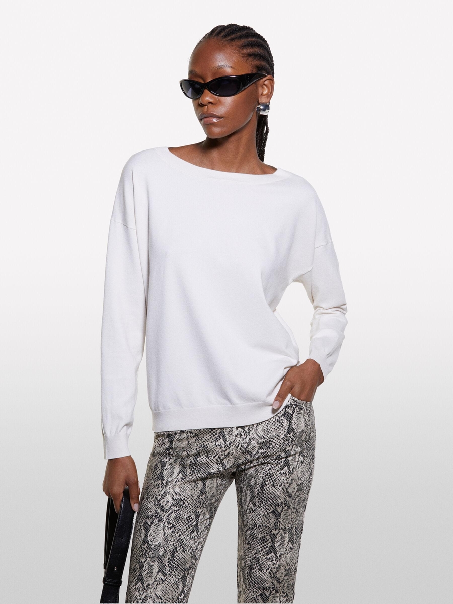 Kdn_Viskoz Karışımlı Normal Kesim Düz Kayık Yaka Kazak Kadın Bej Kazak - 324A17Q3M103J