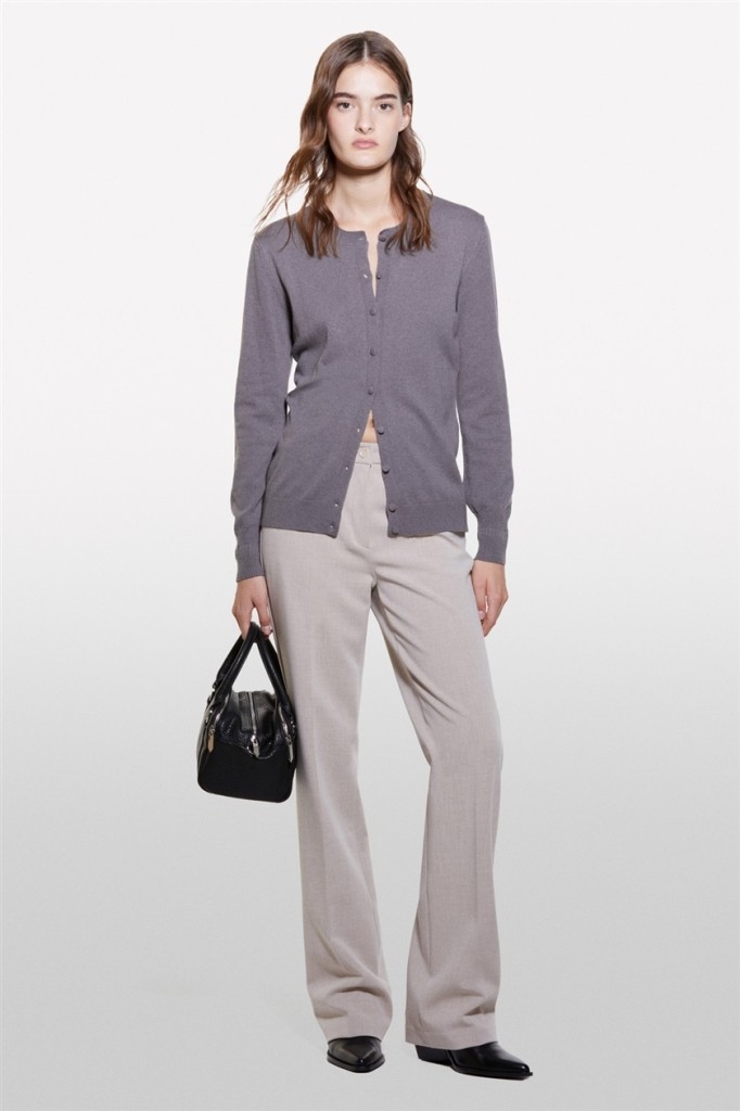 Kdn_Yün ve Kaşmir Karışımlı Ribana Detaylı Bisiklet Yaka Hırka Kadın Füme Hırka - 324A102HM5237