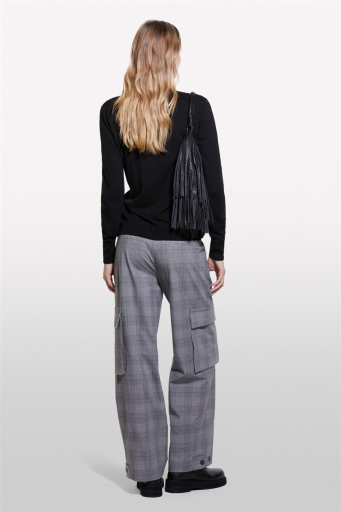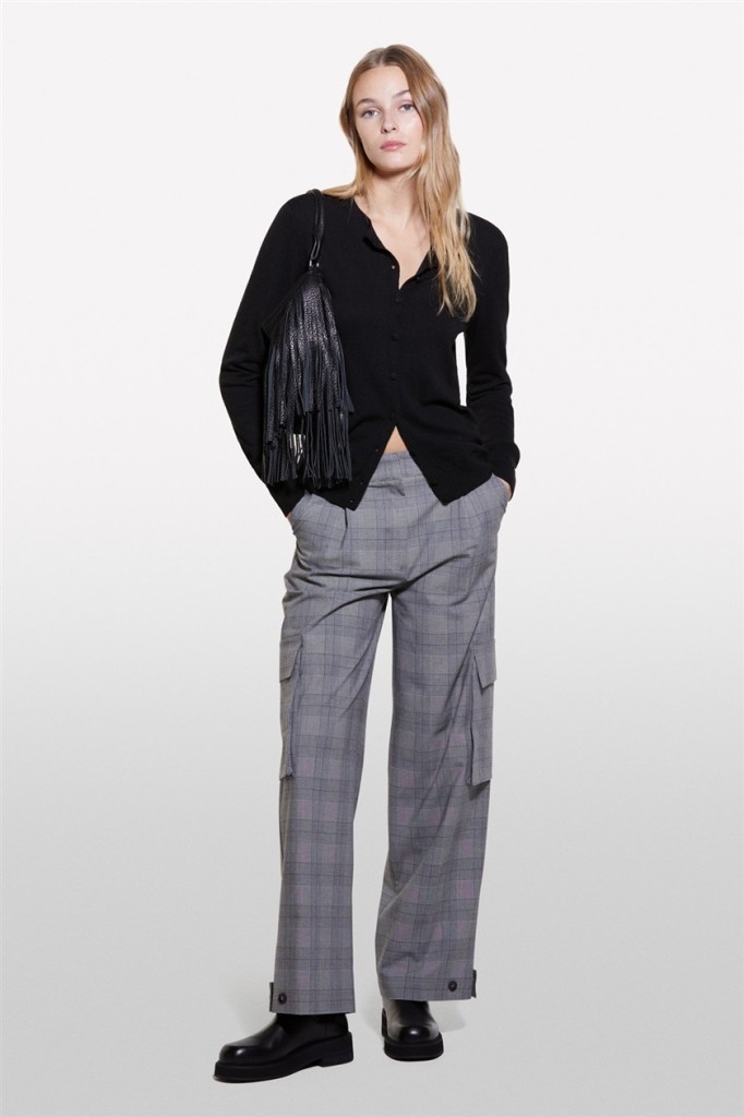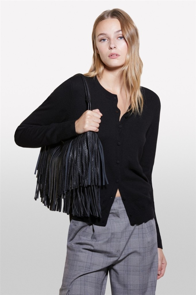 Kdn_Yün ve Kaşmir Karışımlı Ribana Detaylı Bisiklet Yaka Hırka Kadın Siyah Hırka - 324A102HM5237