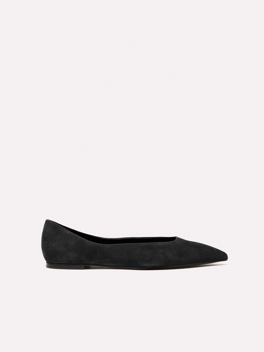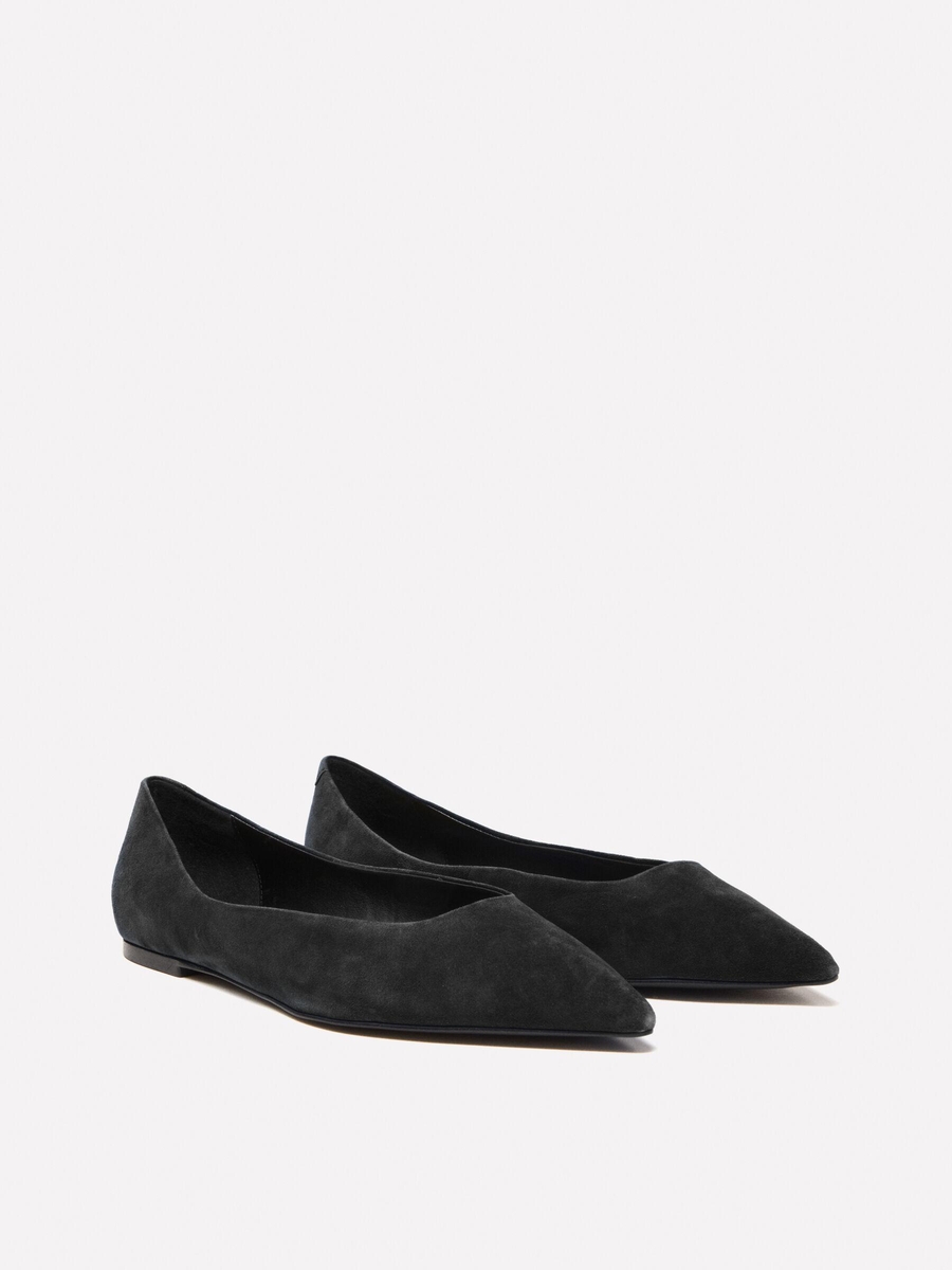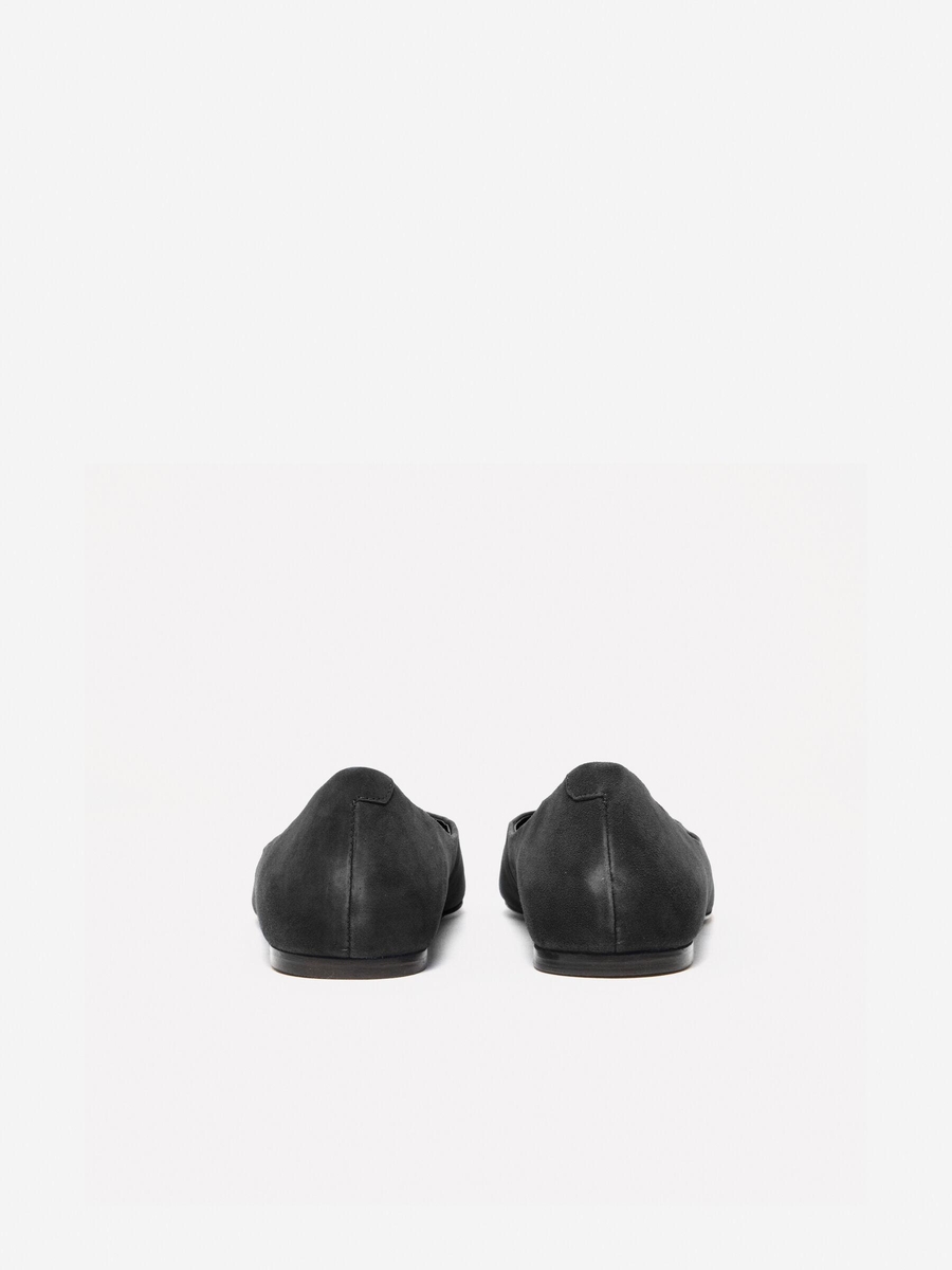 Kenarlı Asimetrik Kesim Gerçek Süet Babet Kadın Siyah Babet - 324A8G9EWD02J