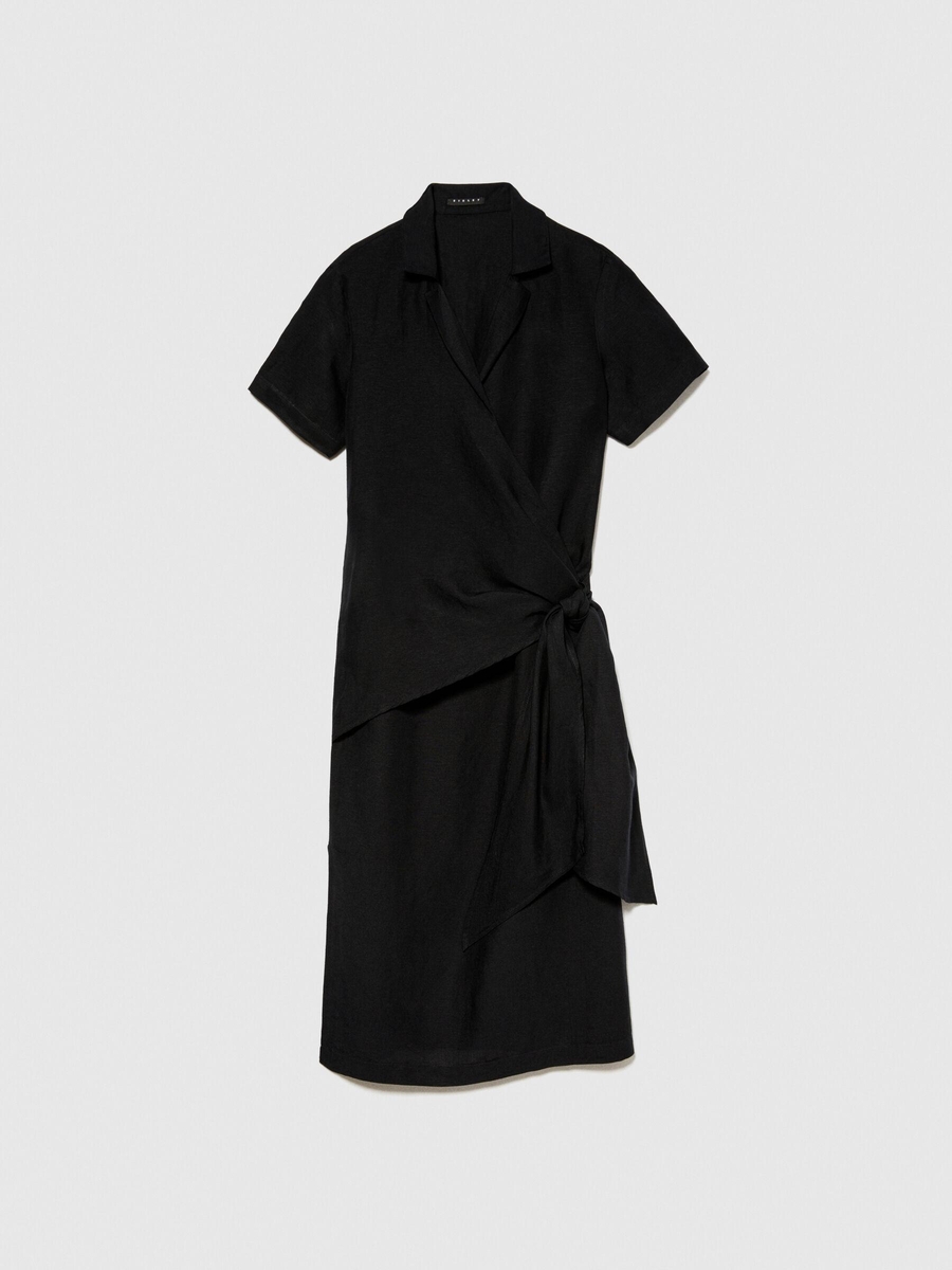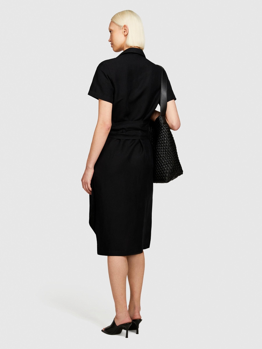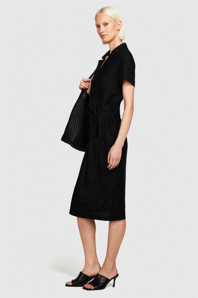 Keten Karışımlı Gömlek Yaka Bel Kısmı Elastik Elbise Kadın Siyah Gömlek - 324P40BRLV05L