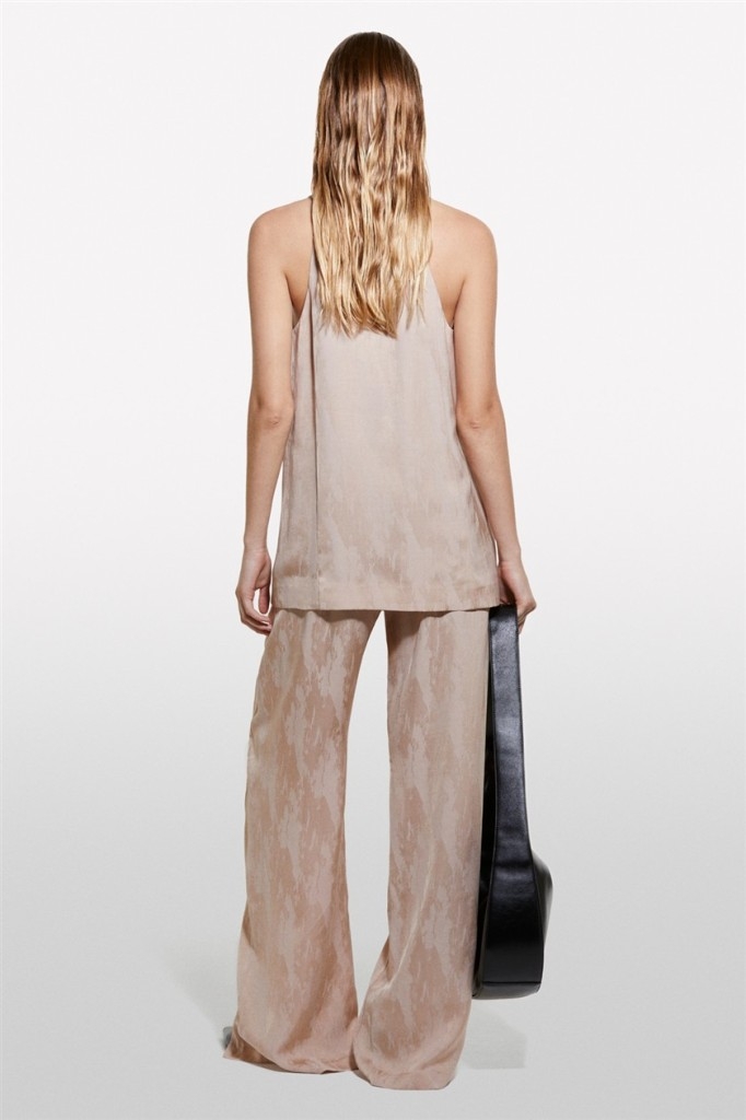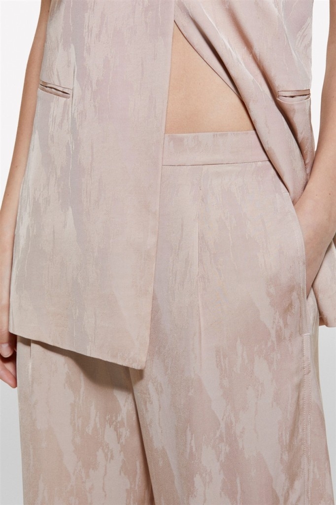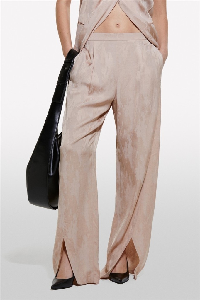 Keten Karışımlı Jakarlı Paçası Yırtmaçlı Pantolon Kadın Pudra Pantolon - 324A43MELF05I