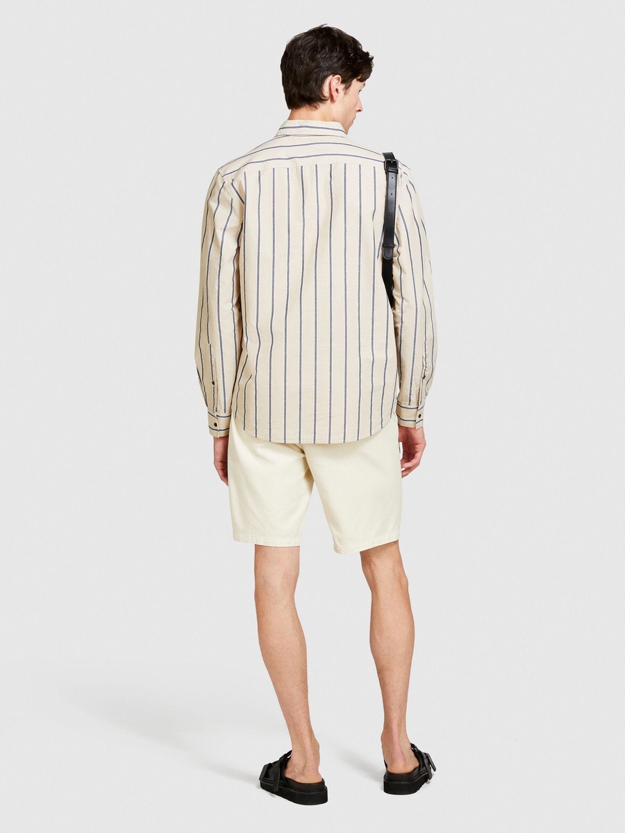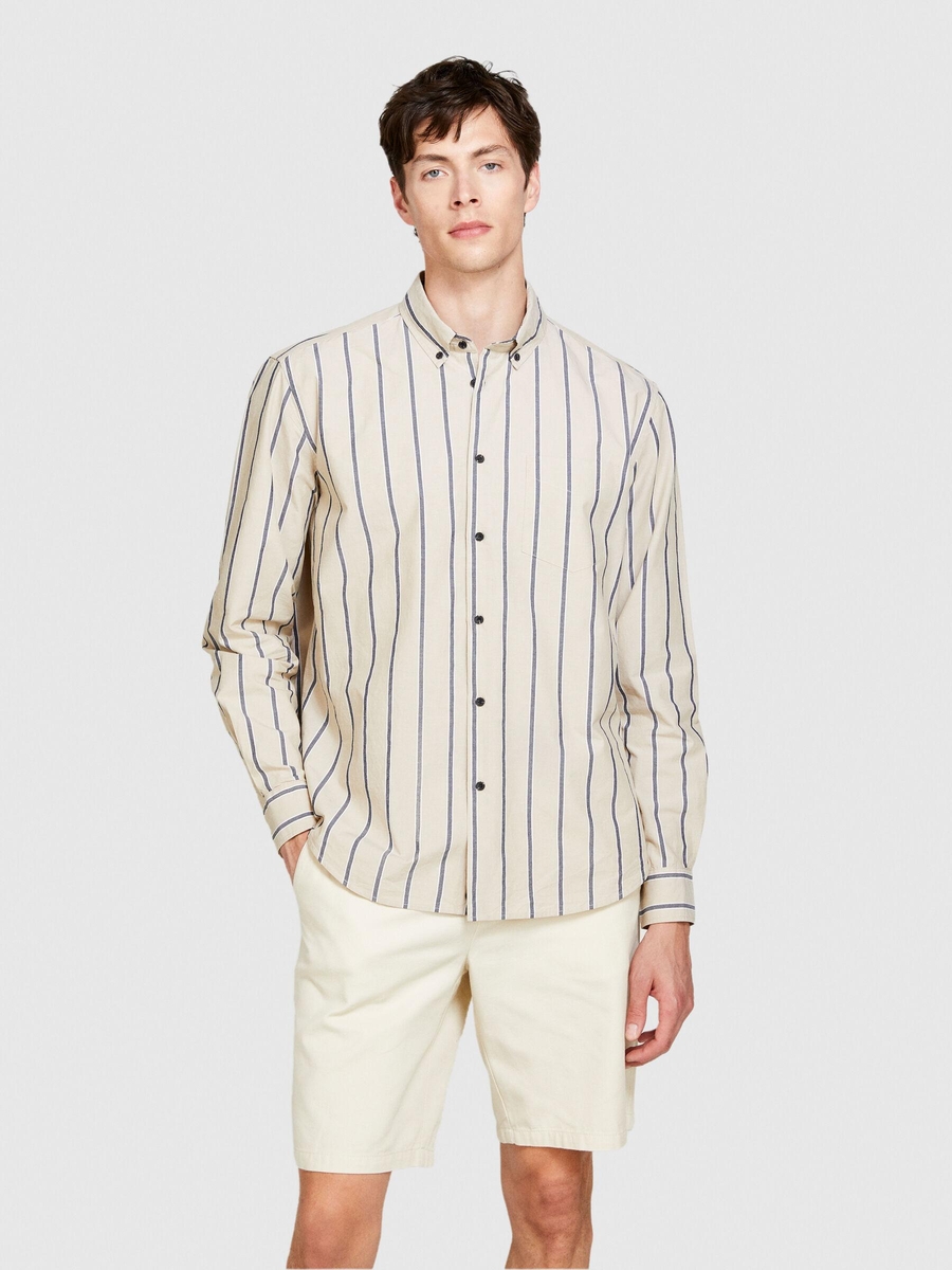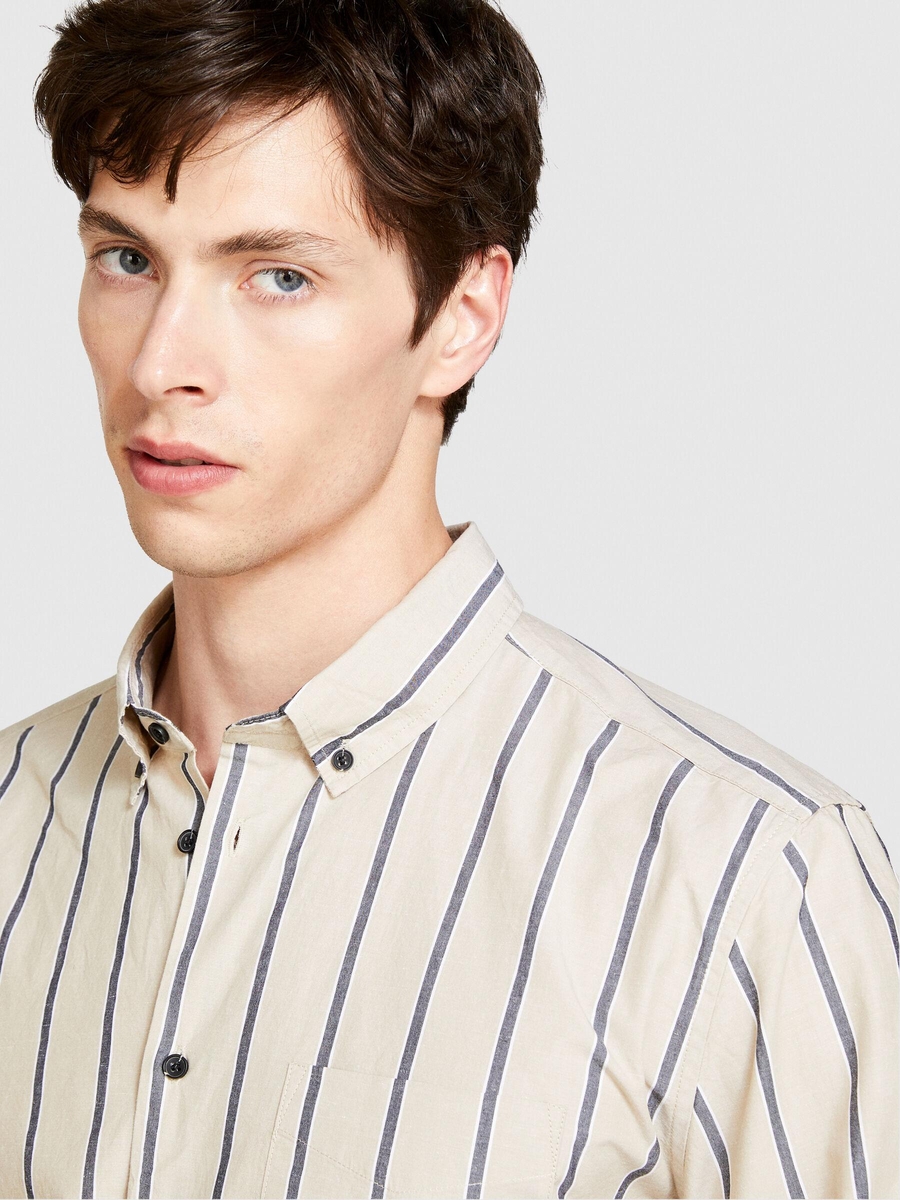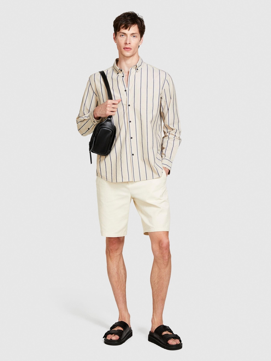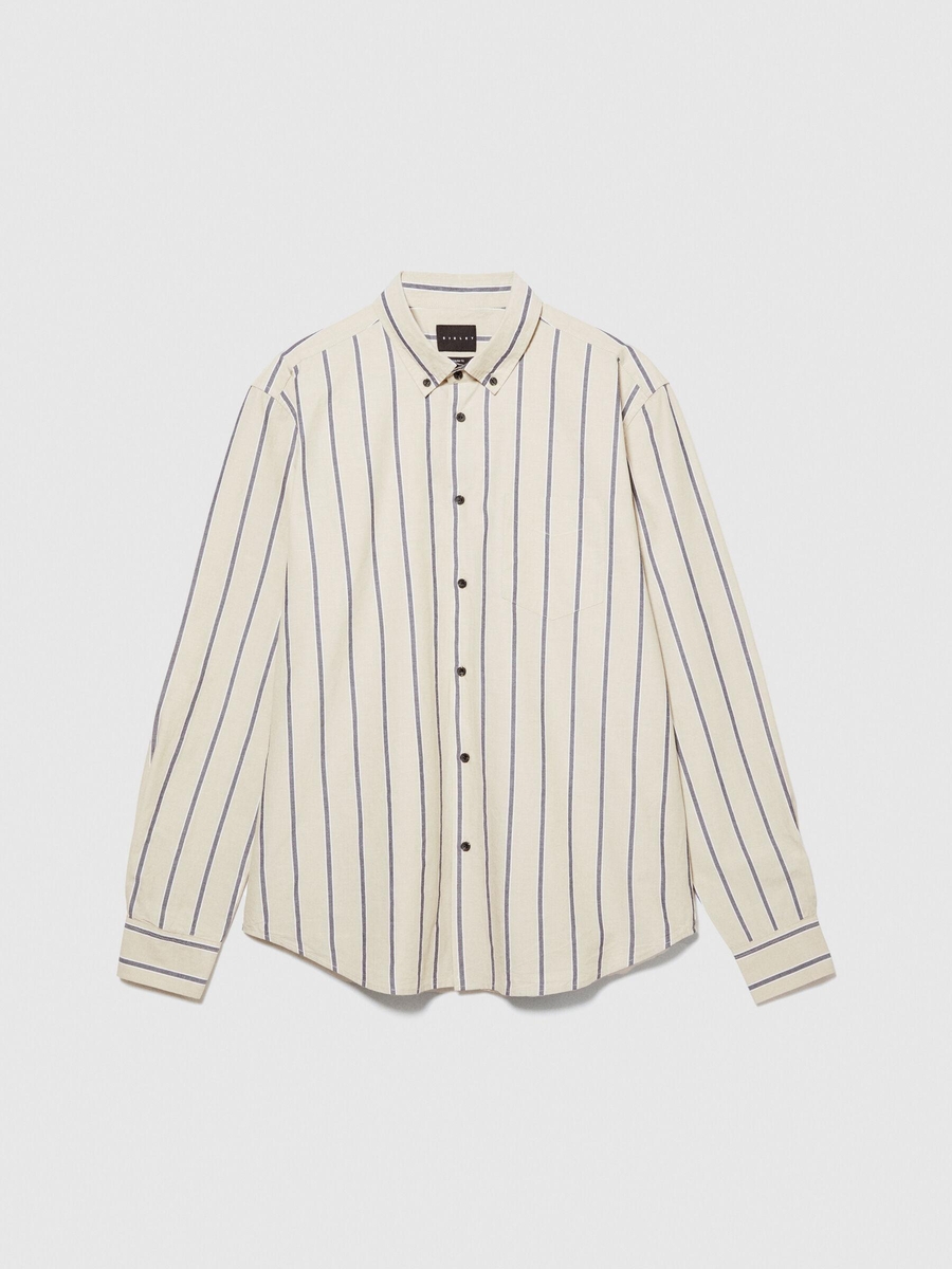 Keten Pamuk Karışımlı Çizgili Yakası Düğmeli Gömlek Erkek Siyah Mix Gömlek - 324P5ZKYSQ03I
