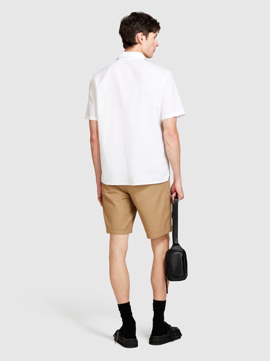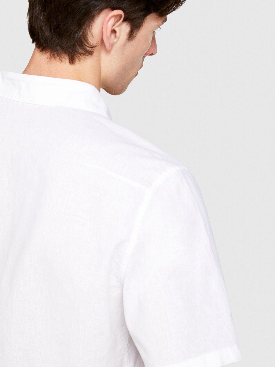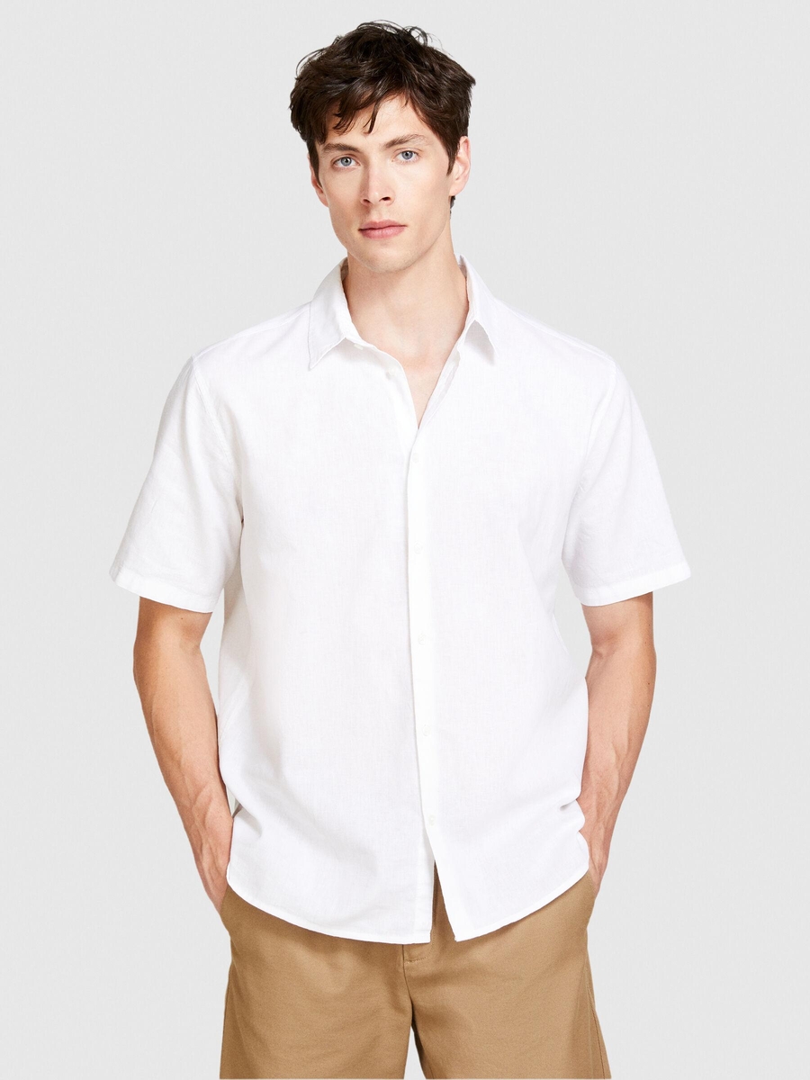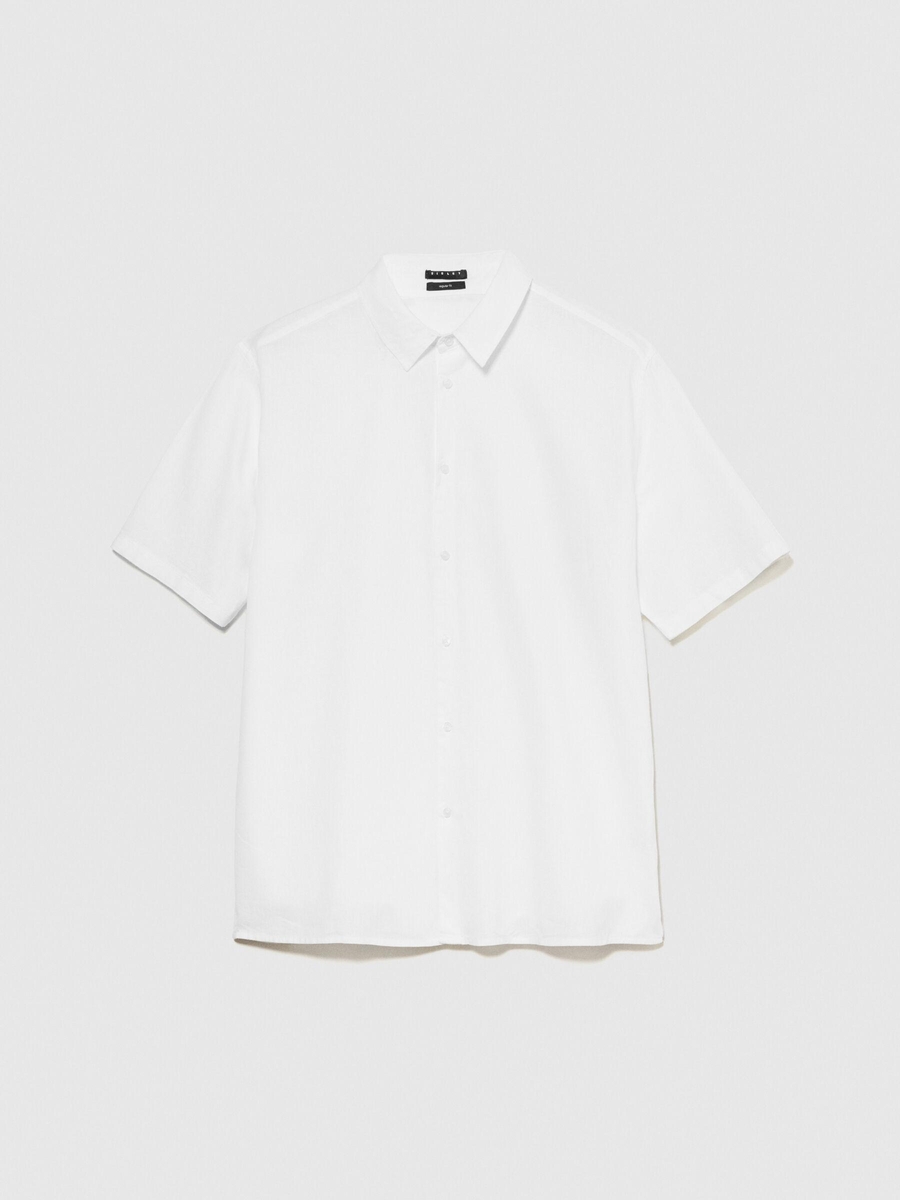 Keten Pamuk Karışımlı Pileli Regular Fit Kısa Kollu Gömlek Erkek Beyaz Gömlek - 324P59A2SQ03K