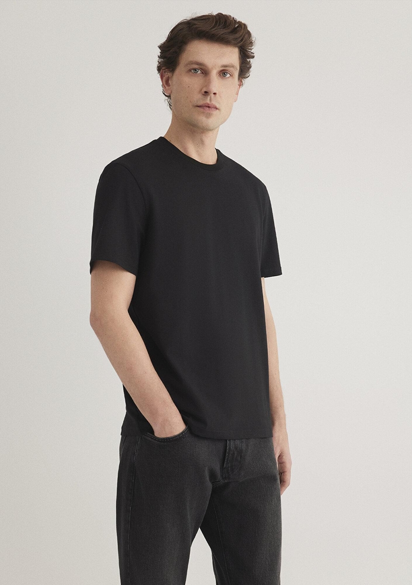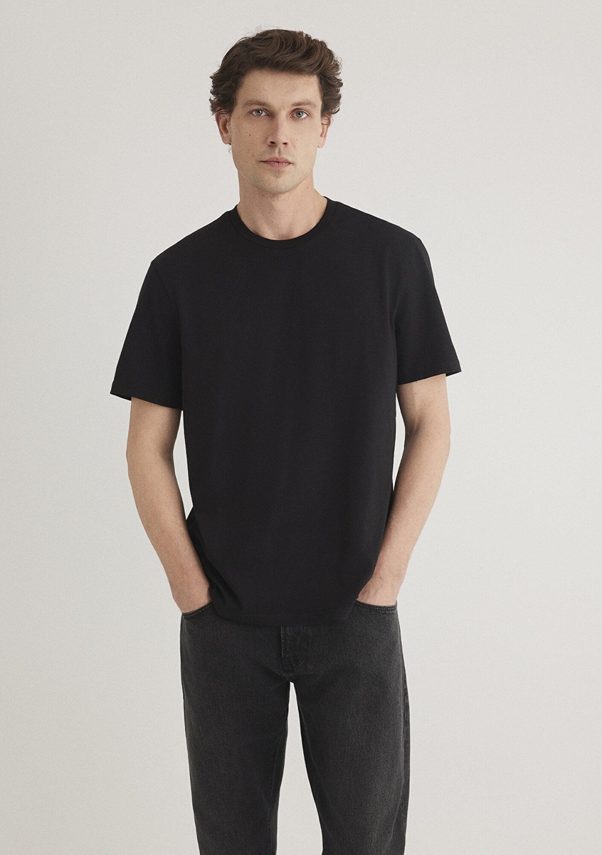 KISA KOL TİŞÖRT Erkek Siyah Basic T-Shirt - M066483