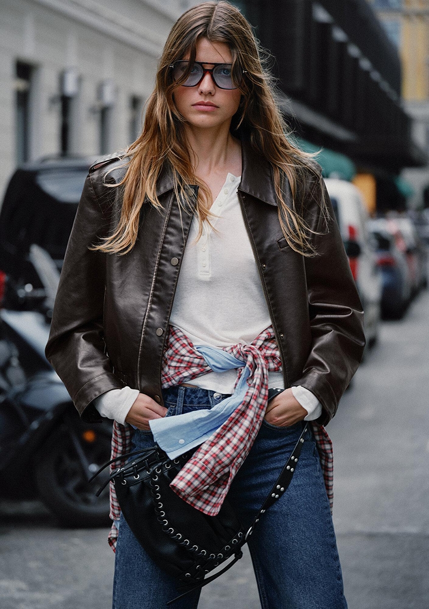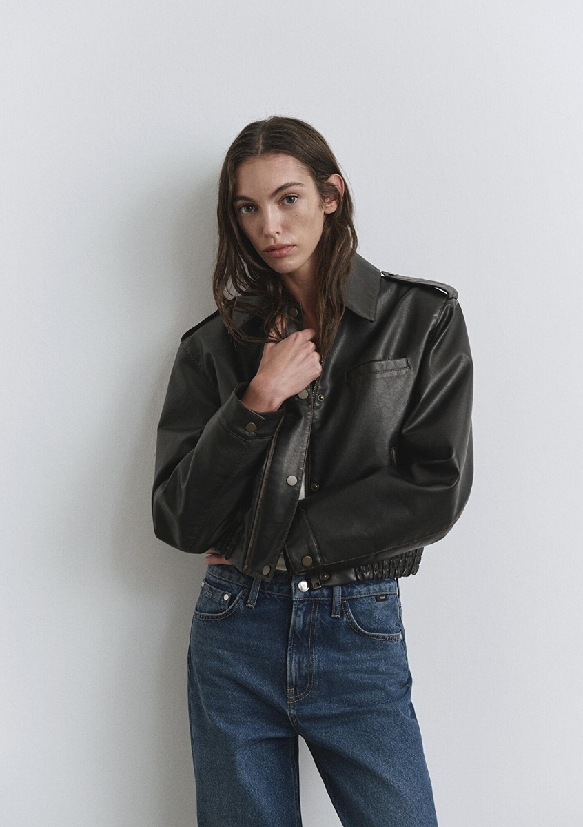 KISA PU CEKET Kadın Kahverengi Ceket - M1110782