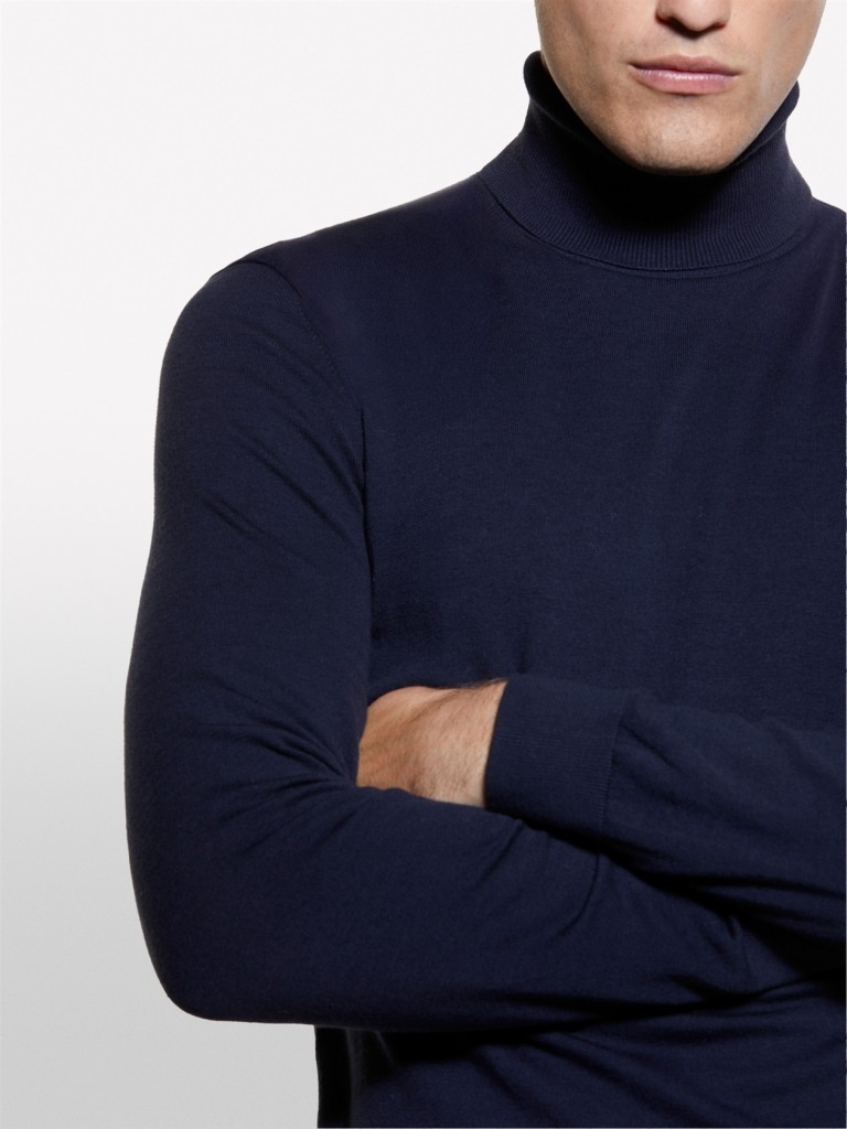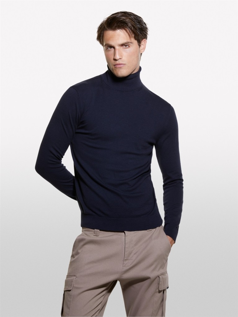 Koton Karışımlı Dik Yaka Kazak Erkek Lacivert Kazak - 324A10F2S2244