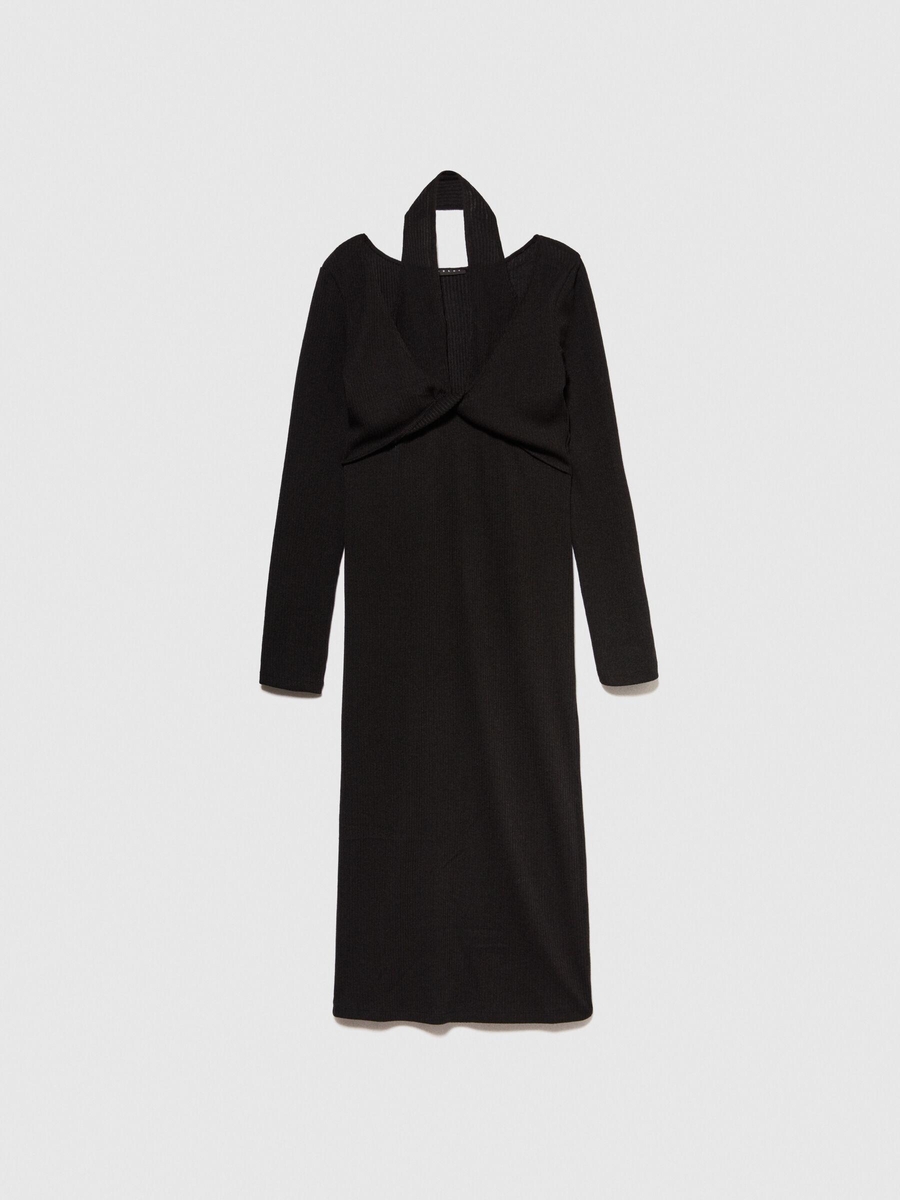 Omuzları ve Önü Detaylı Uzun Kollu Elbise Kadın Siyah Elbise - 324P4UVTLV05D
