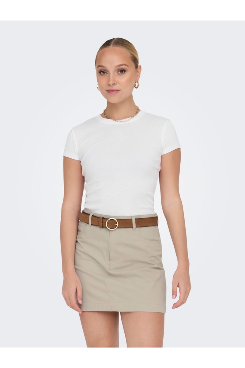 ONLELINA S/S O-NECK SHORT TOP JRS NOOS Kadın Beyaz Bluz - 15320229
